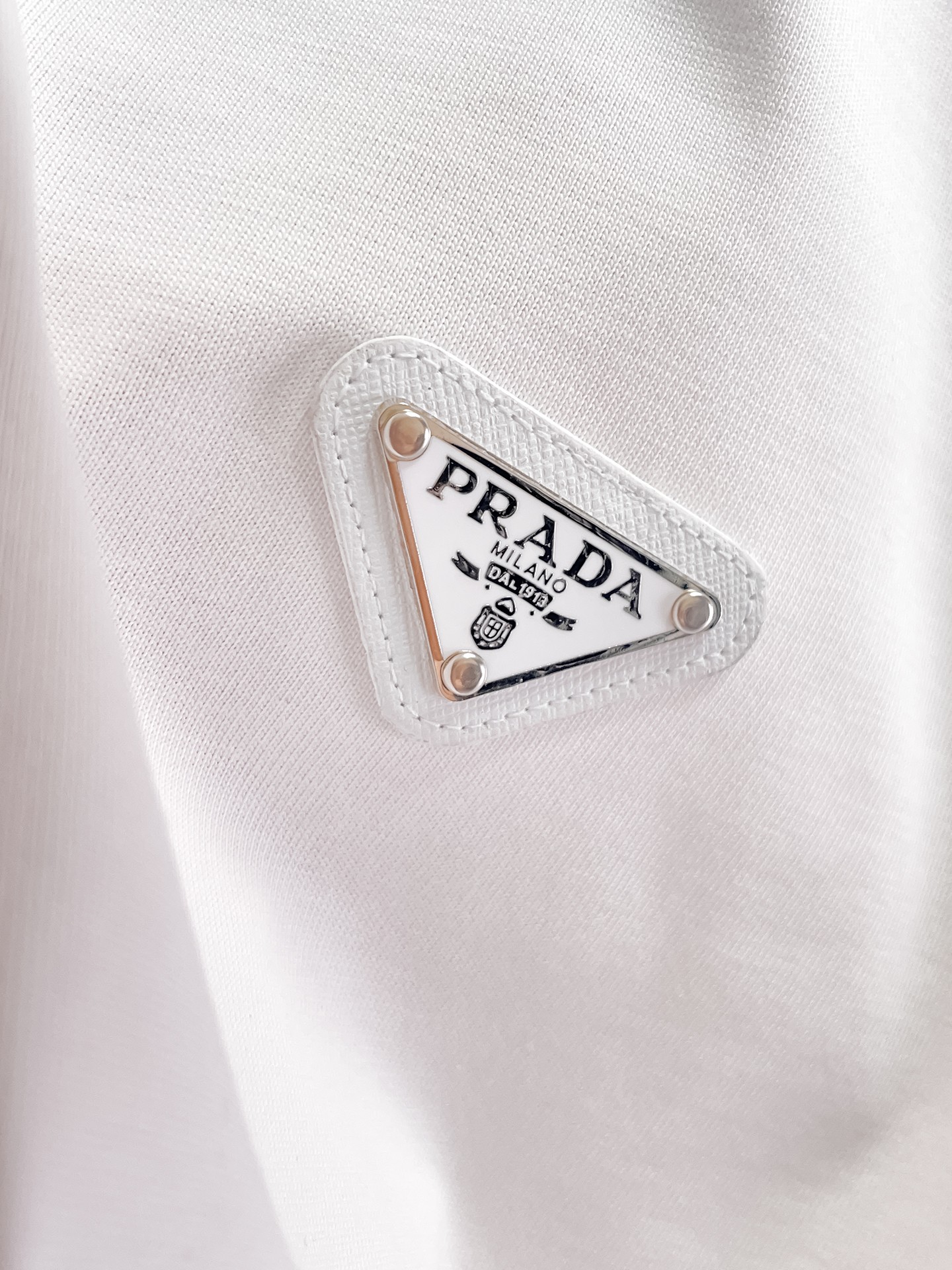 这款衣服是AAAAA 1:1 质量 (非常棒). 使用了和原版一模一样的材料. 商标部分也保持了和普拉达/Prada一样. 图片拍摄是实物衣服拍摄, 您所收到的实物保证和我们图片一模一样.