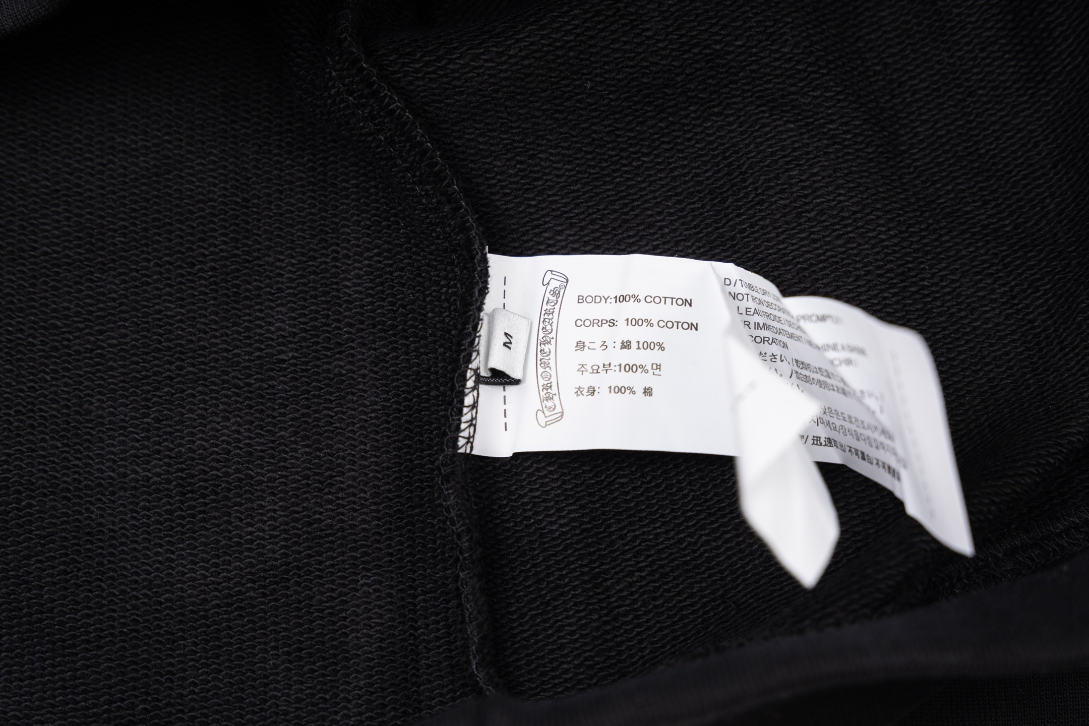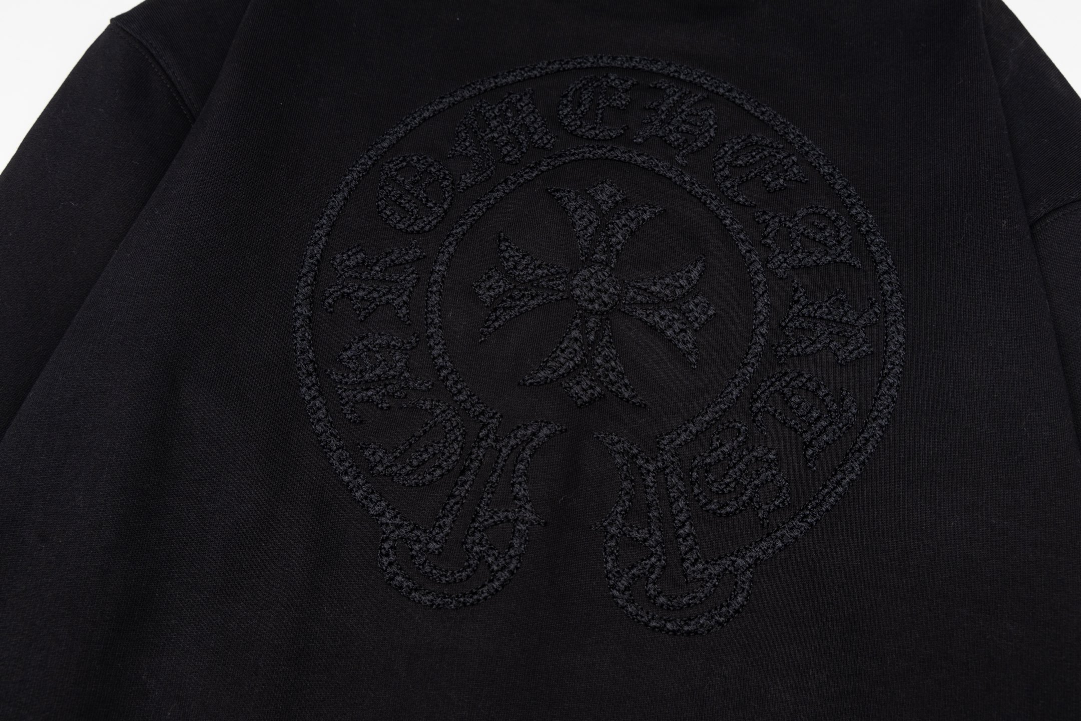 这款衣服是AAAAA 1:1 质量 (非常棒). 使用了和原版一模一样的材料. 商标部分也保持了和克罗心/Chrome Hearts一样. 图片拍摄是实物衣服拍摄, 您所收到的实物保证和我们图片一模一样.