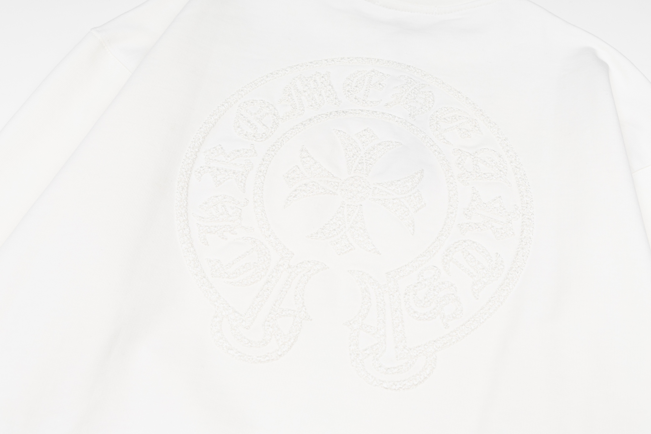 这款衣服是AAAAA 1:1 质量 (非常棒). 使用了和原版一模一样的材料. 商标部分也保持了和克罗心/Chrome Hearts一样. 图片拍摄是实物衣服拍摄, 您所收到的实物保证和我们图片一模一样.
