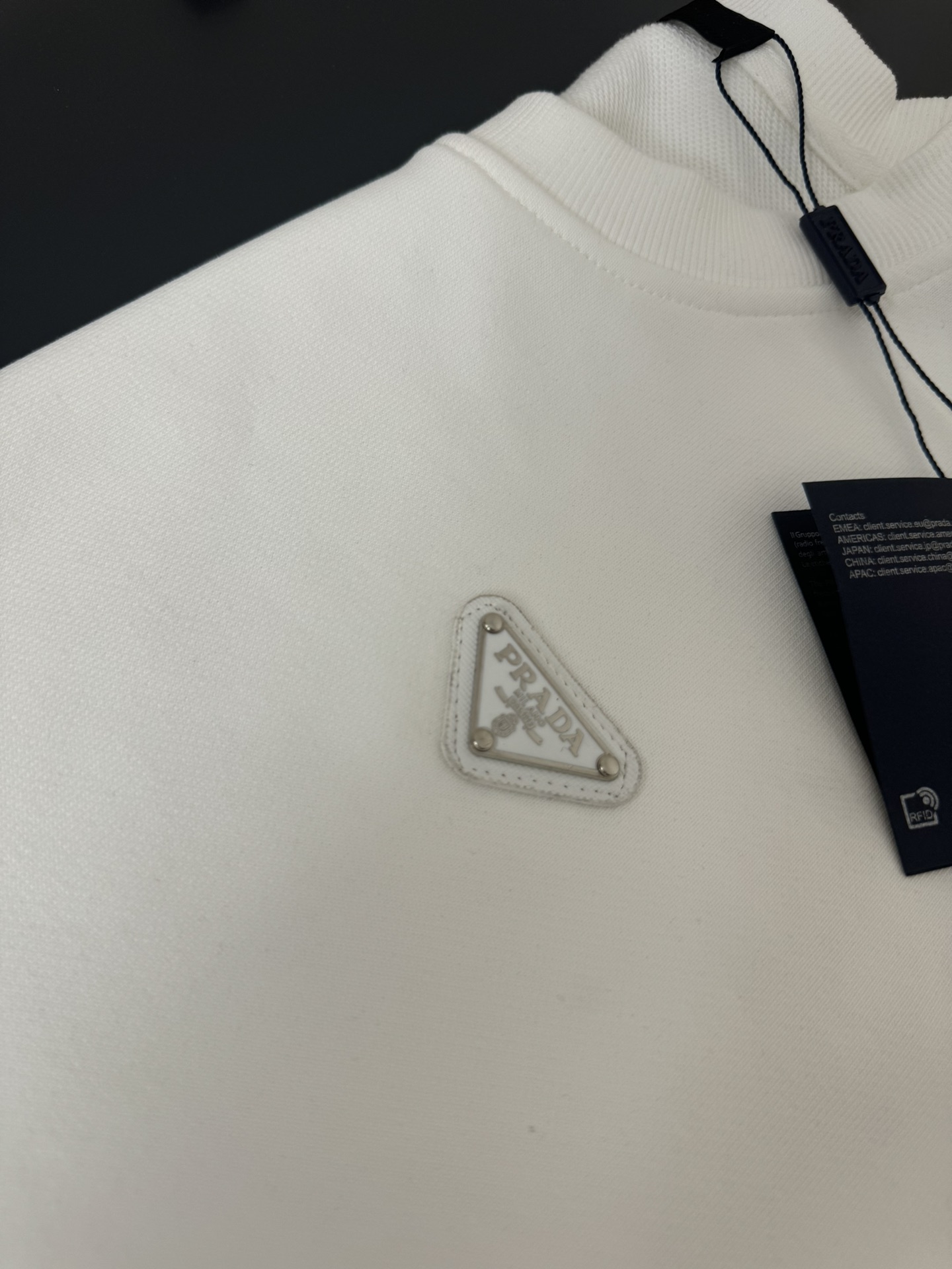 这款衣服是AAAAA 1:1 质量 (非常棒). 使用了和原版一模一样的材料. 商标部分也保持了和普拉达/Prada一样. 图片拍摄是实物衣服拍摄, 您所收到的实物保证和我们图片一模一样.