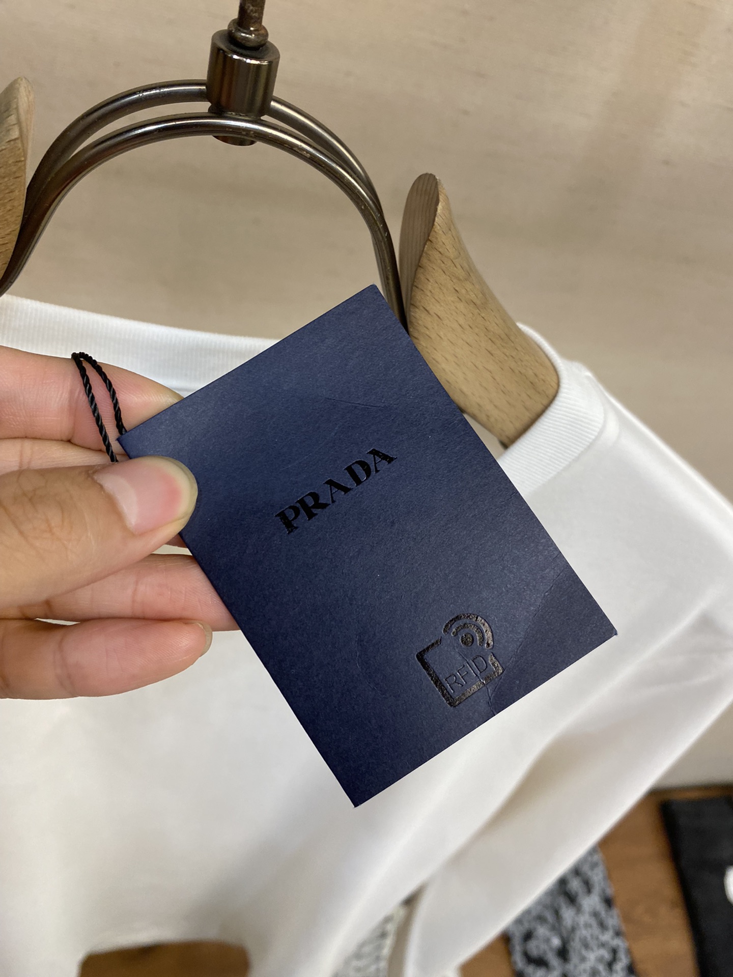 这款衣服是AAAAA 1:1 质量 (非常棒). 使用了和原版一模一样的材料. 商标部分也保持了和普拉达/Prada一样. 图片拍摄是实物衣服拍摄, 您所收到的实物保证和我们图片一模一样.