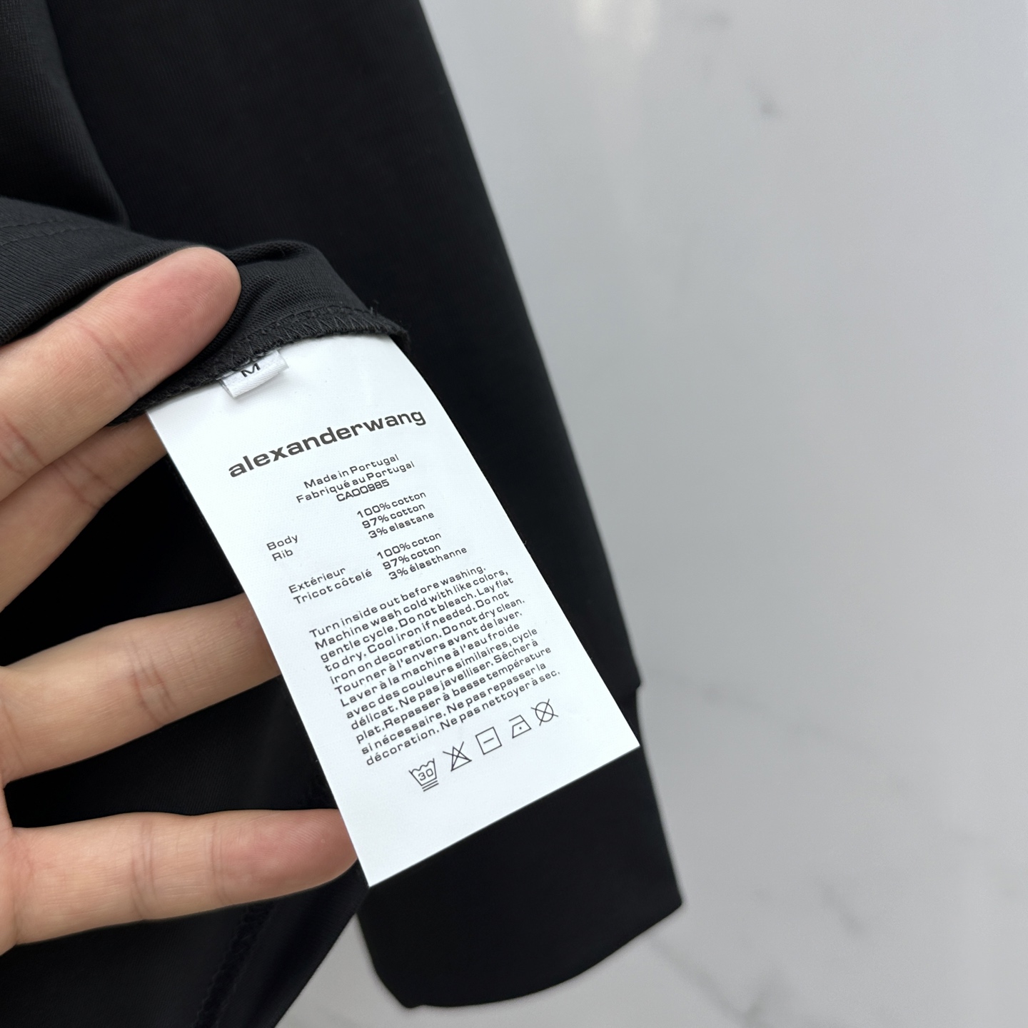 这款衣服是AAAAA 1:1 质量 (非常棒). 使用了和原版一模一样的材料. 商标部分也保持了和亚历山大王/Alexander Wang一样. 图片拍摄是实物衣服拍摄, 您所收到的实物保证和我们图片一模一样.