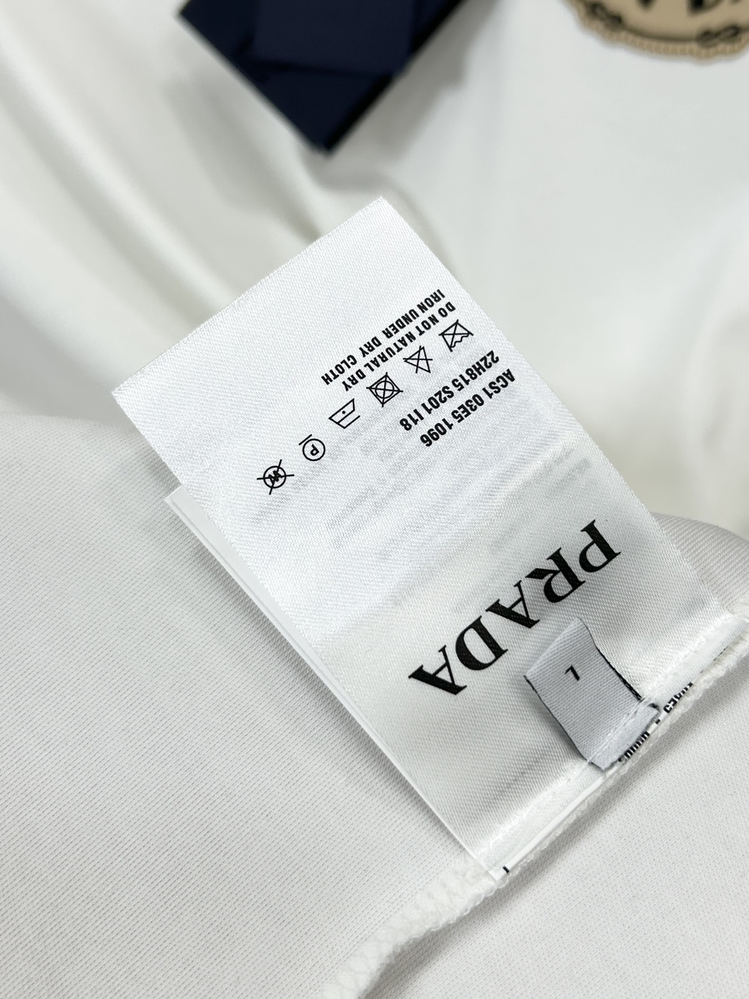 这款衣服是AAAAA 1:1 质量 (非常棒). 使用了和原版一模一样的材料. 商标部分也保持了和普拉达/Prada一样. 图片拍摄是实物衣服拍摄, 您所收到的实物保证和我们图片一模一样.