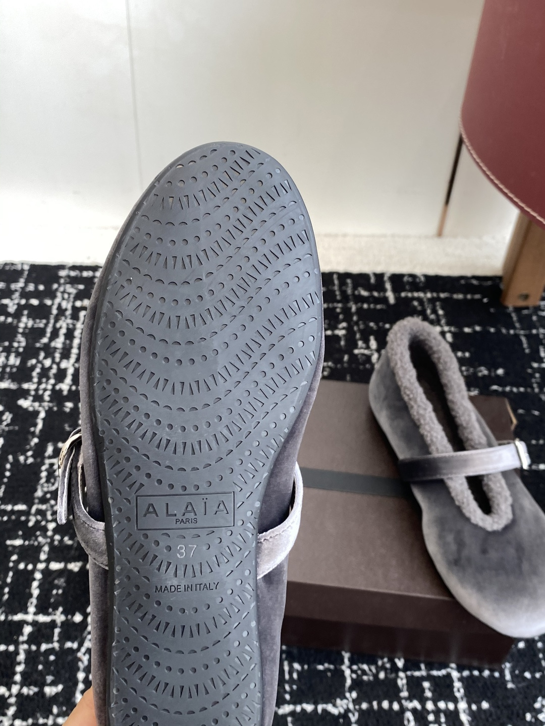 这款鞋子是AAAAA 1:1 质量 (非常棒). 使用了和原版一模一样的材料. 商标部分也保持了和Alaia一样. 图片拍摄是实物鞋子拍摄, 您所收到的实物保证和我们图片一模一样.