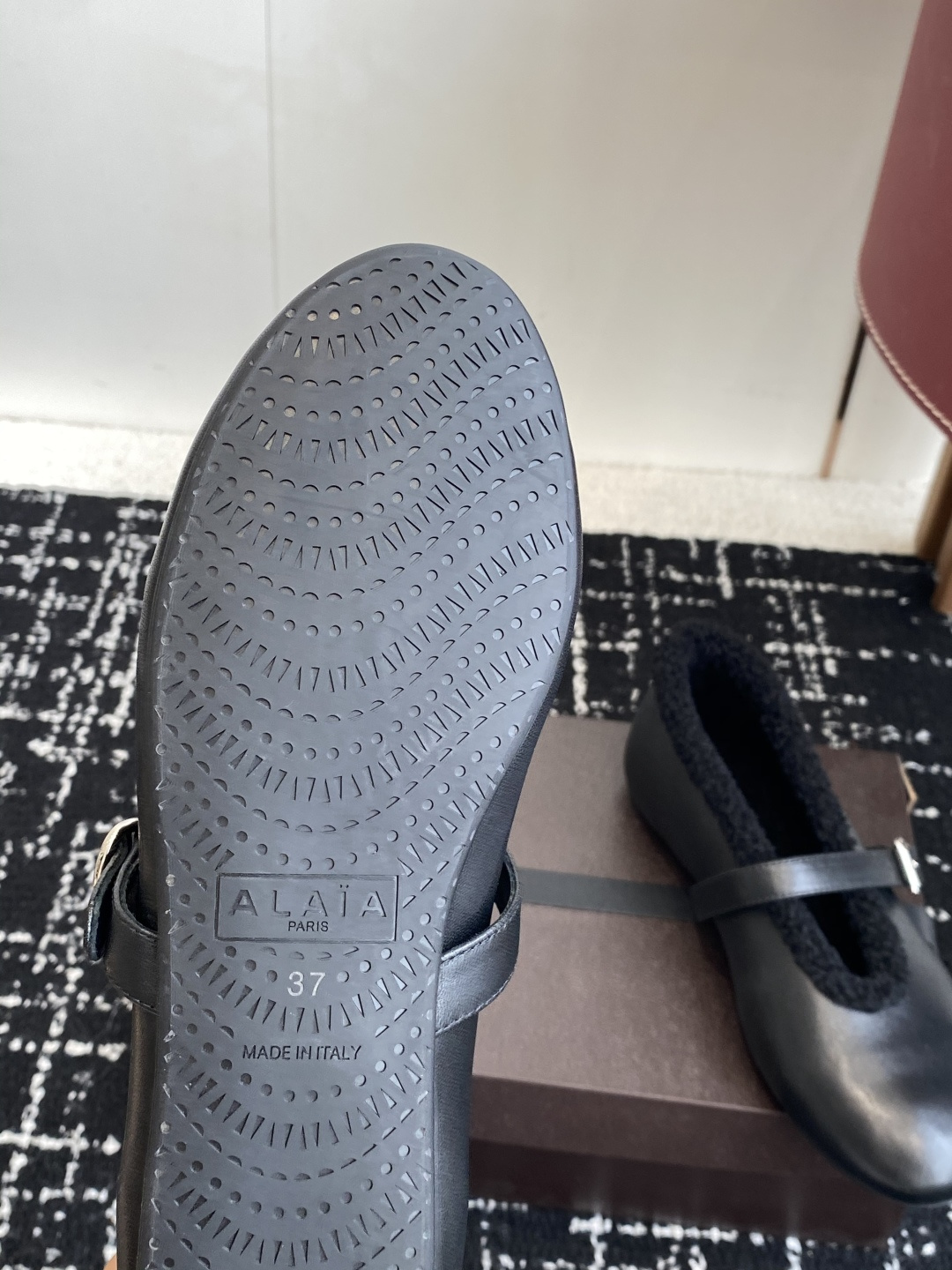 这款鞋子是AAAAA 1:1 质量 (非常棒). 使用了和原版一模一样的材料. 商标部分也保持了和Alaia一样. 图片拍摄是实物鞋子拍摄, 您所收到的实物保证和我们图片一模一样.