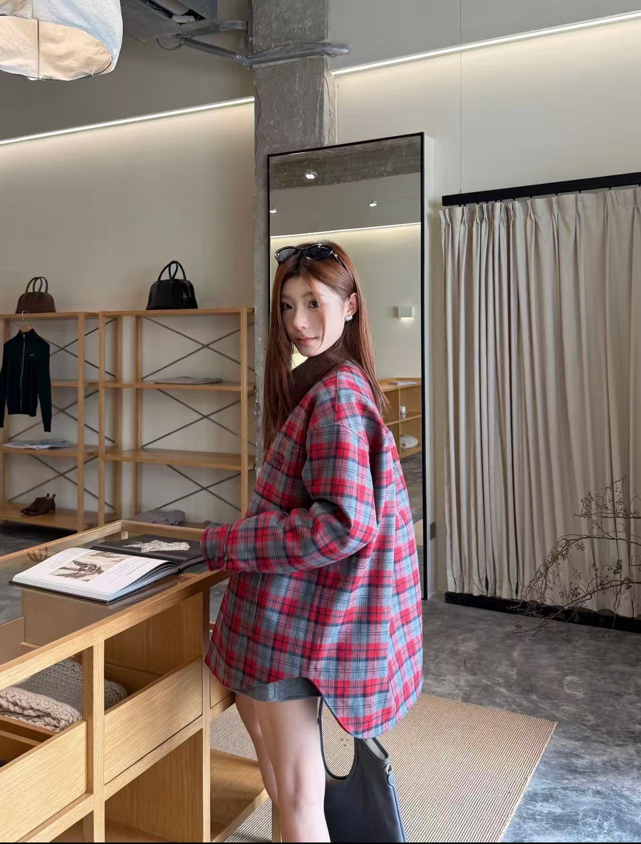 这款衣服是AAAAA 1:1 质量 (非常棒). 使用了和原版一模一样的材料. 商标部分也保持了和缪缪/Miu Miu一样. 图片拍摄是实物衣服拍摄, 您所收到的实物保证和我们图片一模一样.