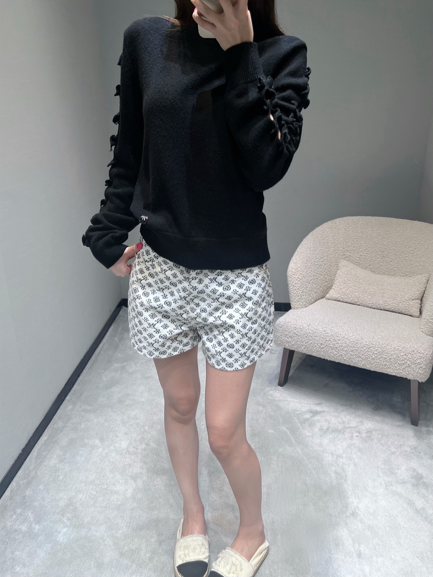这款衣服是AAAAA 1:1 质量 (非常棒). 使用了和原版一模一样的材料. 商标部分也保持了和香奈儿/Chanel一样. 图片拍摄是实物衣服拍摄, 您所收到的实物保证和我们图片一模一样.