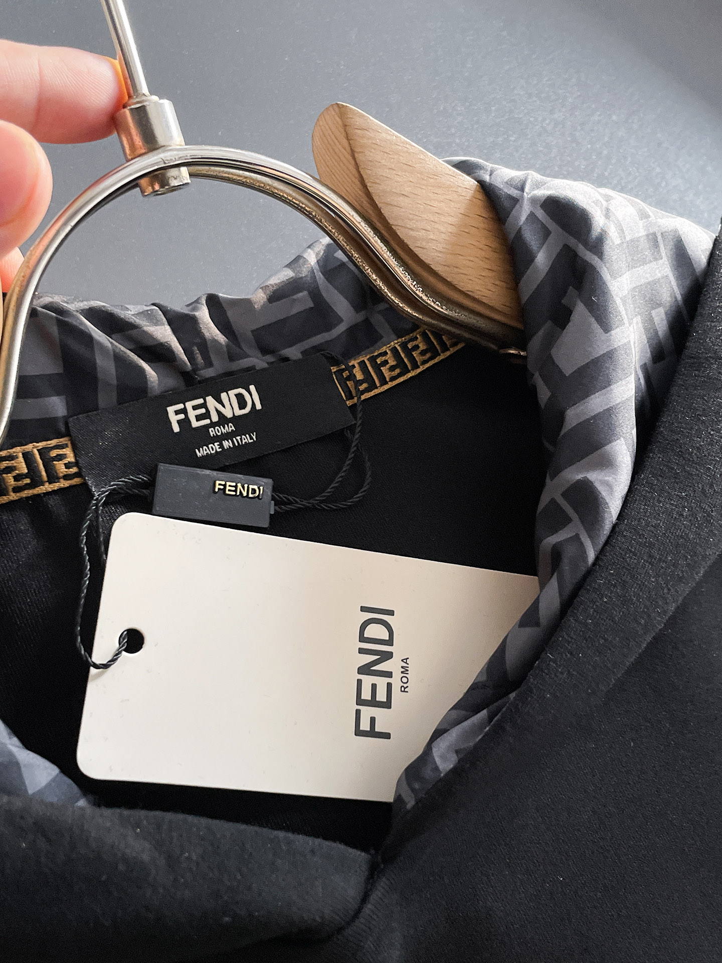 这款衣服是AAAAA 1:1 质量 (非常棒). 使用了和原版一模一样的材料. 商标部分也保持了和芬迪/Fendi一样. 图片拍摄是实物衣服拍摄, 您所收到的实物保证和我们图片一模一样.