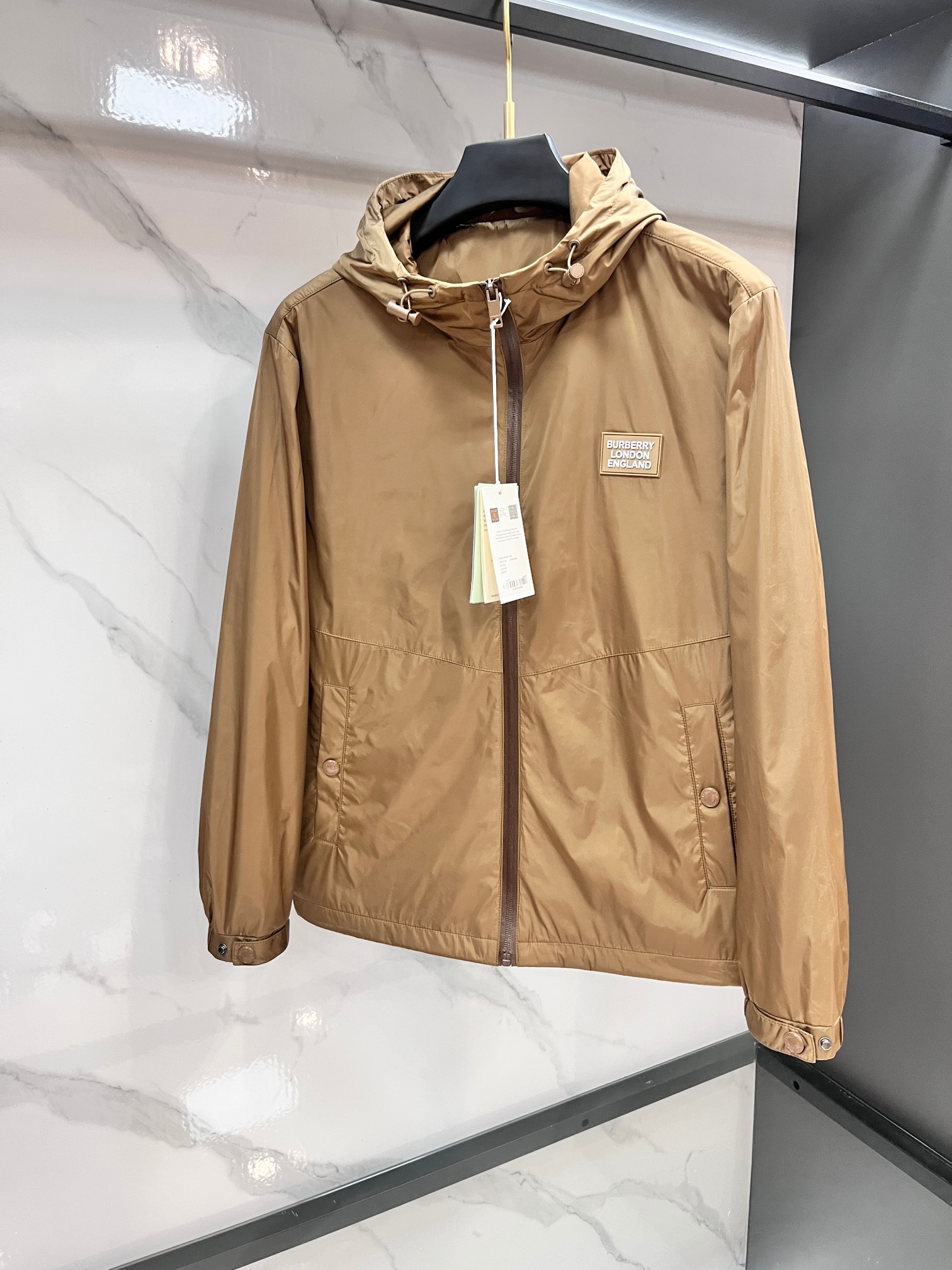 这款衣服是AAAAA 1:1 质量 (非常棒). 使用了和原版一模一样的材料. 商标部分也保持了和巴宝莉/Burberry一样. 图片拍摄是实物衣服拍摄, 您所收到的实物保证和我们图片一模一样.