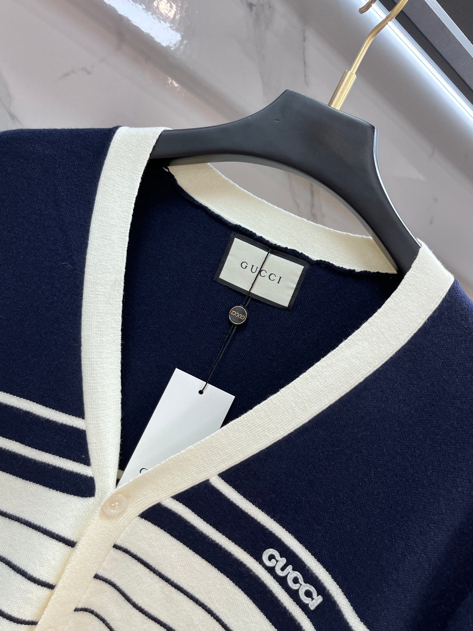这款衣服是AAAAA 1:1 质量 (非常棒). 使用了和原版一模一样的材料. 商标部分也保持了和古奇/Gucci一样. 图片拍摄是实物衣服拍摄, 您所收到的实物保证和我们图片一模一样.
