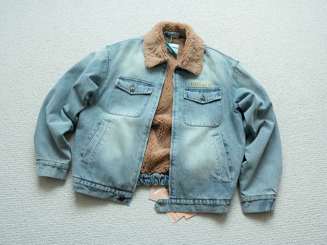 这款衣服是AAAAA 1:1 质量 (非常棒). 使用了和原版一模一样的材料. 商标部分也保持了和缪缪/Miu Miu一样. 图片拍摄是实物衣服拍摄, 您所收到的实物保证和我们图片一模一样.