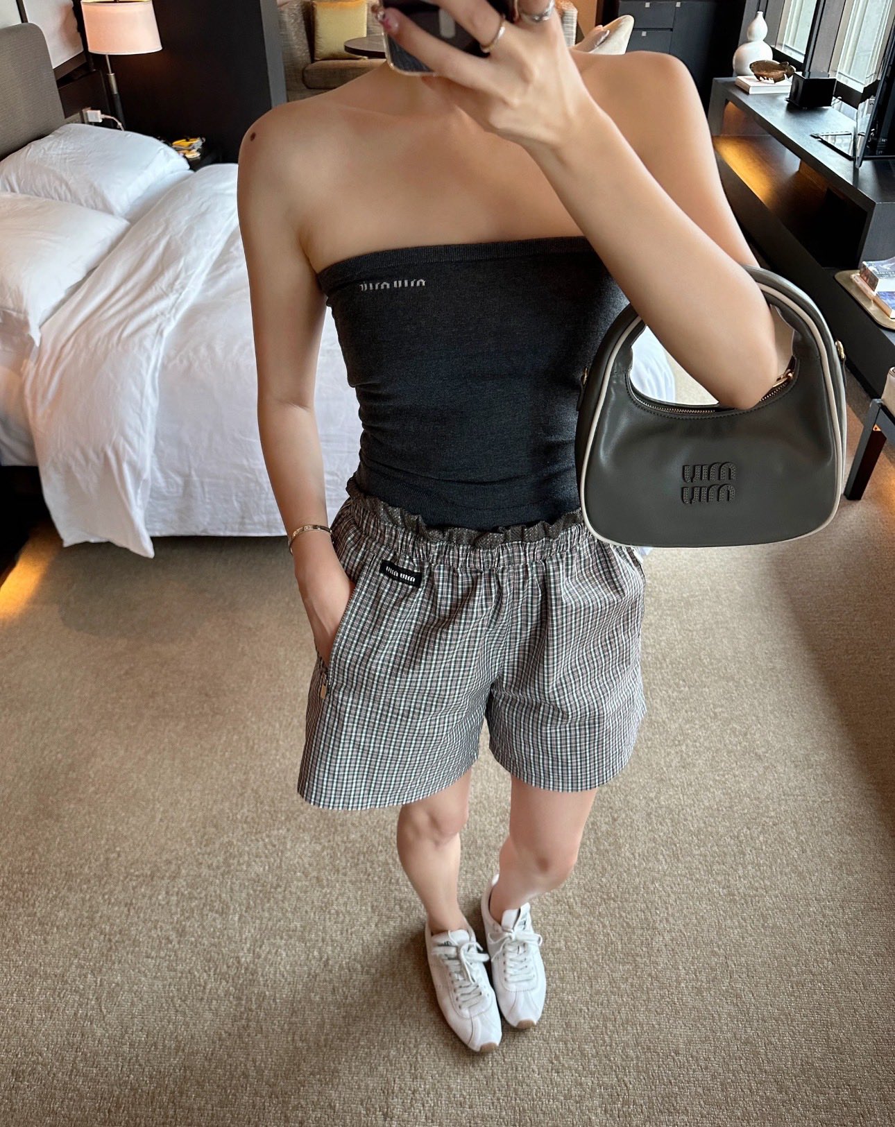 这款衣服是AAAAA 1:1 质量 (非常棒). 使用了和原版一模一样的材料. 商标部分也保持了和缪缪/Miu Miu一样. 图片拍摄是实物衣服拍摄, 您所收到的实物保证和我们图片一模一样.