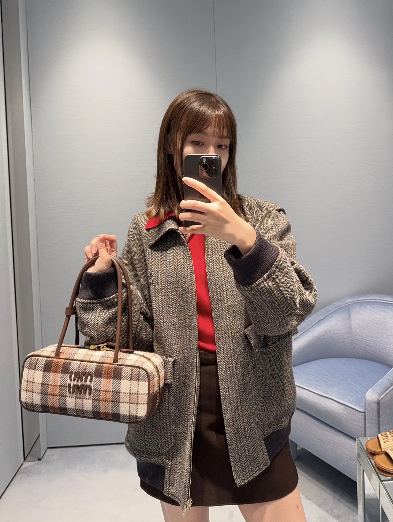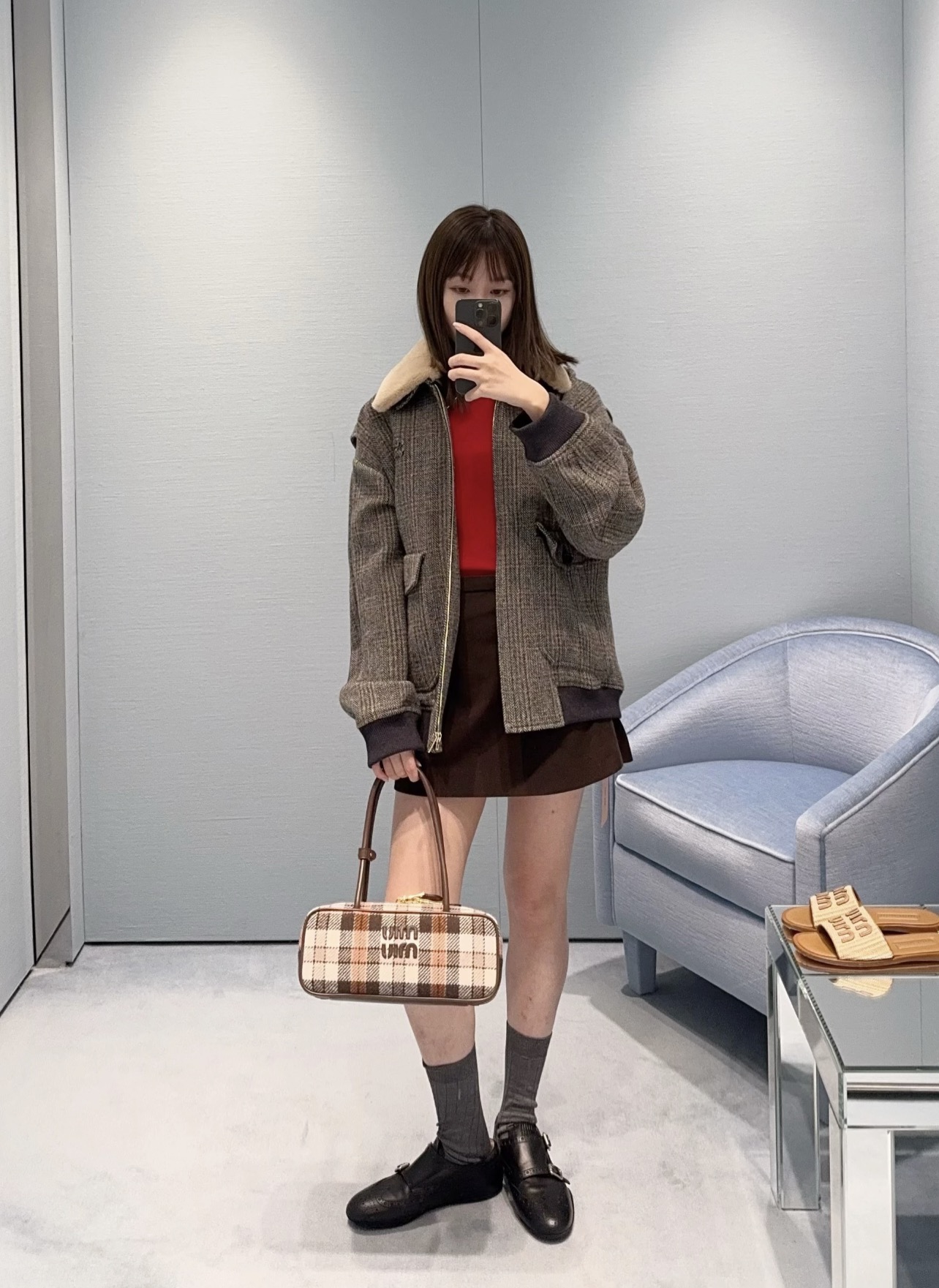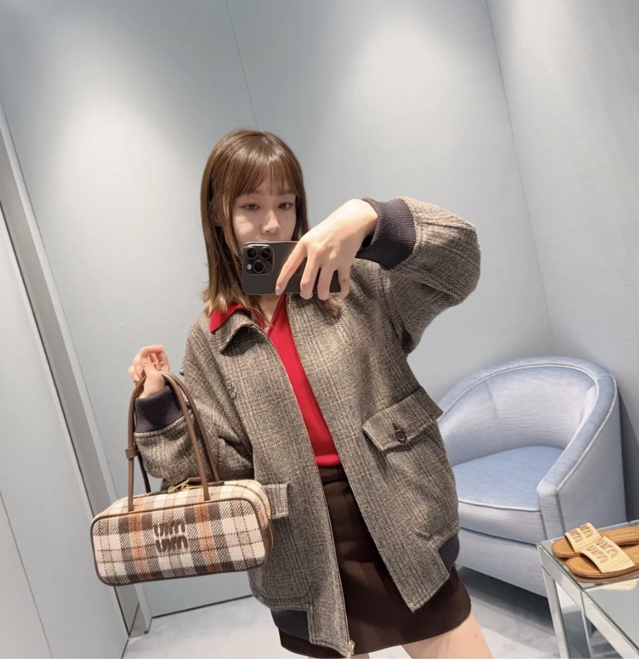 这款衣服是AAAAA 1:1 质量 (非常棒). 使用了和原版一模一样的材料. 商标部分也保持了和缪缪/Miu Miu一样. 图片拍摄是实物衣服拍摄, 您所收到的实物保证和我们图片一模一样.
