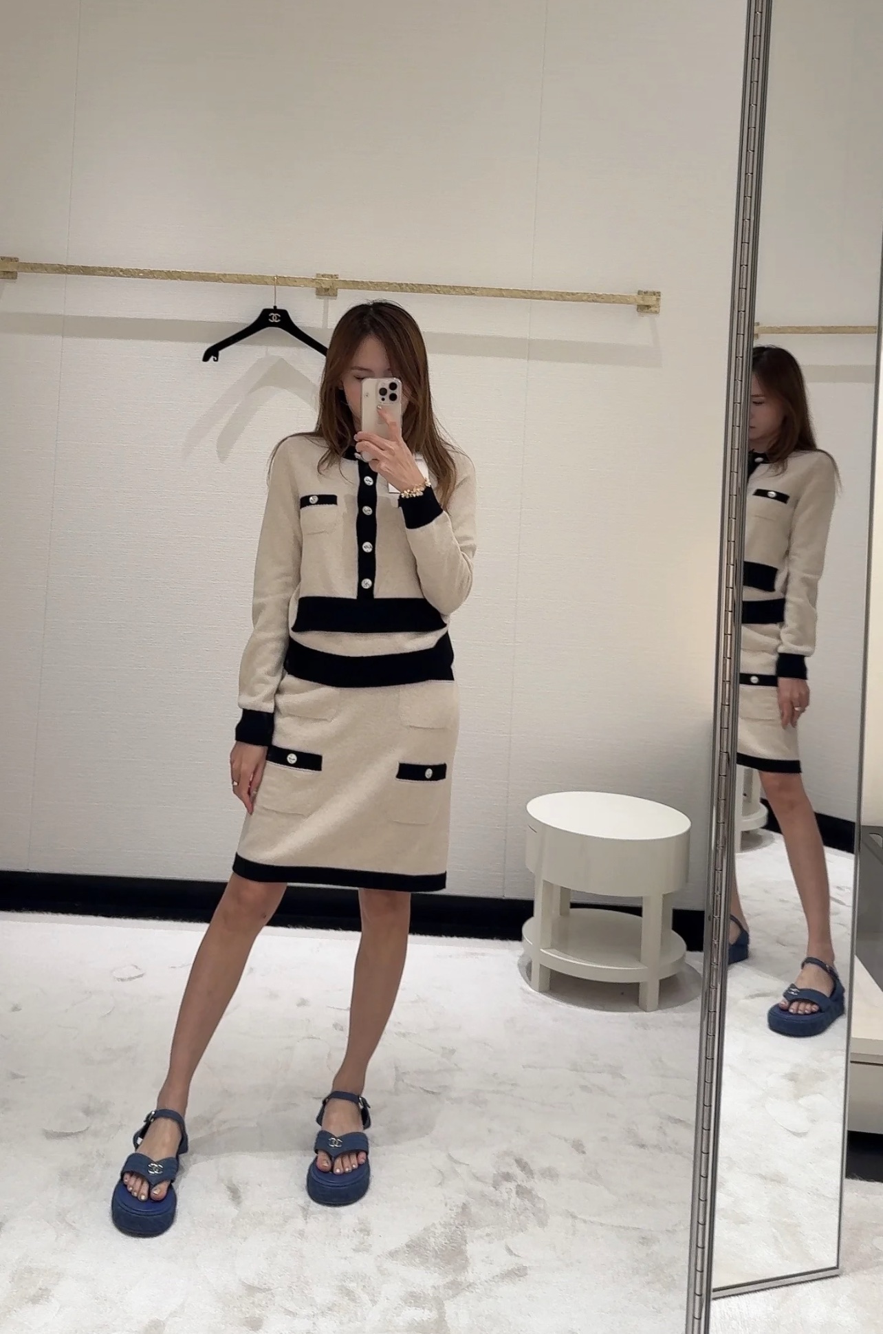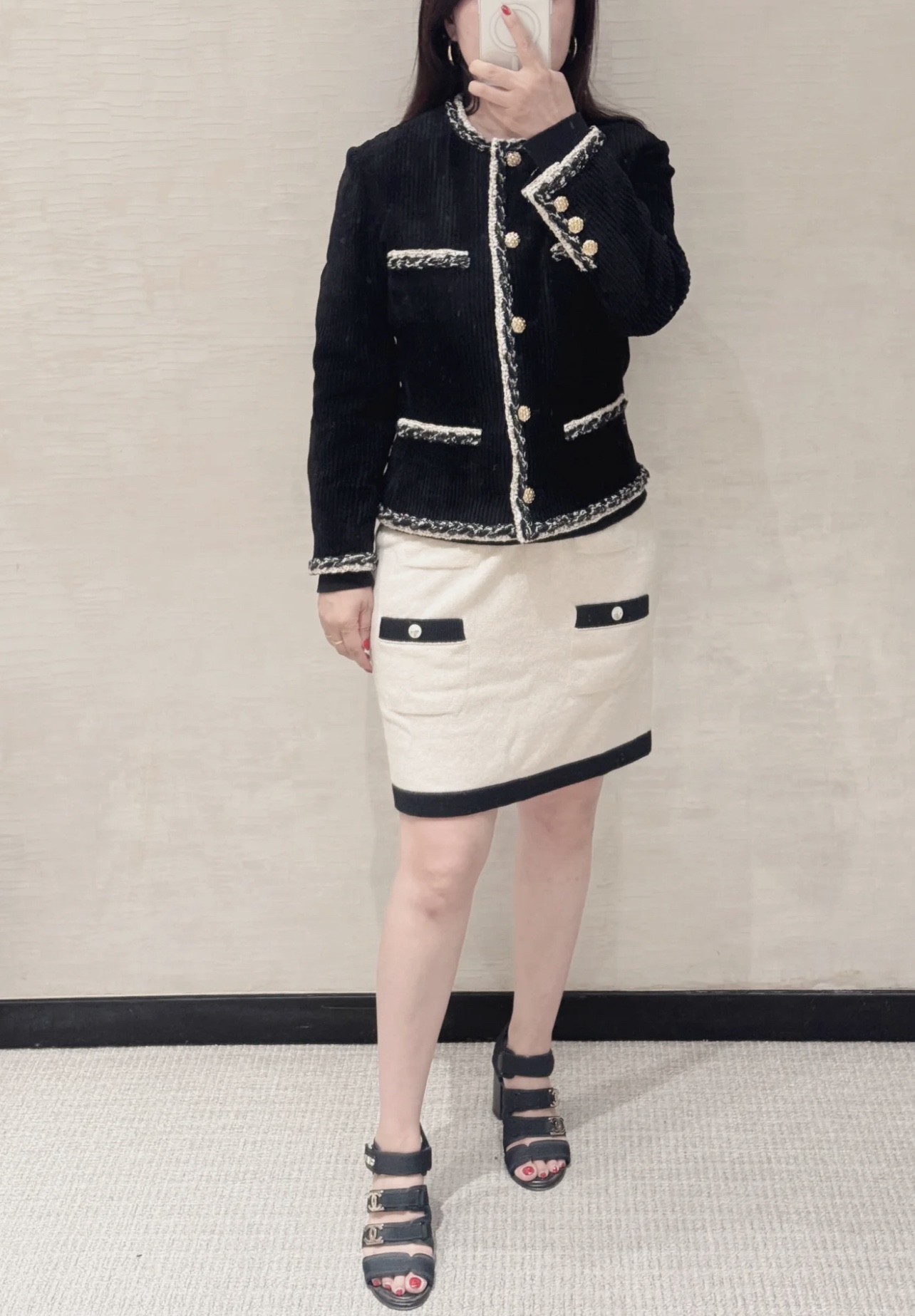 这款衣服是AAAAA 1:1 质量 (非常棒). 使用了和原版一模一样的材料. 商标部分也保持了和香奈儿/Chanel一样. 图片拍摄是实物衣服拍摄, 您所收到的实物保证和我们图片一模一样.