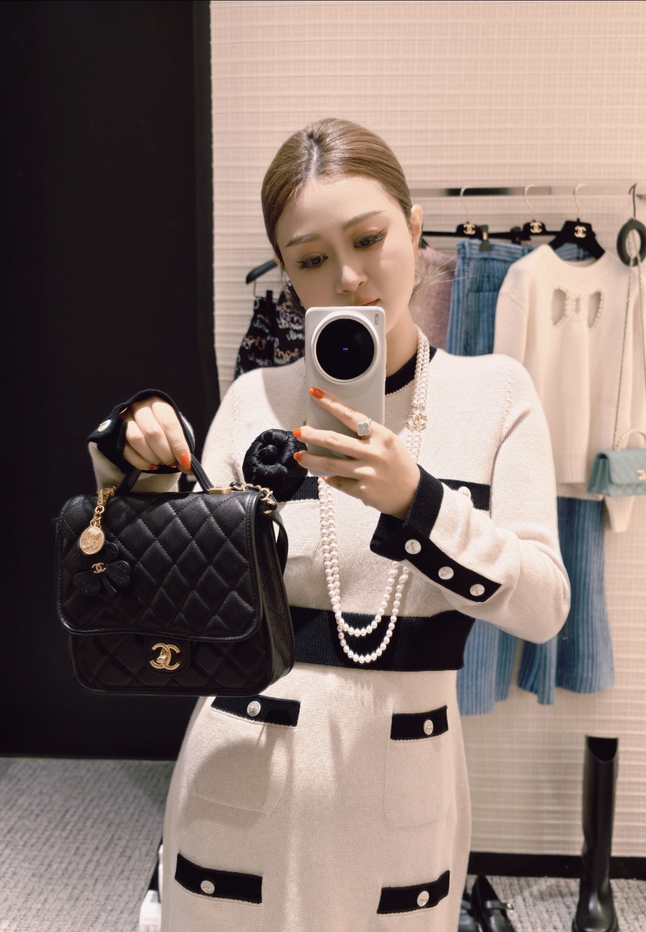 这款衣服是AAAAA 1:1 质量 (非常棒). 使用了和原版一模一样的材料. 商标部分也保持了和香奈儿/Chanel一样. 图片拍摄是实物衣服拍摄, 您所收到的实物保证和我们图片一模一样.