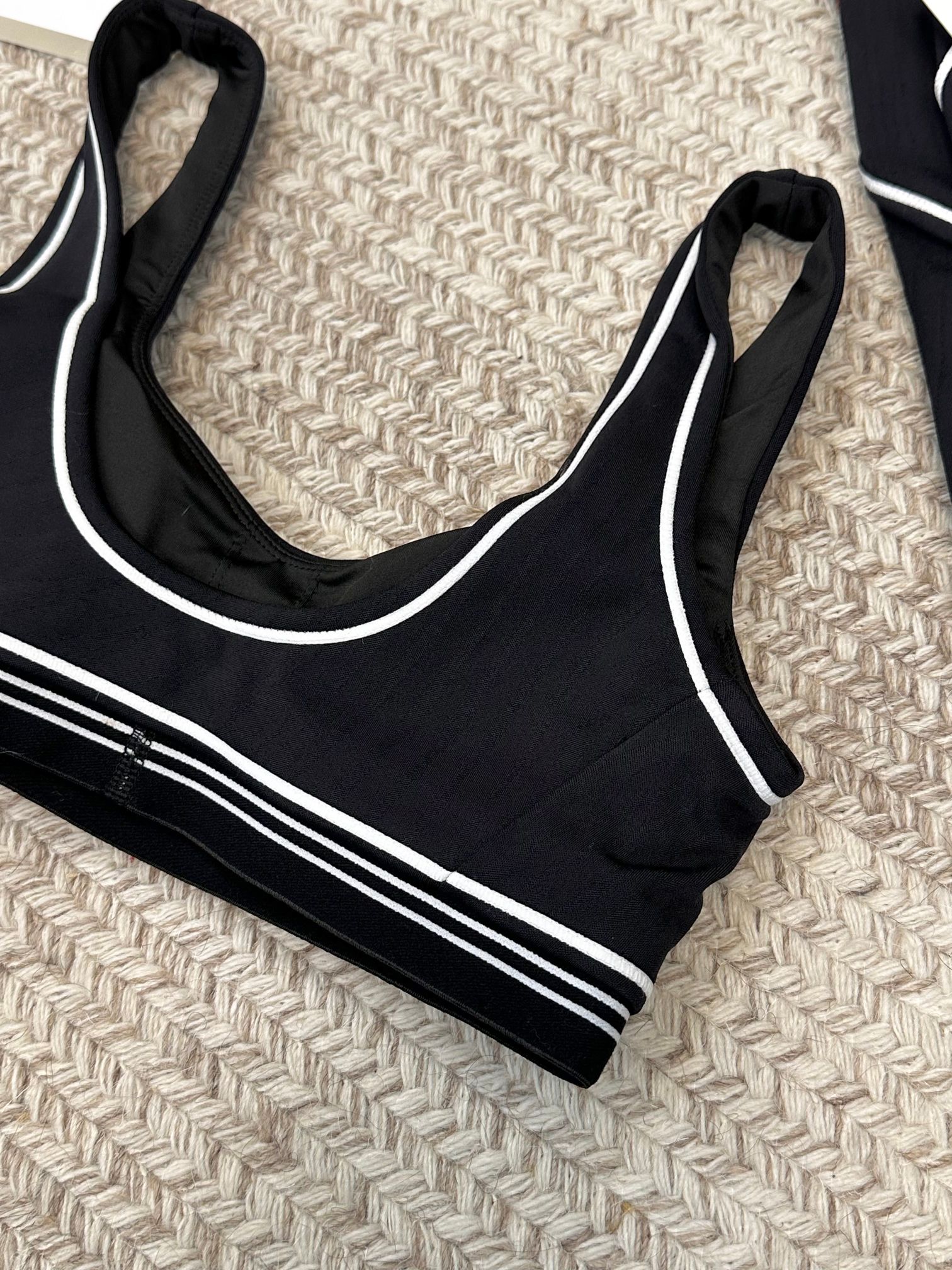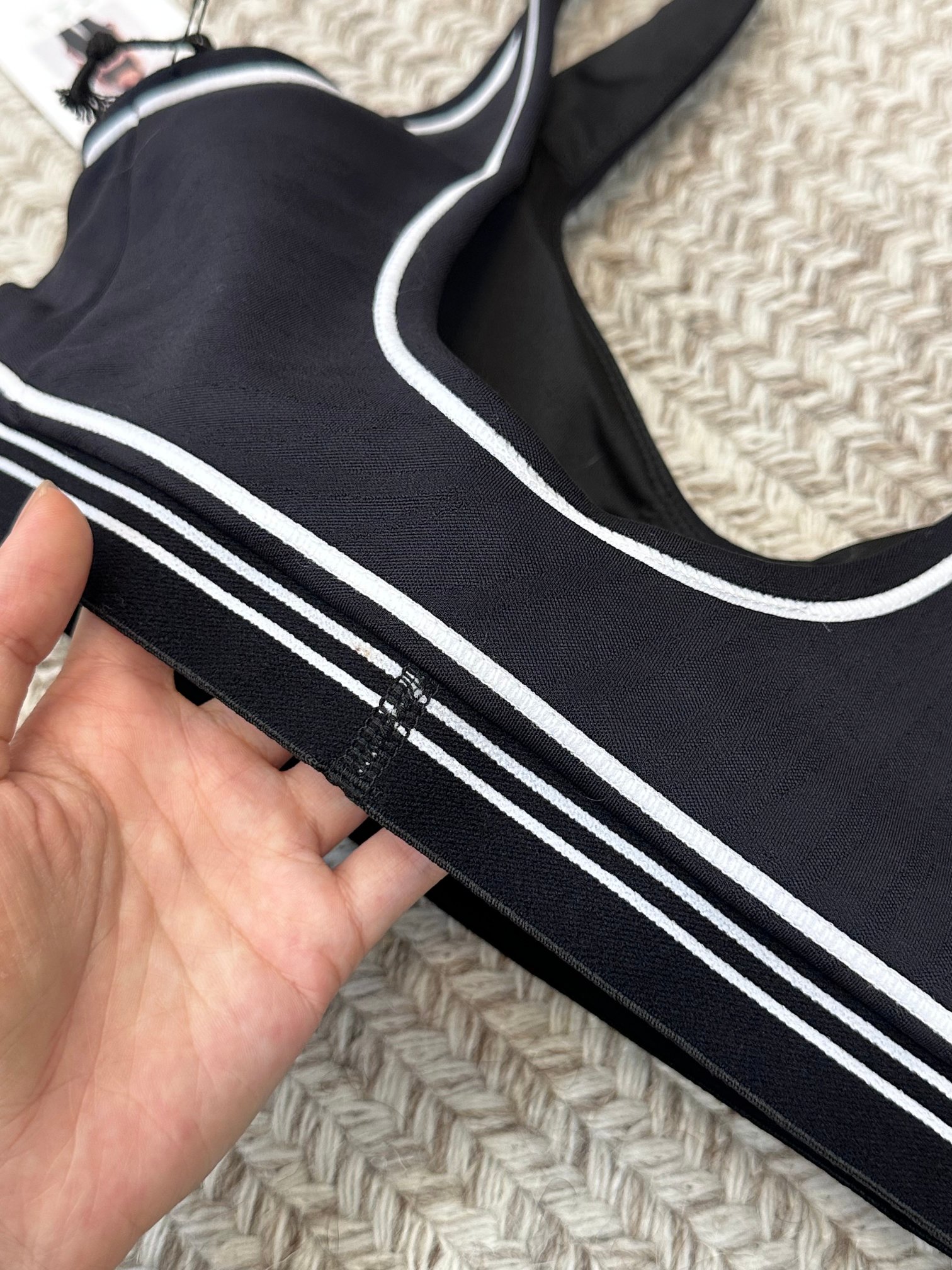 这款衣服是AAAAA 1:1 质量 (非常棒). 使用了和原版一模一样的材料. 商标部分也保持了和Alo Yoga一样. 图片拍摄是实物衣服拍摄, 您所收到的实物保证和我们图片一模一样.
