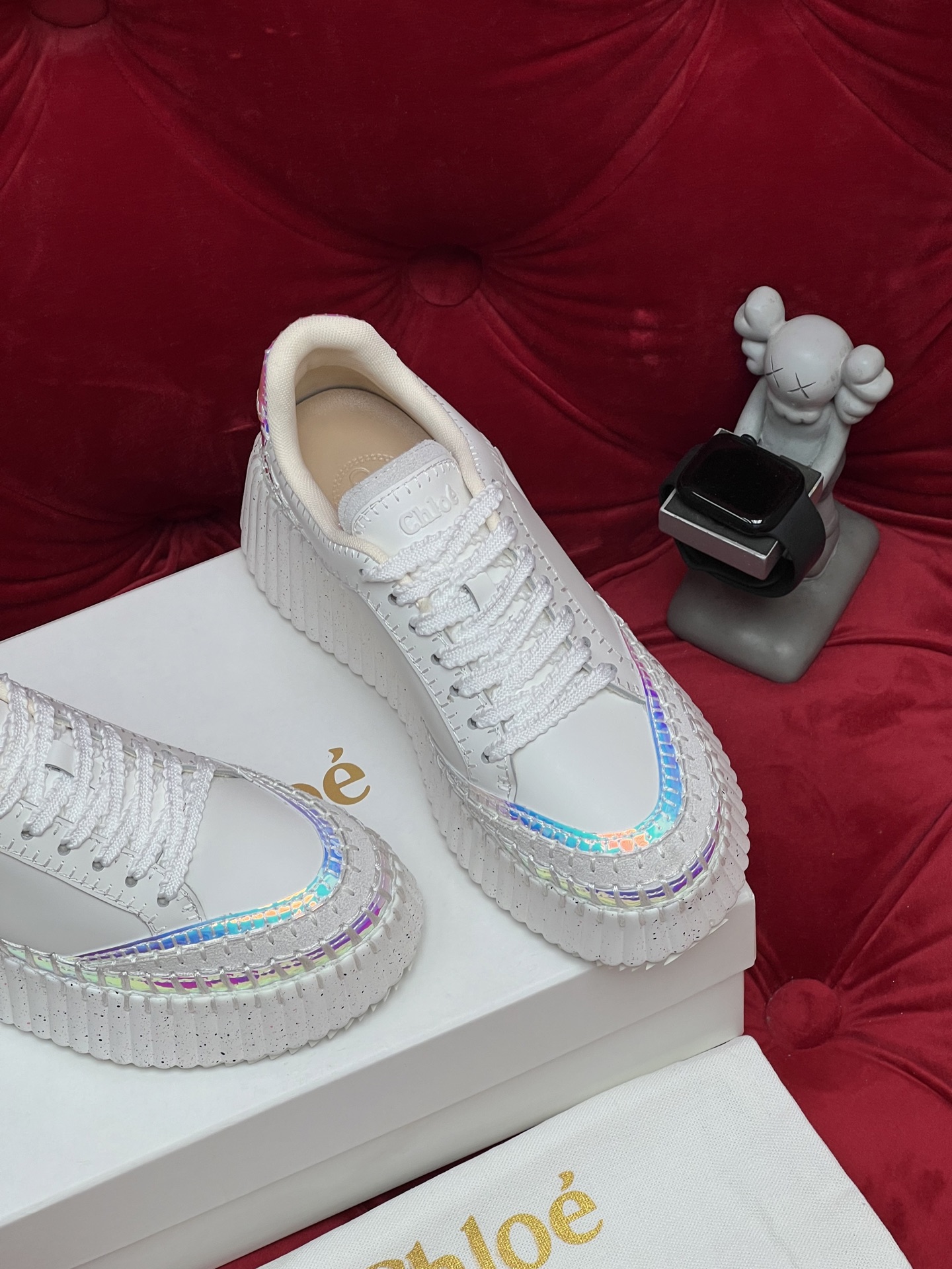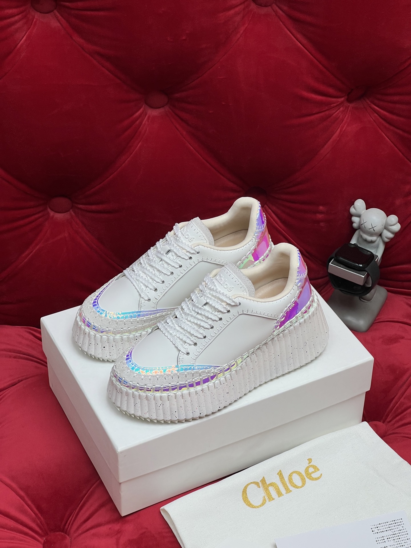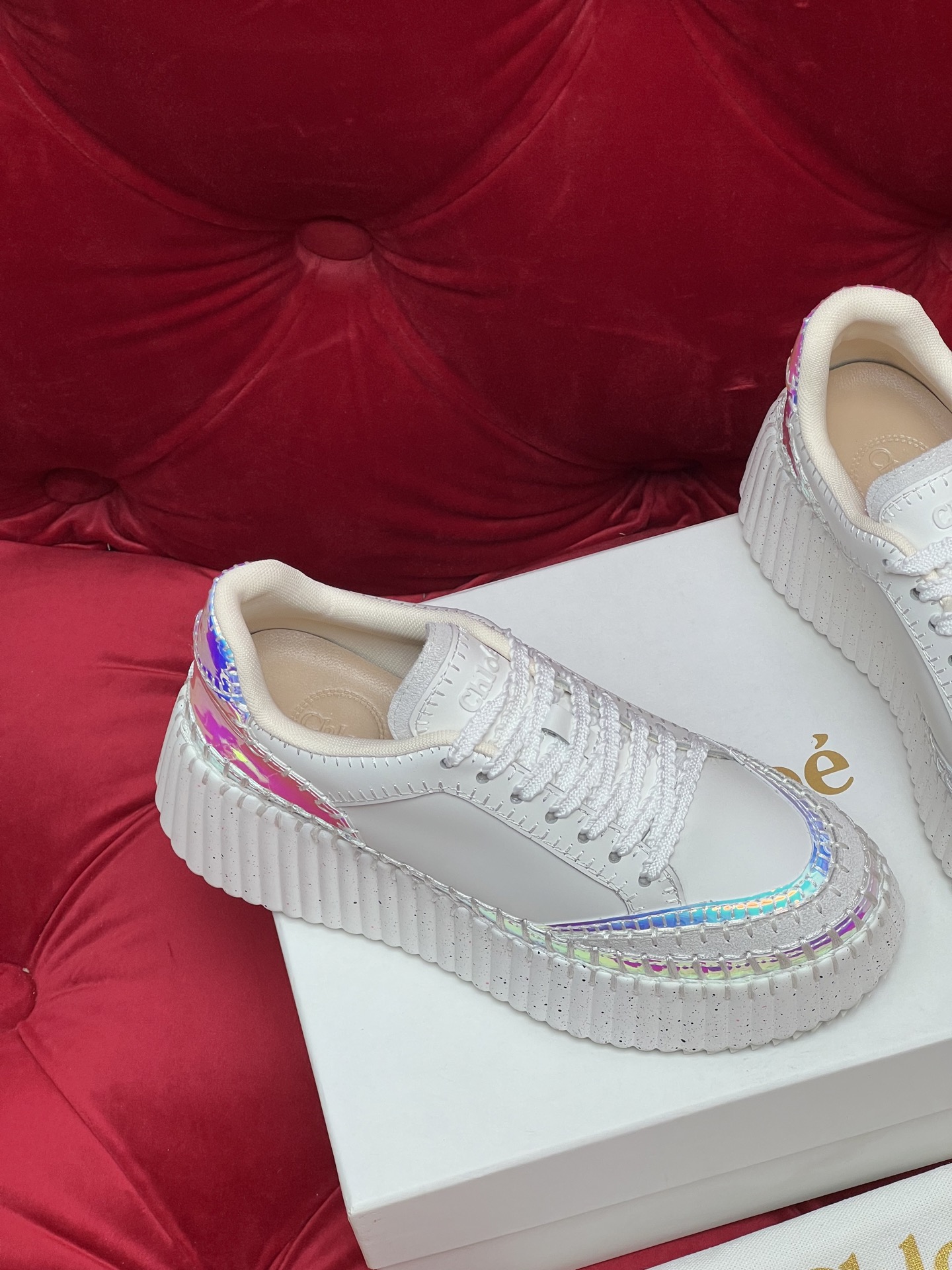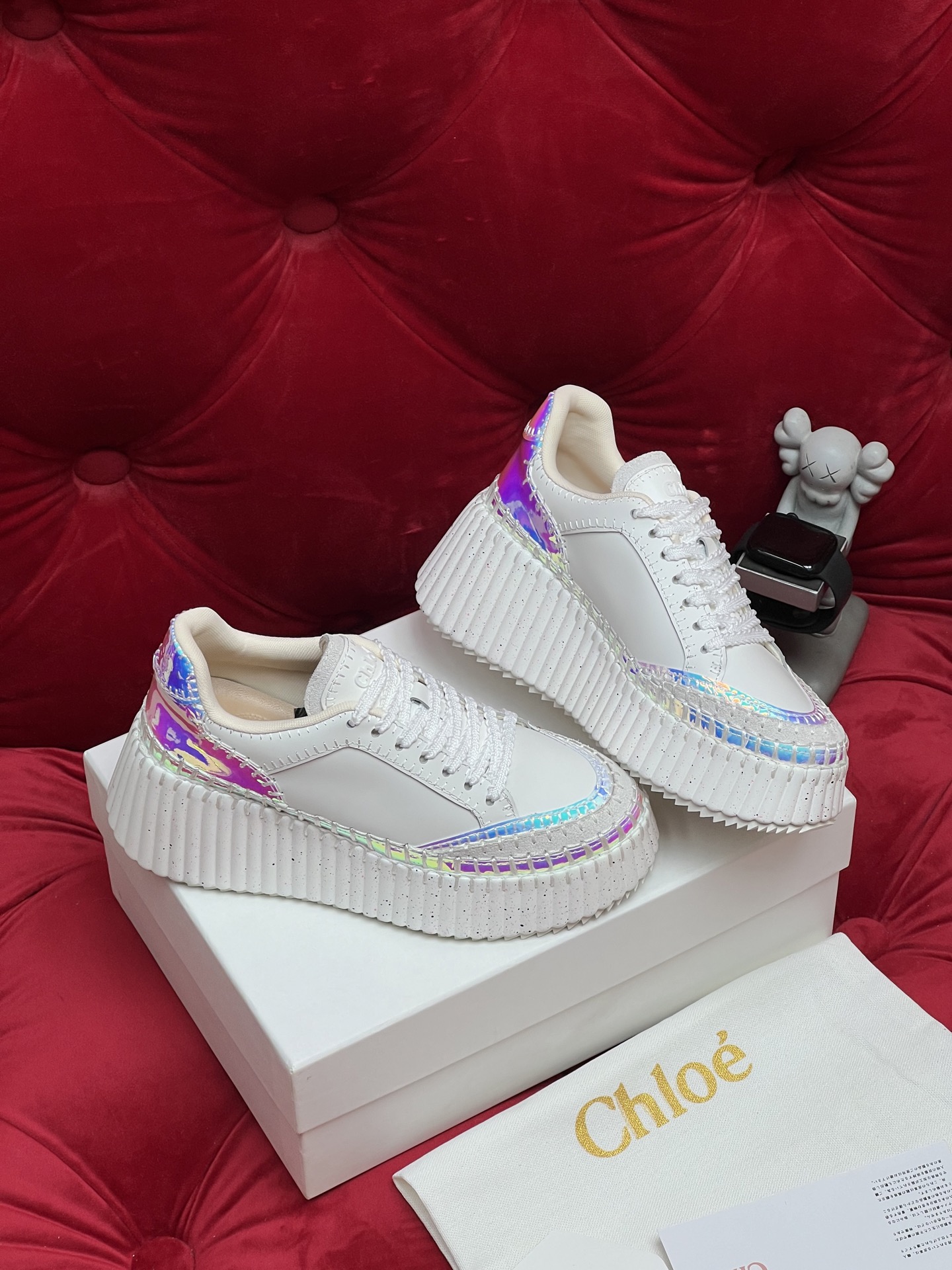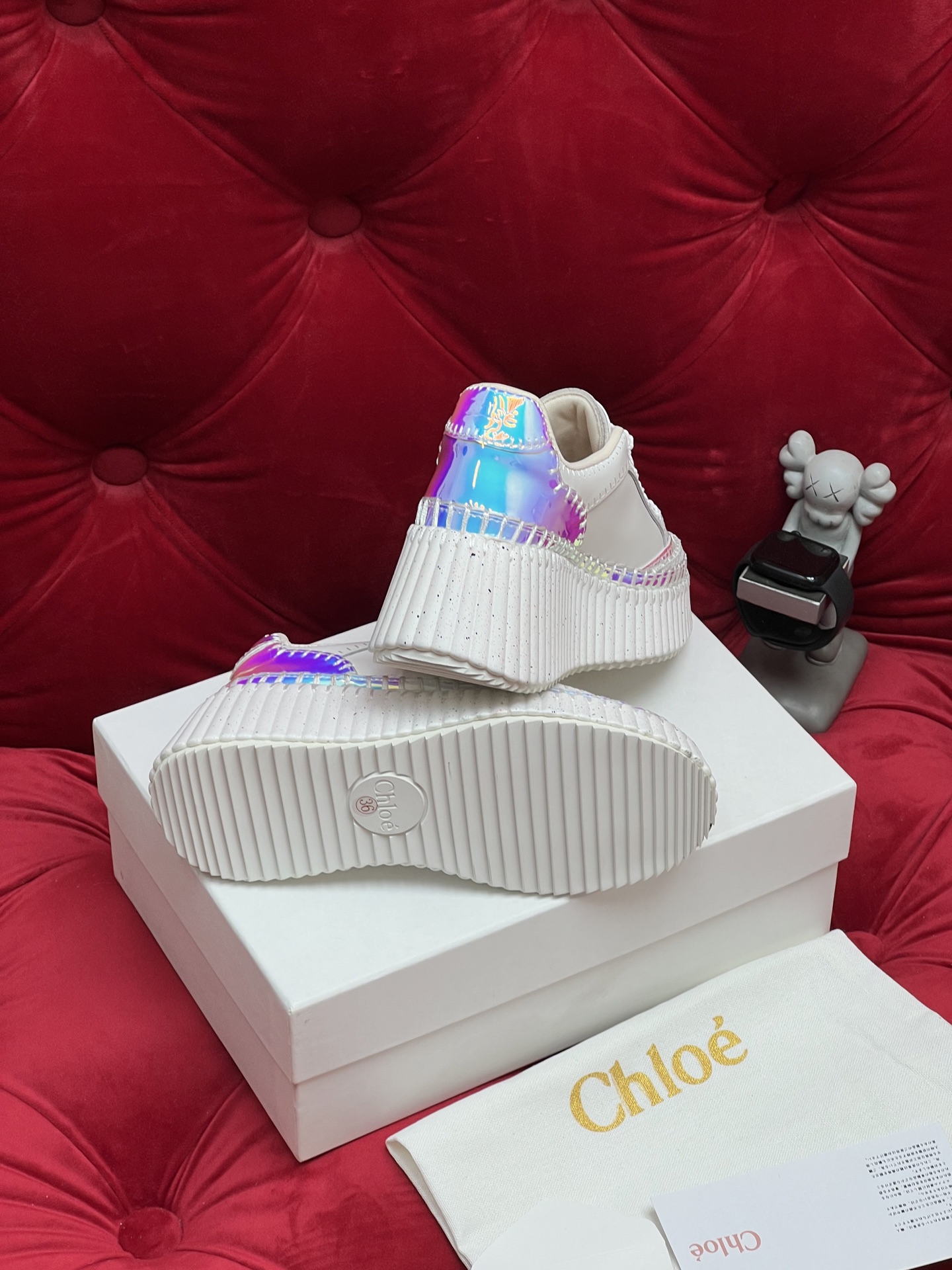 这款鞋子是AAAAA 1:1 质量 (非常棒). 使用了和原版一模一样的材料. 商标部分也保持了和克洛伊/Chloe一样. 图片拍摄是实物鞋子拍摄, 您所收到的实物保证和我们图片一模一样.