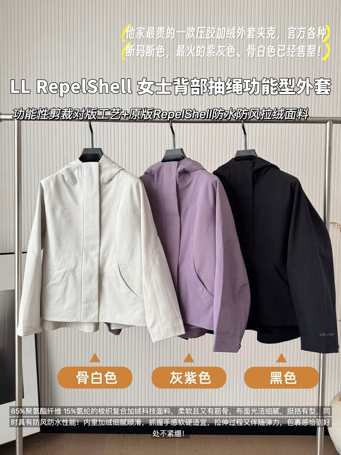 这款衣服是AAAAA 1:1 质量 (非常棒). 使用了和原版一模一样的材料. 商标部分也保持了和Lululemon一样. 图片拍摄是实物衣服拍摄, 您所收到的实物保证和我们图片一模一样.