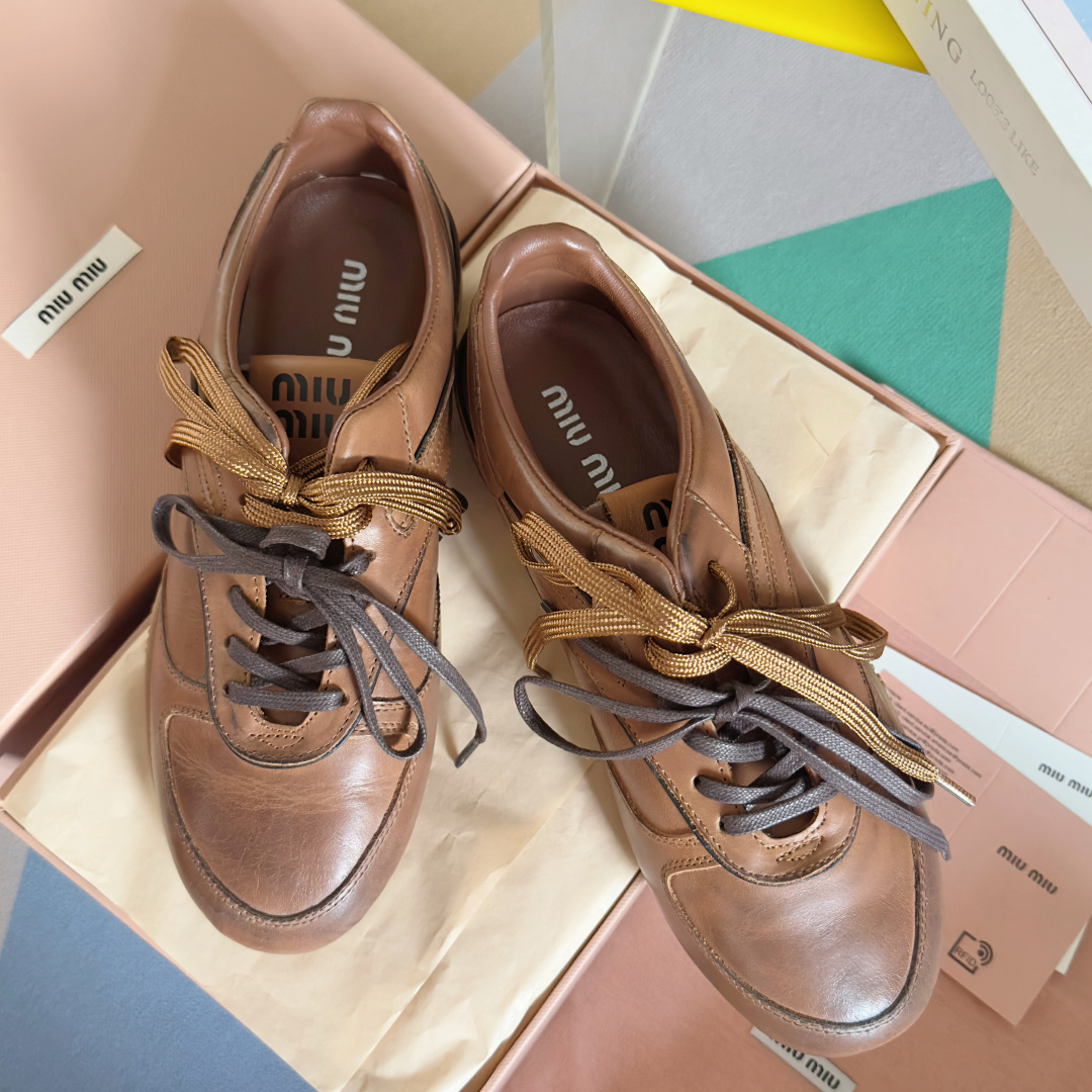这款鞋子是AAAAA 1:1 质量 (非常棒). 使用了和原版一模一样的材料. 商标部分也保持了和缪缪/Miu Miu一样. 图片拍摄是实物鞋子拍摄, 您所收到的实物保证和我们图片一模一样.