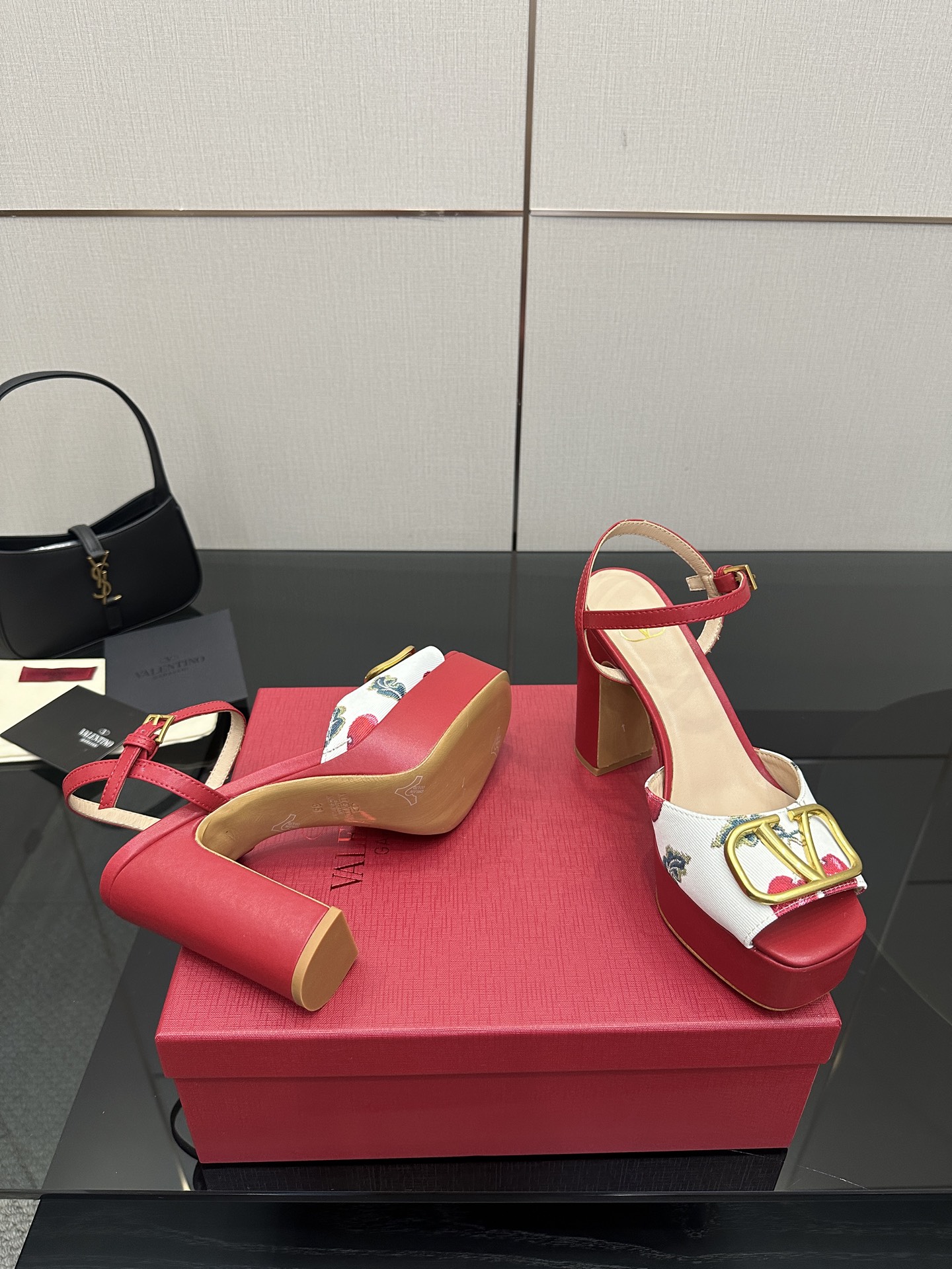 这款鞋子是AAAAA 1:1 质量 (非常棒). 使用了和原版一模一样的材料. 商标部分也保持了和华伦天奴/Valentino一样. 图片拍摄是实物鞋子拍摄, 您所收到的实物保证和我们图片一模一样.