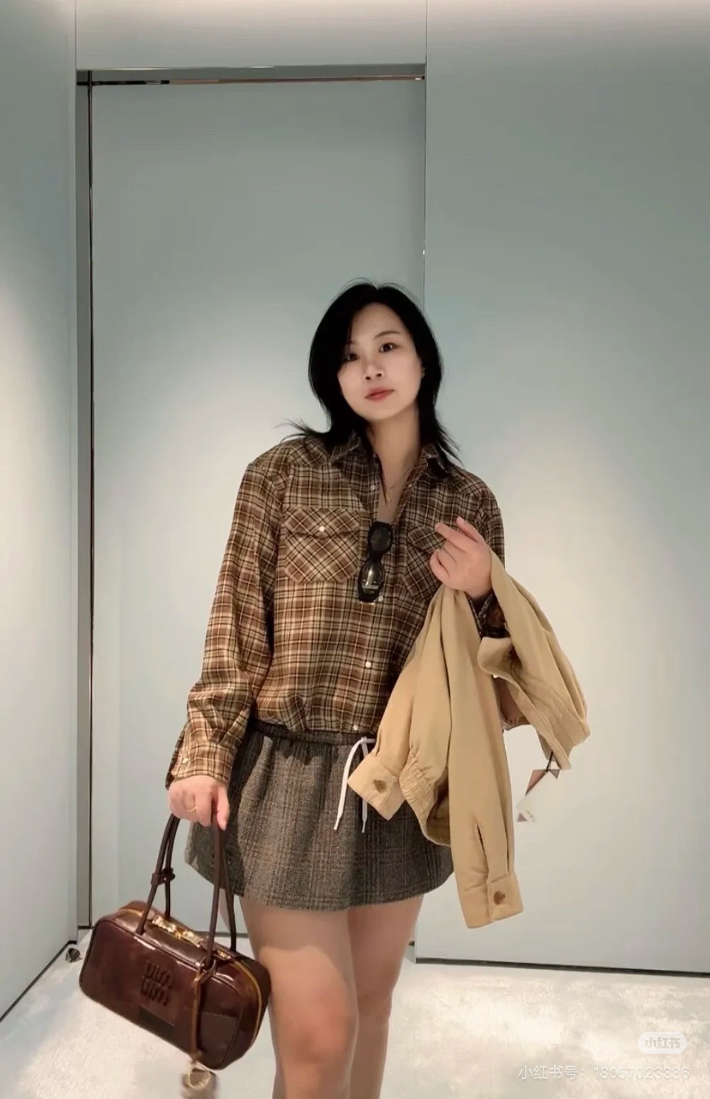 这款衣服是AAAAA 1:1 质量 (非常棒). 使用了和原版一模一样的材料. 商标部分也保持了和缪缪/Miu Miu一样. 图片拍摄是实物衣服拍摄, 您所收到的实物保证和我们图片一模一样.