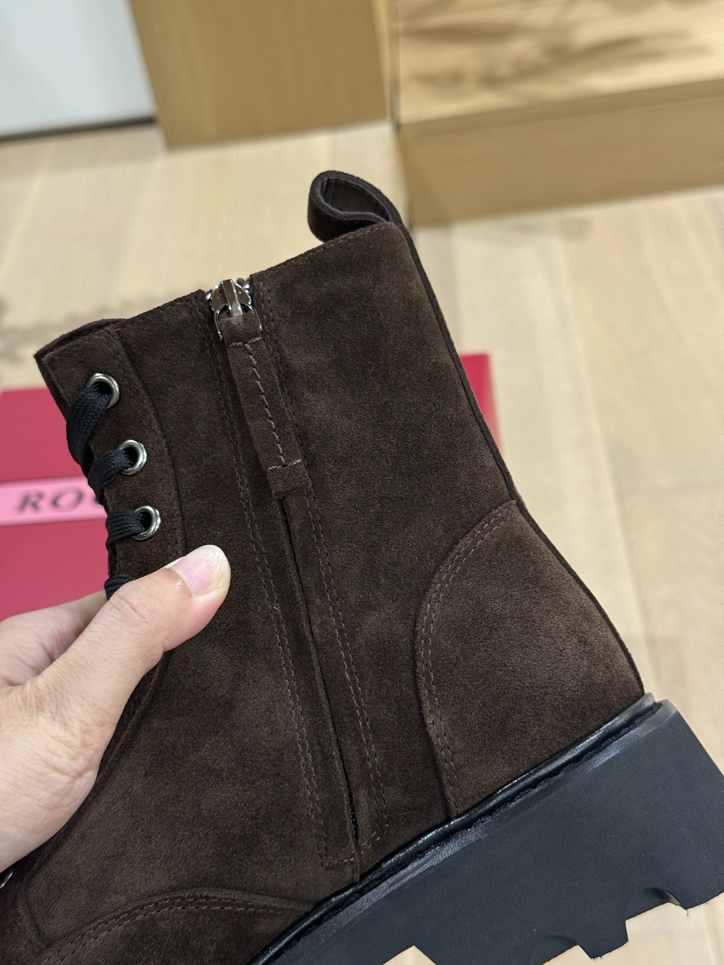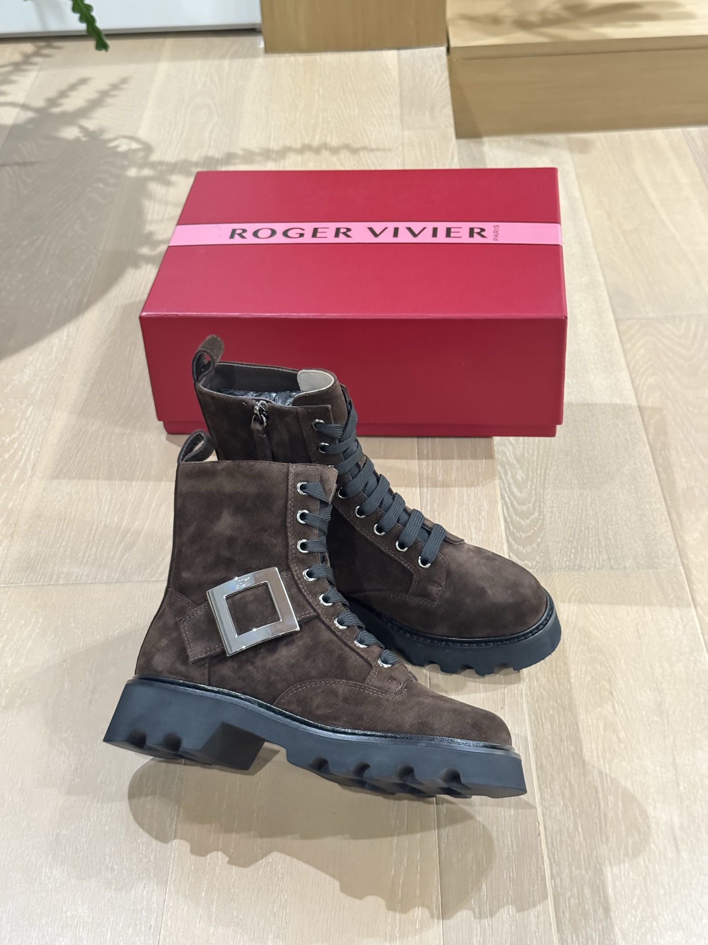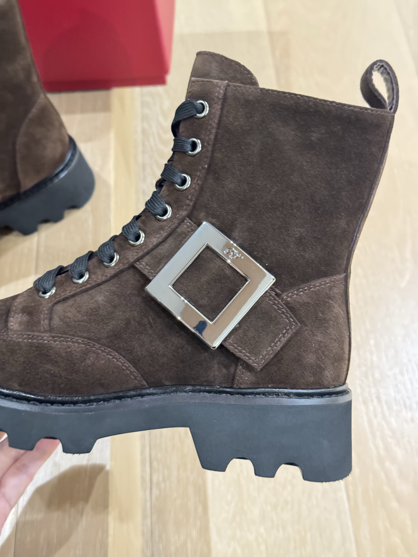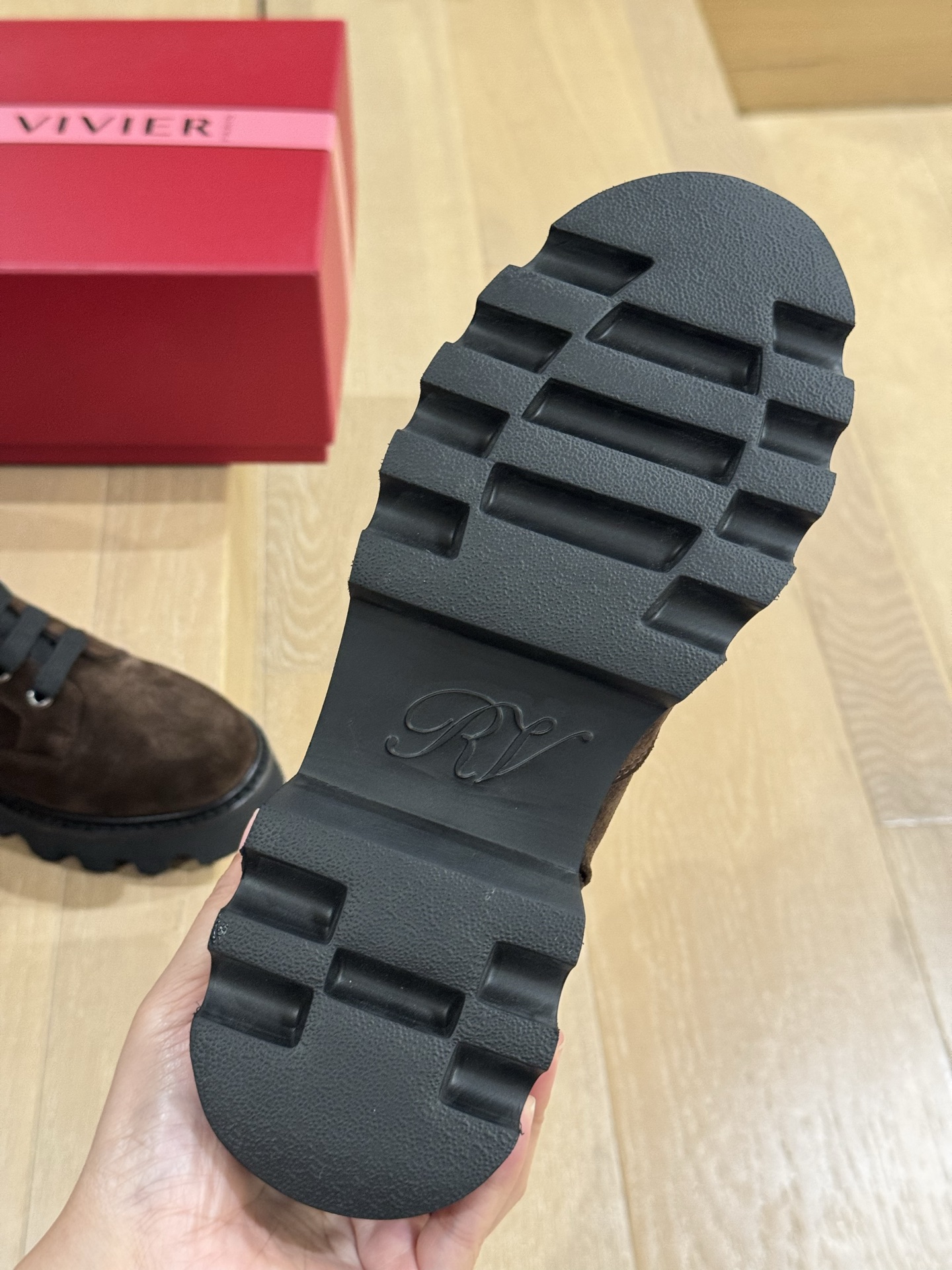 这款鞋子是AAAAA 1:1 质量 (非常棒). 使用了和原版一模一样的材料. 商标部分也保持了和罗杰维维耶/Roger Vivier一样. 图片拍摄是实物鞋子拍摄, 您所收到的实物保证和我们图片一模一样.
