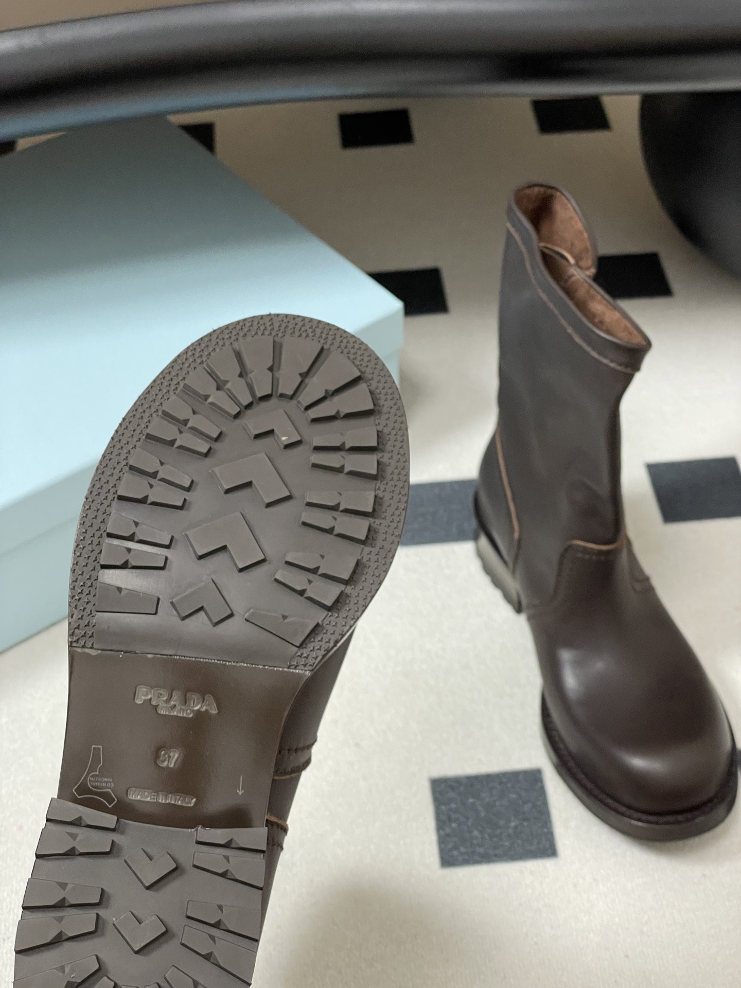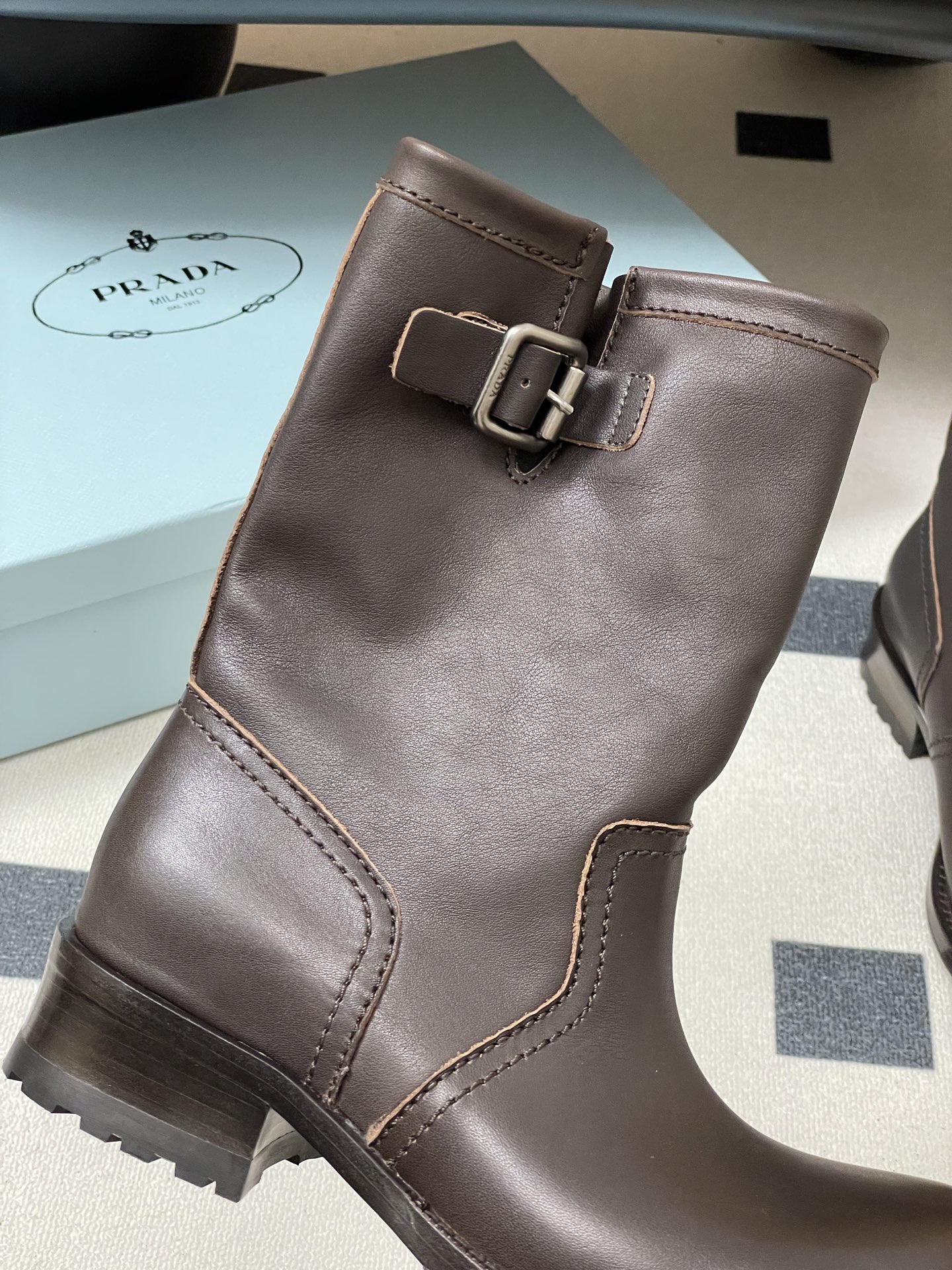 这款鞋子是AAAAA 1:1 质量 (非常棒). 使用了和原版一模一样的材料. 商标部分也保持了和普拉达/Prada一样. 图片拍摄是实物鞋子拍摄, 您所收到的实物保证和我们图片一模一样.