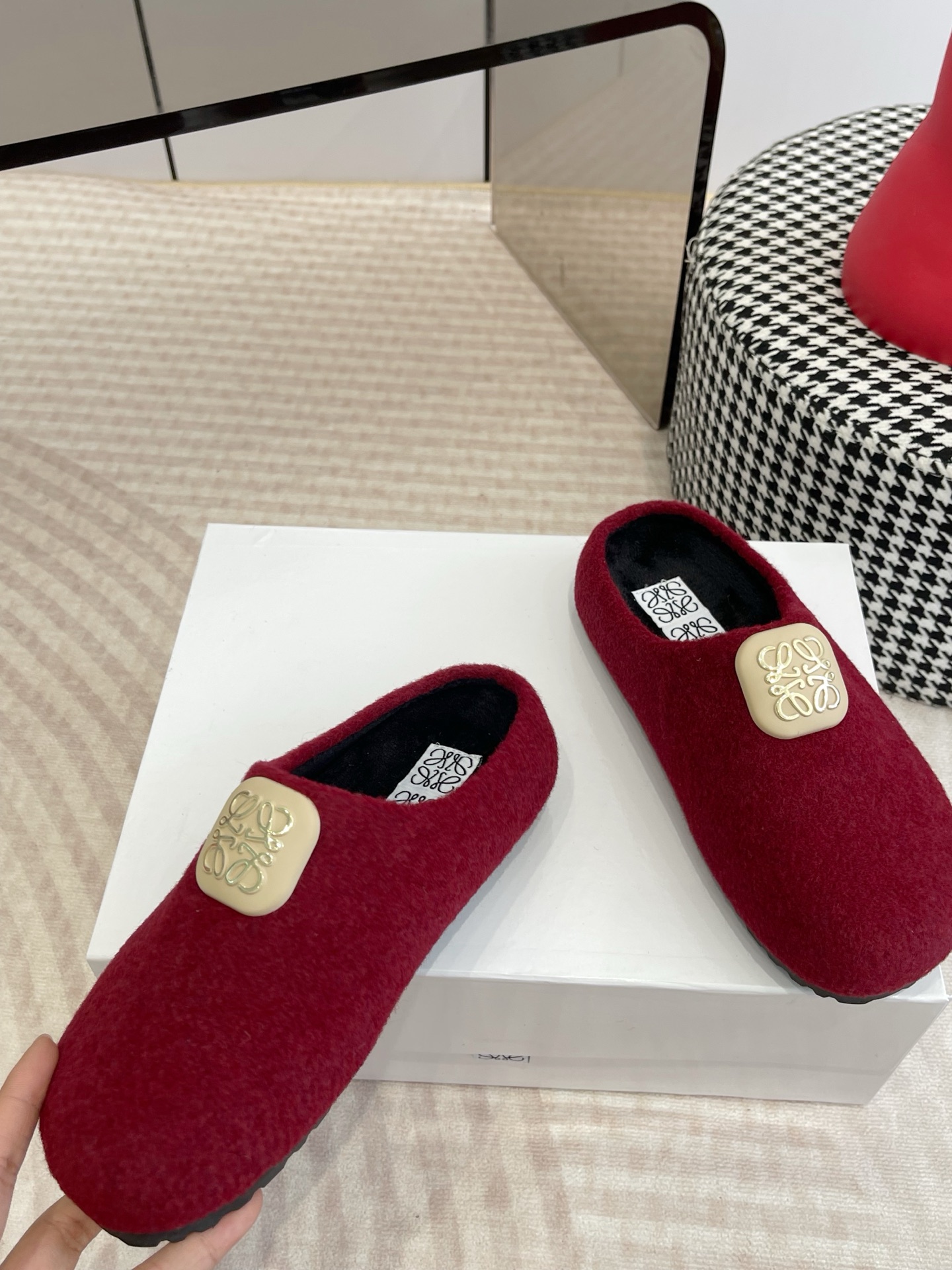 这款鞋子是AAAAA 1:1 质量 (非常棒). 使用了和原版一模一样的材料. 商标部分也保持了和罗意威/Loewe一样. 图片拍摄是实物鞋子拍摄, 您所收到的实物保证和我们图片一模一样.