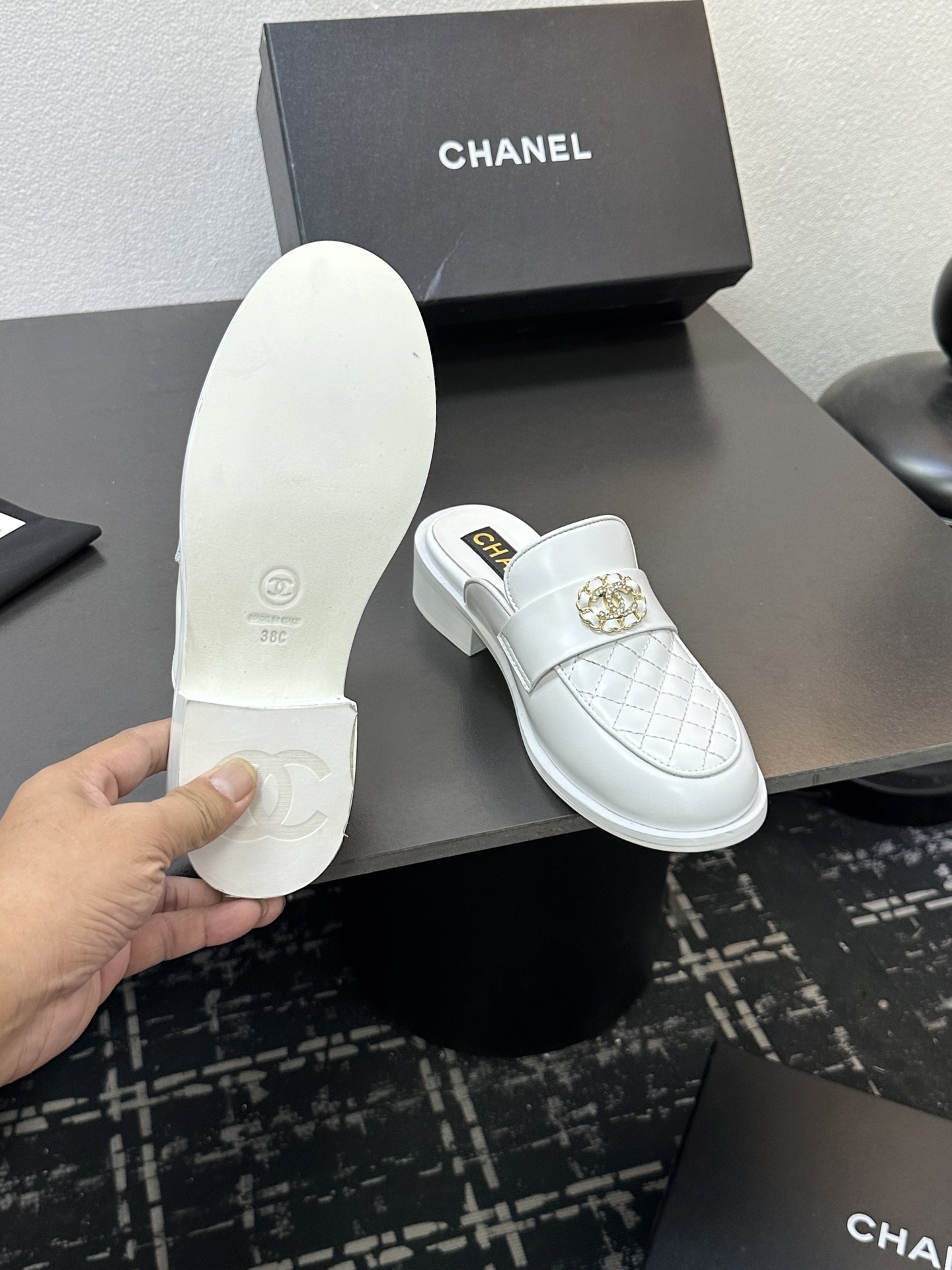 这款鞋子是AAAAA 1:1 质量 (非常棒). 使用了和原版一模一样的材料. 商标部分也保持了和香奈儿/Chanel一样. 图片拍摄是实物鞋子拍摄, 您所收到的实物保证和我们图片一模一样.