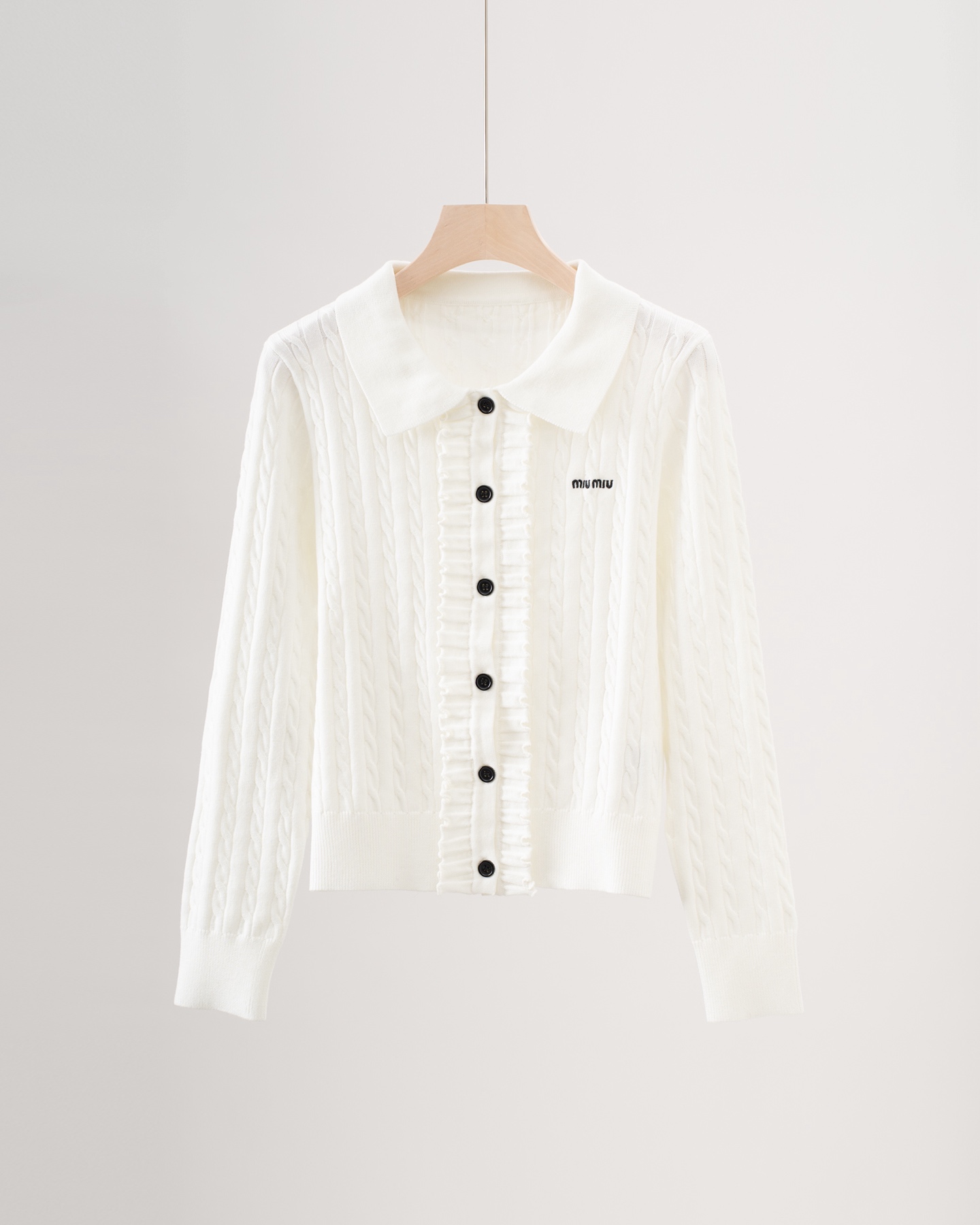 这款衣服是AAAAA 1:1 质量 (非常棒). 使用了和原版一模一样的材料. 商标部分也保持了和缪缪/Miu Miu一样. 图片拍摄是实物衣服拍摄, 您所收到的实物保证和我们图片一模一样.