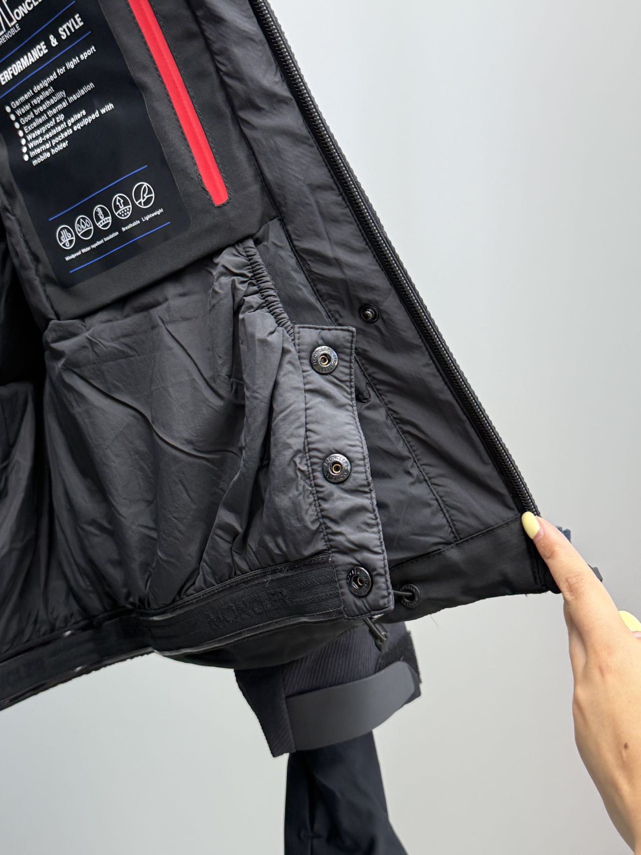 这款衣服是AAAAA 1:1 质量 (非常棒). 使用了和原版一模一样的材料. 商标部分也保持了和盟可睐/moncler一样. 图片拍摄是实物衣服拍摄, 您所收到的实物保证和我们图片一模一样.