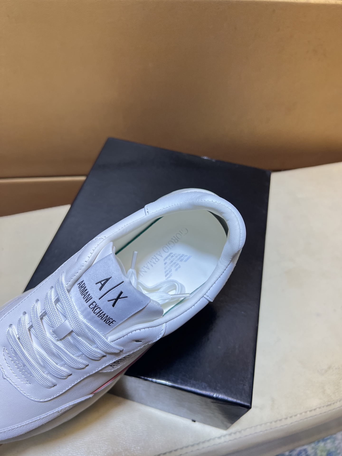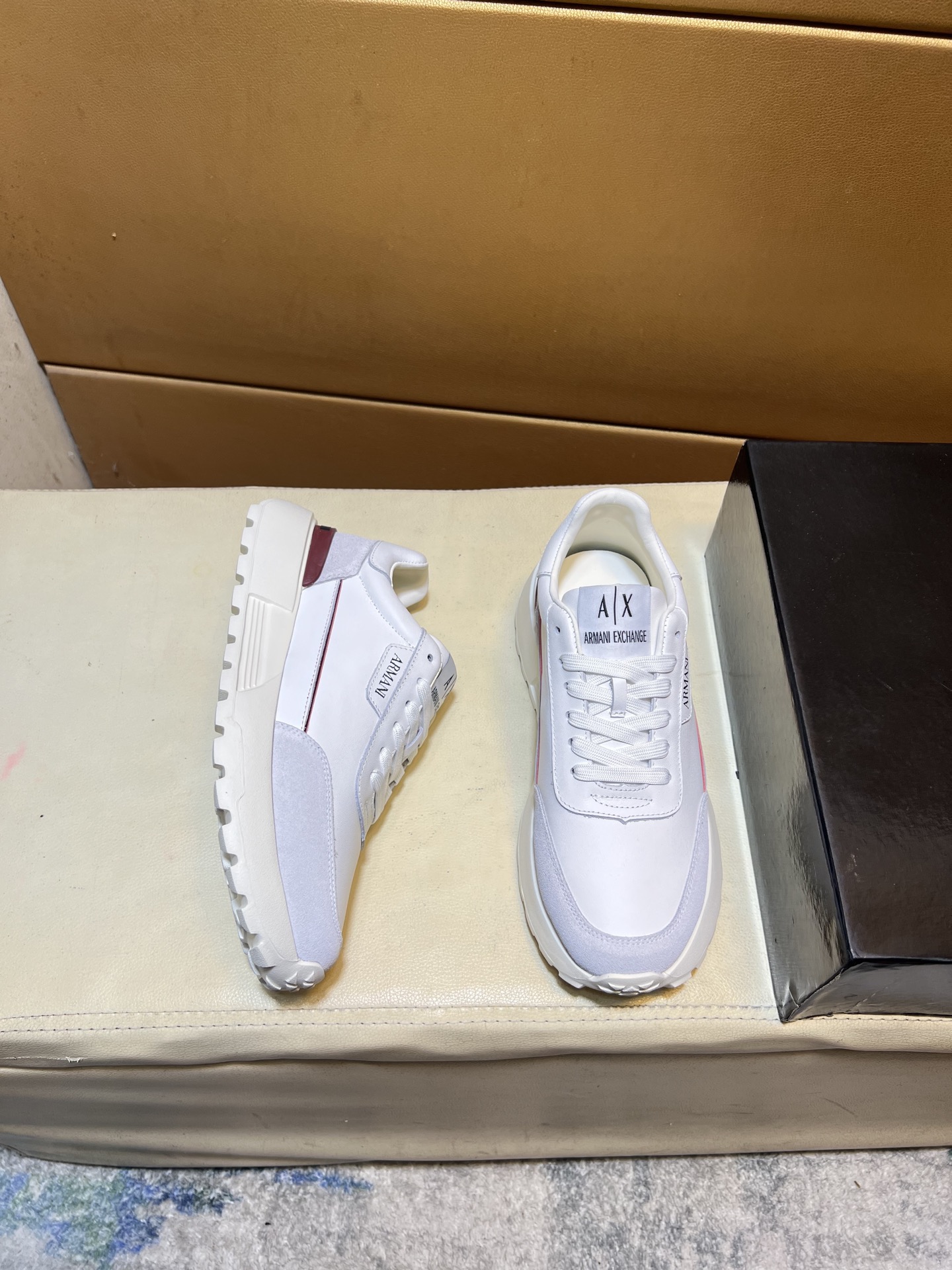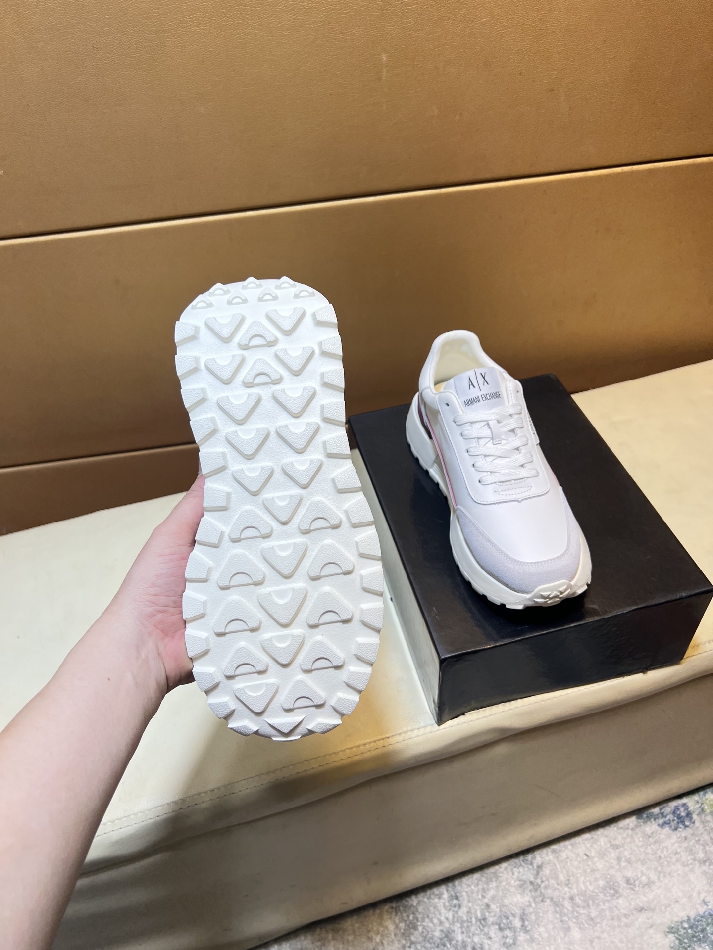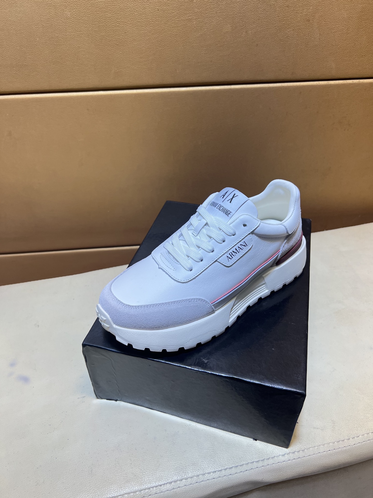 这款鞋子是AAAAA 1:1 质量 (非常棒). 使用了和原版一模一样的材料. 商标部分也保持了和阿玛尼/Armani一样. 图片拍摄是实物鞋子拍摄, 您所收到的实物保证和我们图片一模一样.