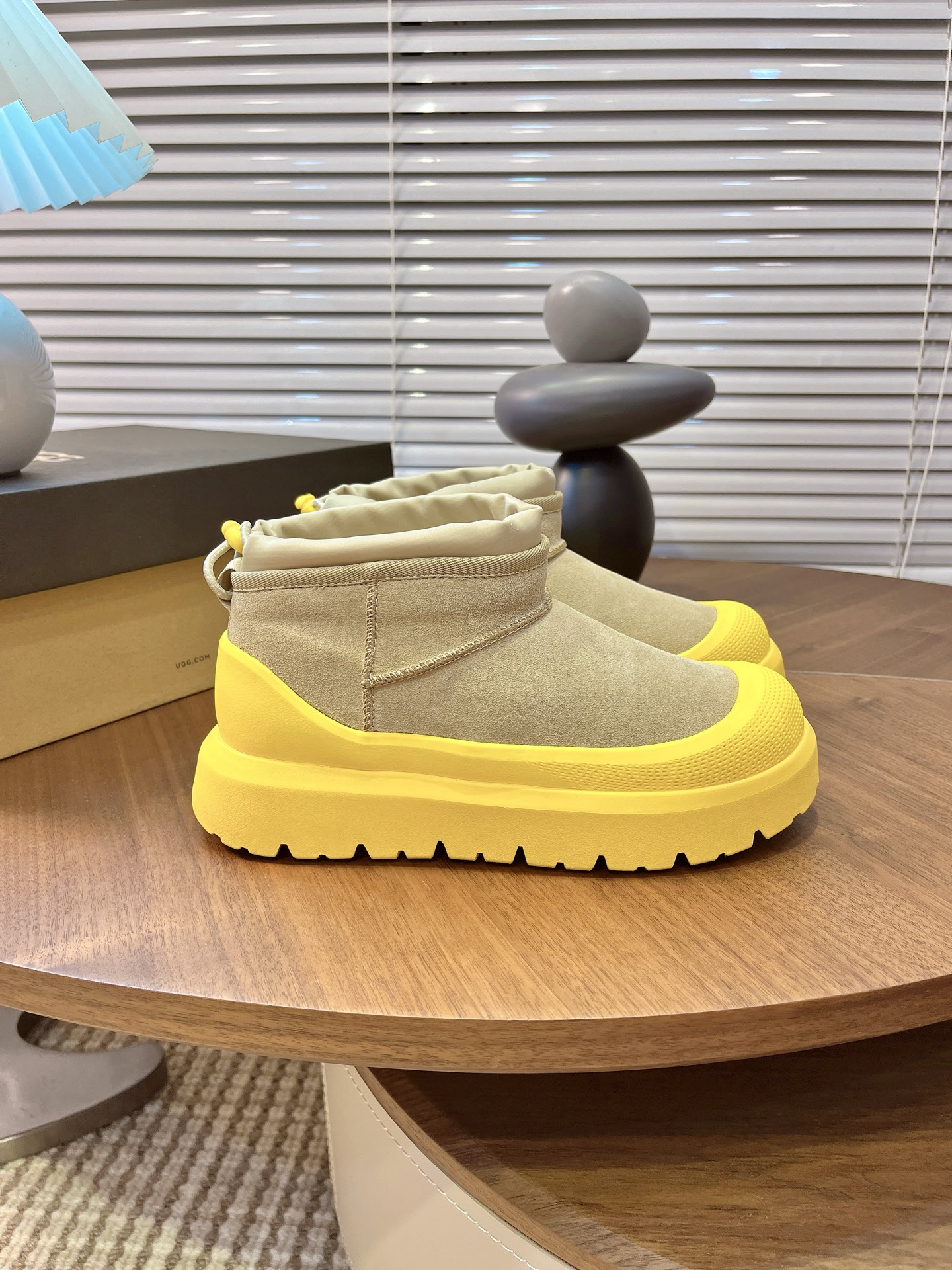 这款鞋子是AAAAA 1:1 质量 (非常棒). 使用了和原版一模一样的材料. 商标部分也保持了和UGG雪地靴一样. 图片拍摄是实物鞋子拍摄, 您所收到的实物保证和我们图片一模一样.