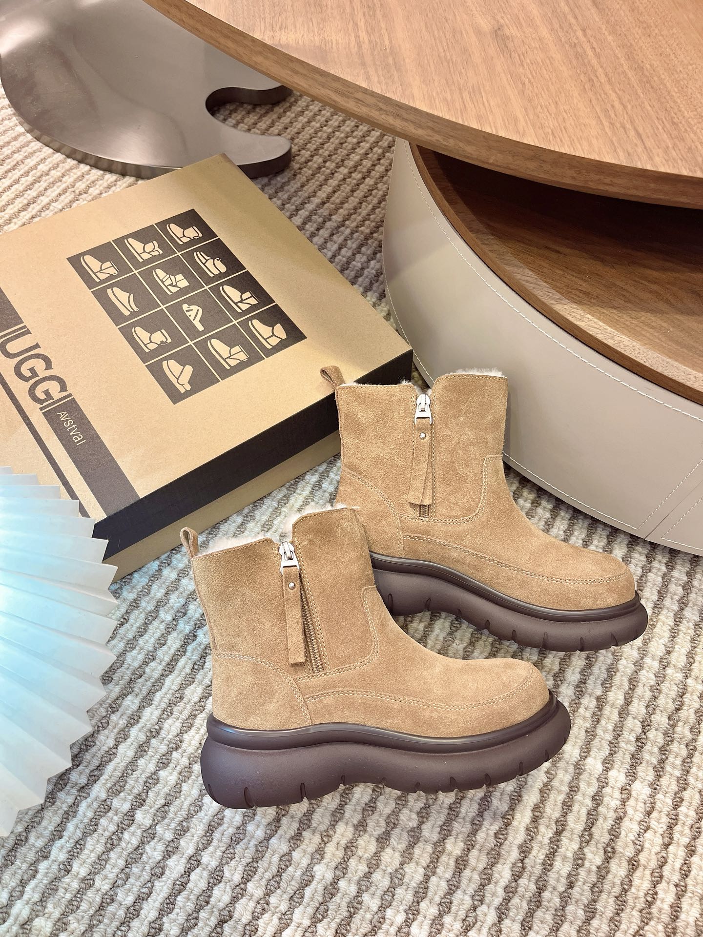 这款鞋子是AAAAA 1:1 质量 (非常棒). 使用了和原版一模一样的材料. 商标部分也保持了和UGG雪地靴一样. 图片拍摄是实物鞋子拍摄, 您所收到的实物保证和我们图片一模一样.