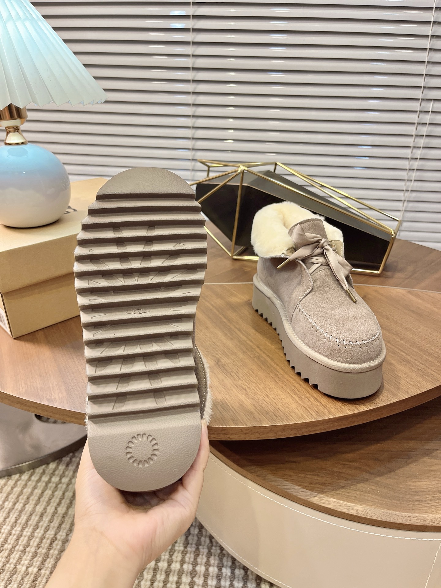 这款鞋子是AAAAA 1:1 质量 (非常棒). 使用了和原版一模一样的材料. 商标部分也保持了和UGG雪地靴一样. 图片拍摄是实物鞋子拍摄, 您所收到的实物保证和我们图片一模一样.