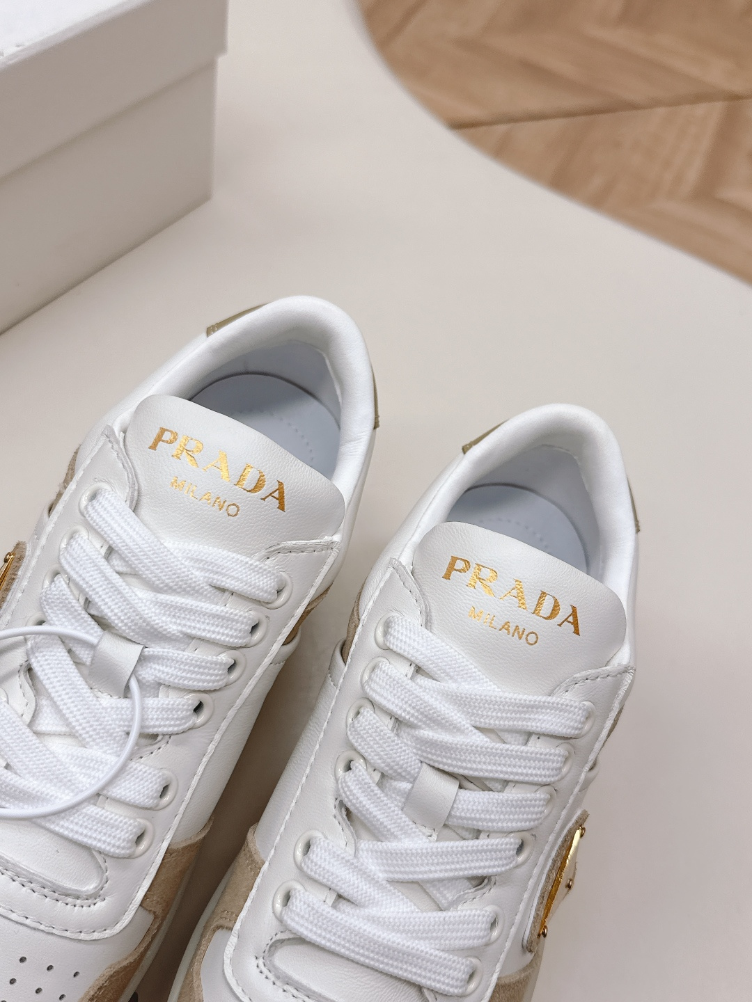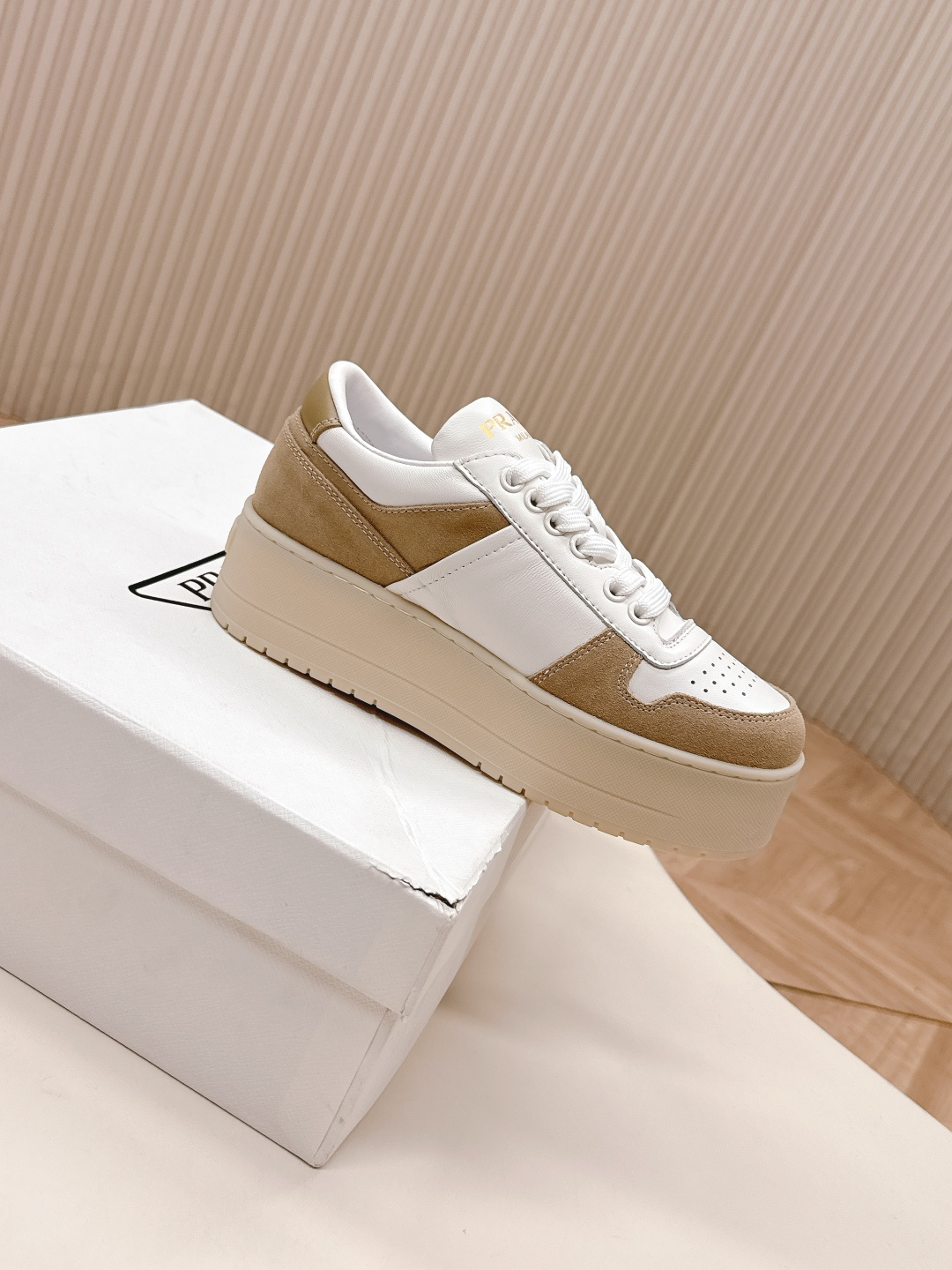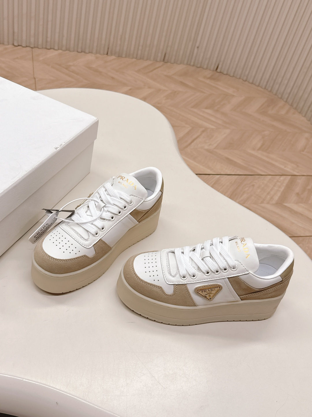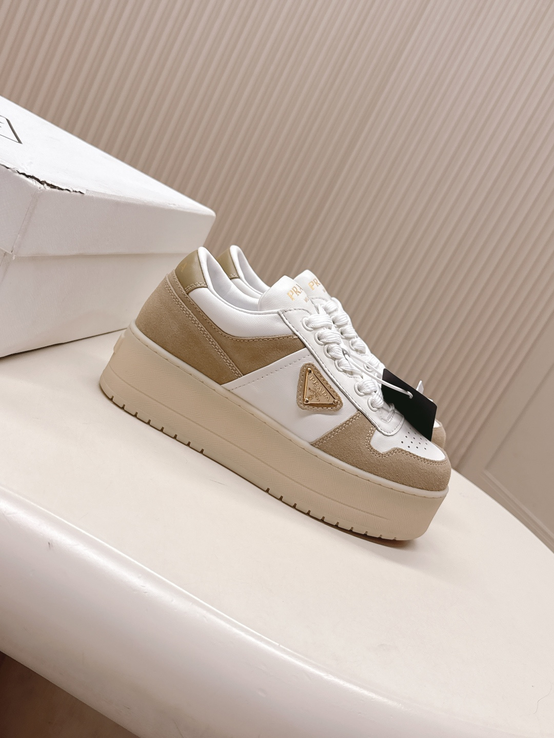 这款鞋子是AAAAA 1:1 质量 (非常棒). 使用了和原版一模一样的材料. 商标部分也保持了和普拉达/Prada一样. 图片拍摄是实物鞋子拍摄, 您所收到的实物保证和我们图片一模一样.