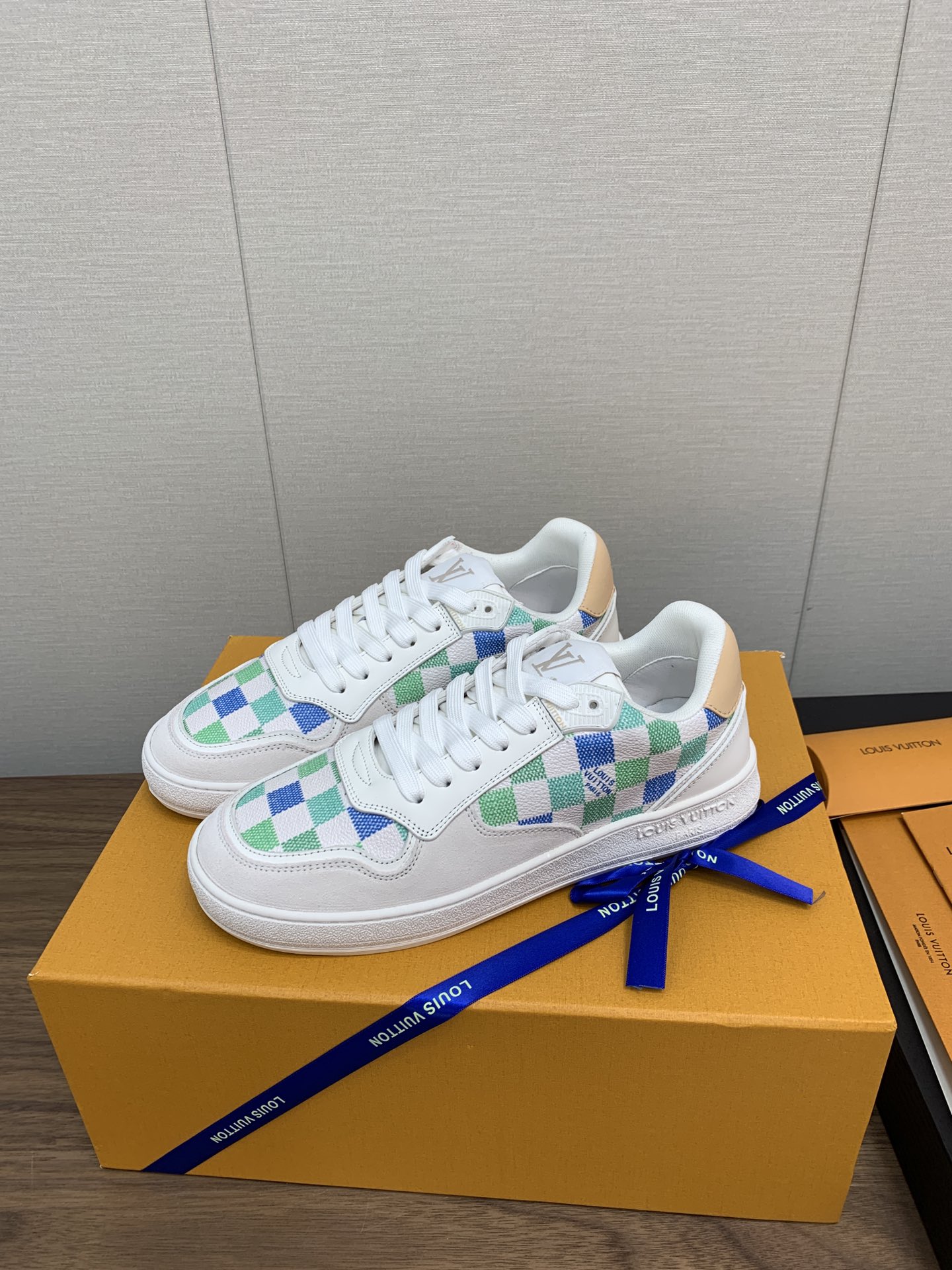 这款鞋子是AAAAA 1:1 质量 (非常棒). 使用了和原版一模一样的材料. 商标部分也保持了和路易威登/Louis Vuitton一样. 图片拍摄是实物鞋子拍摄, 您所收到的实物保证和我们图片一模一样.