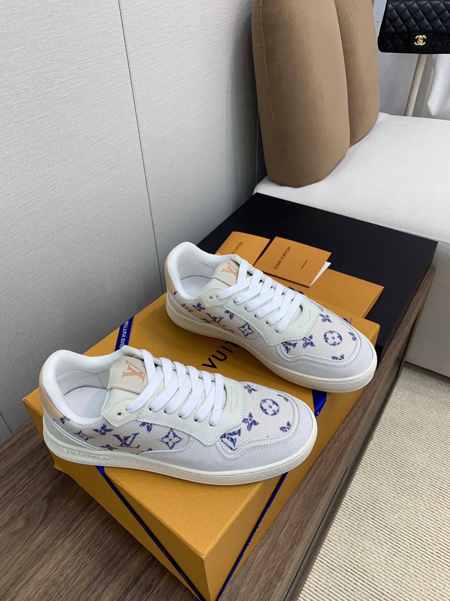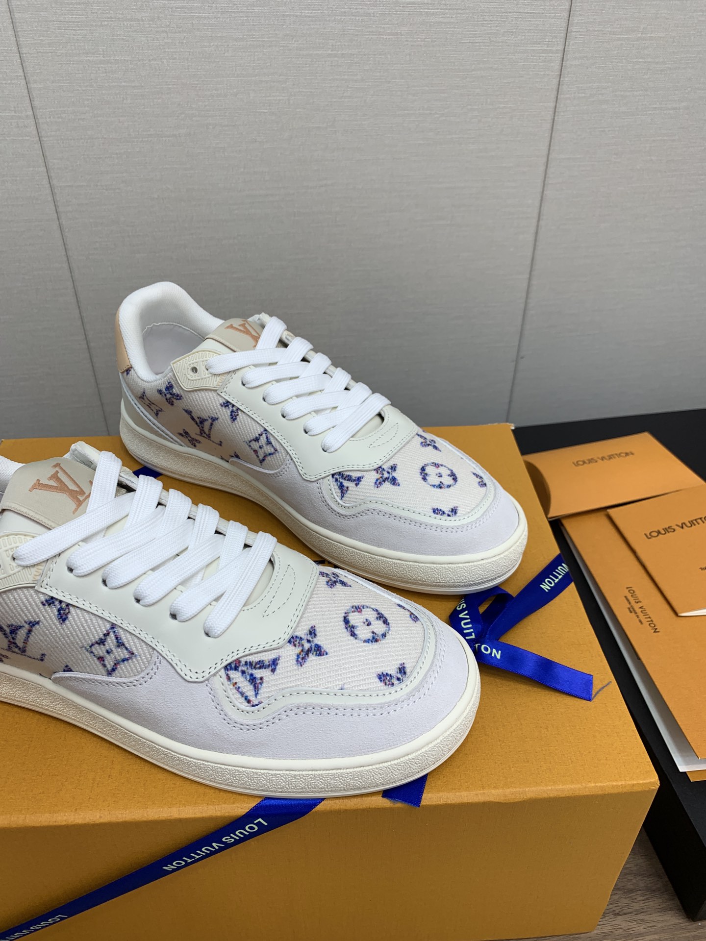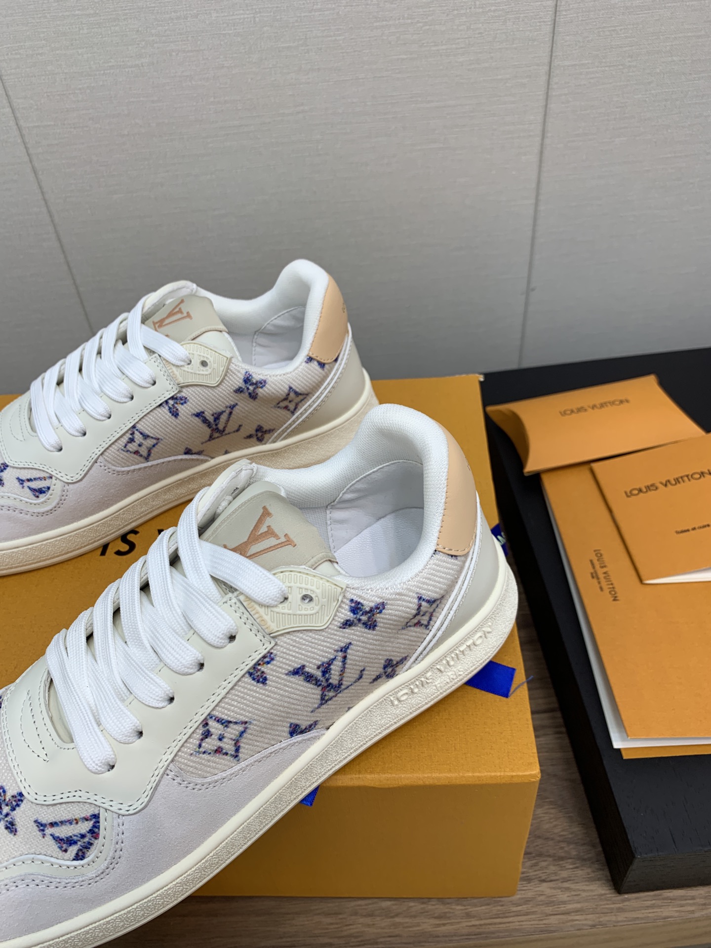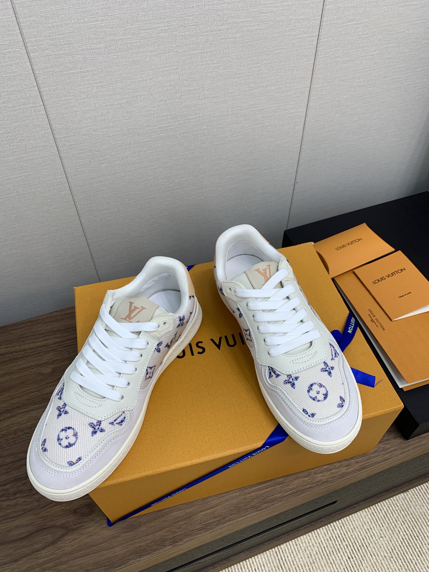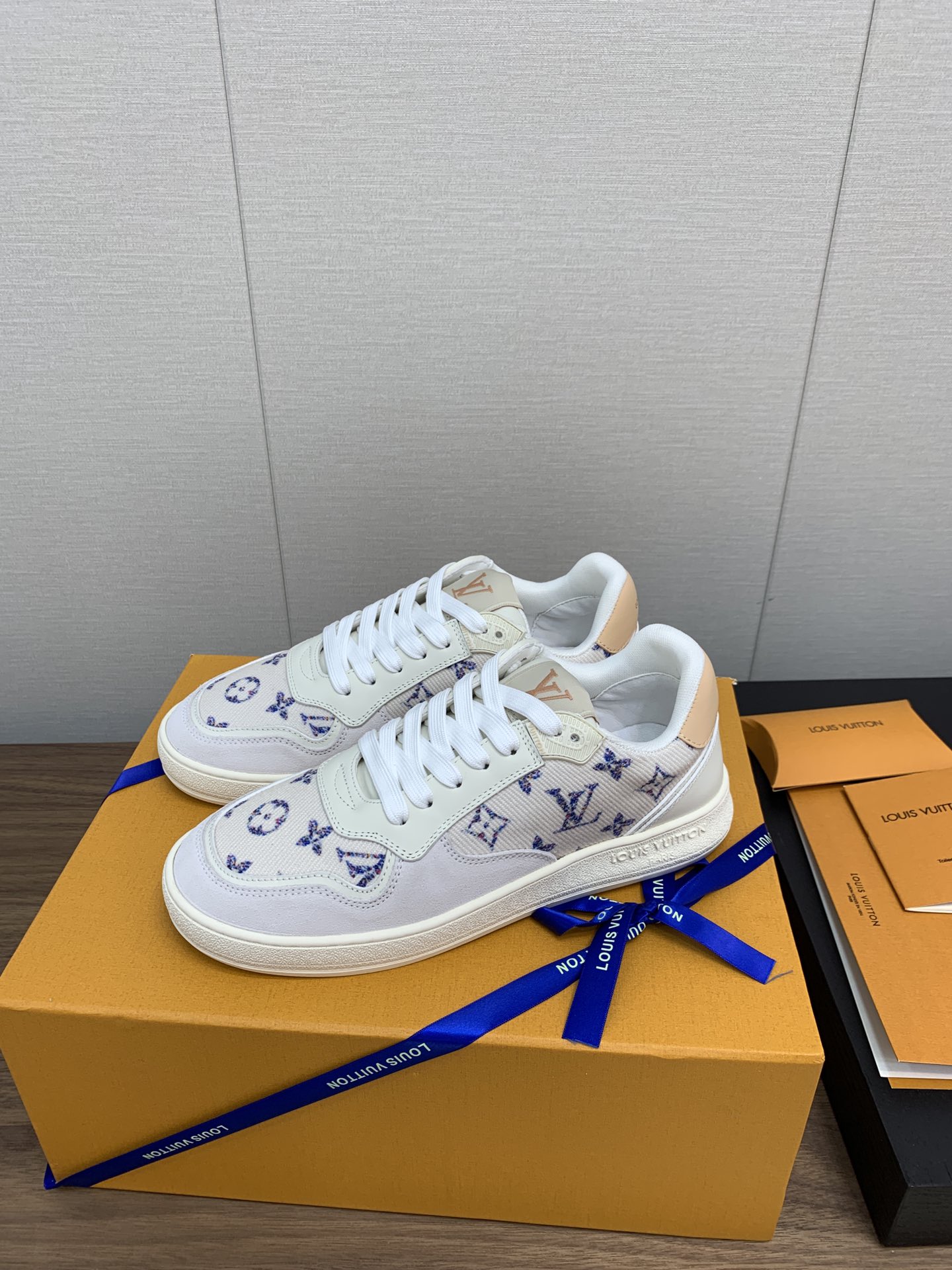 这款鞋子是AAAAA 1:1 质量 (非常棒). 使用了和原版一模一样的材料. 商标部分也保持了和路易威登/Louis Vuitton一样. 图片拍摄是实物鞋子拍摄, 您所收到的实物保证和我们图片一模一样.