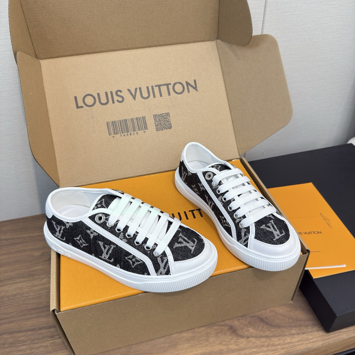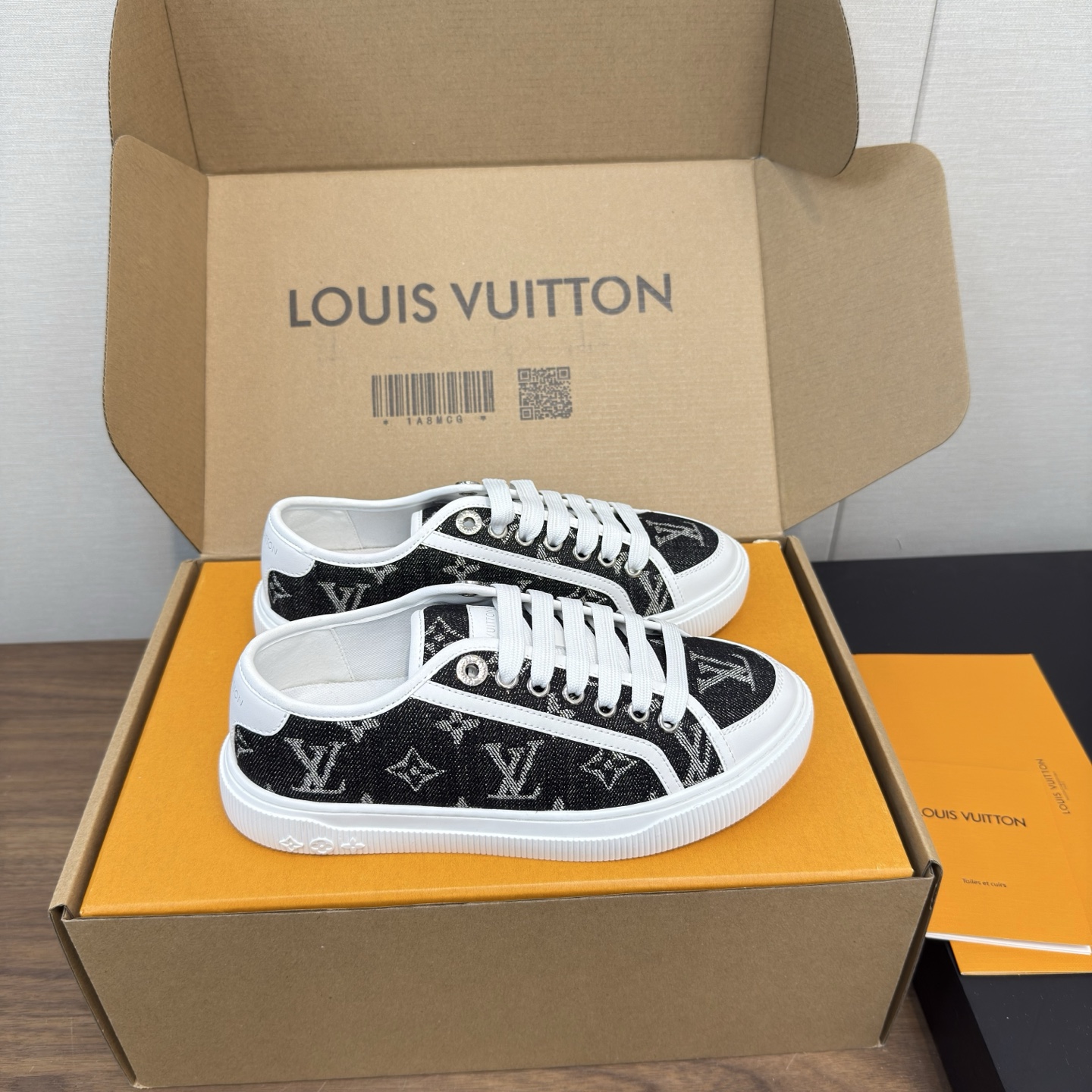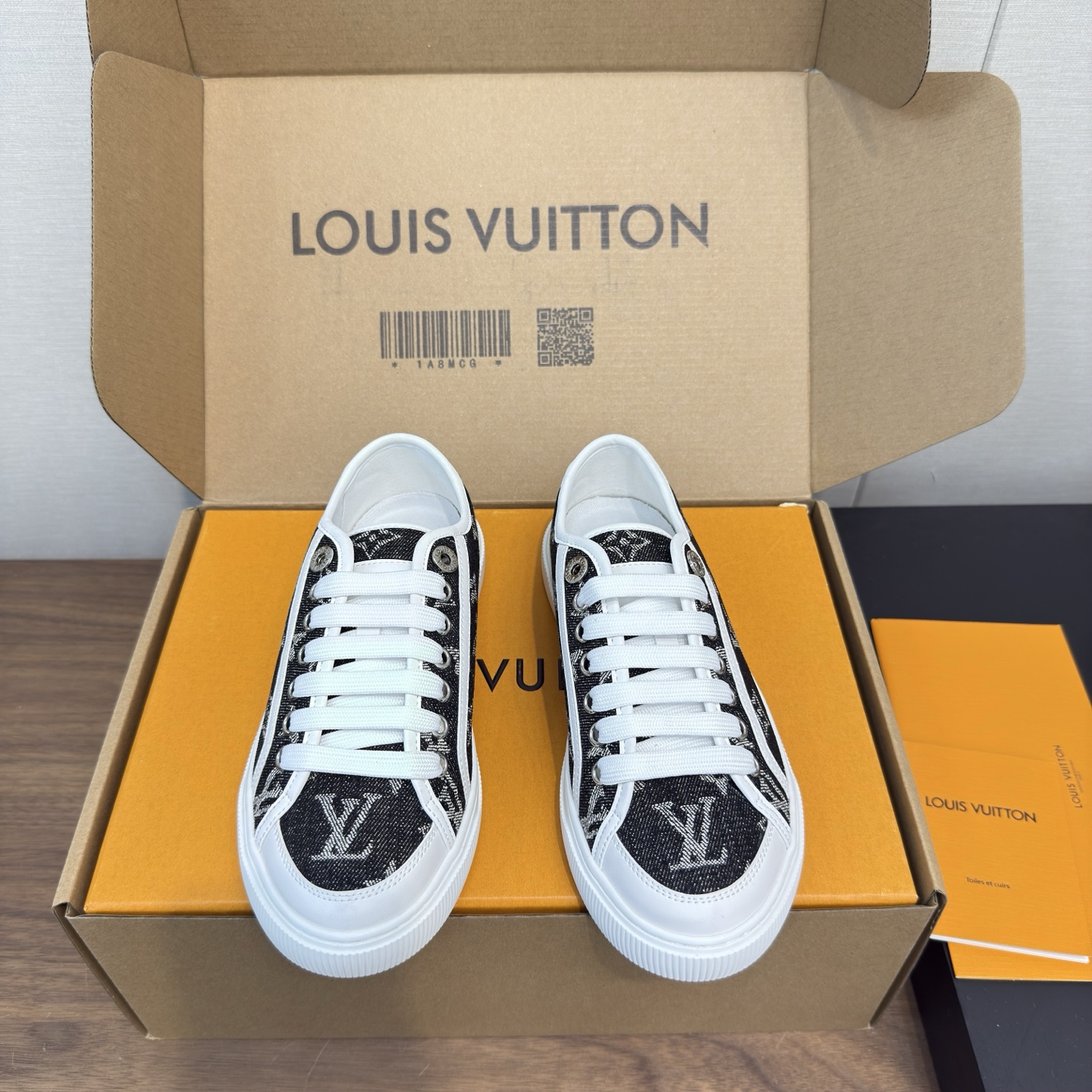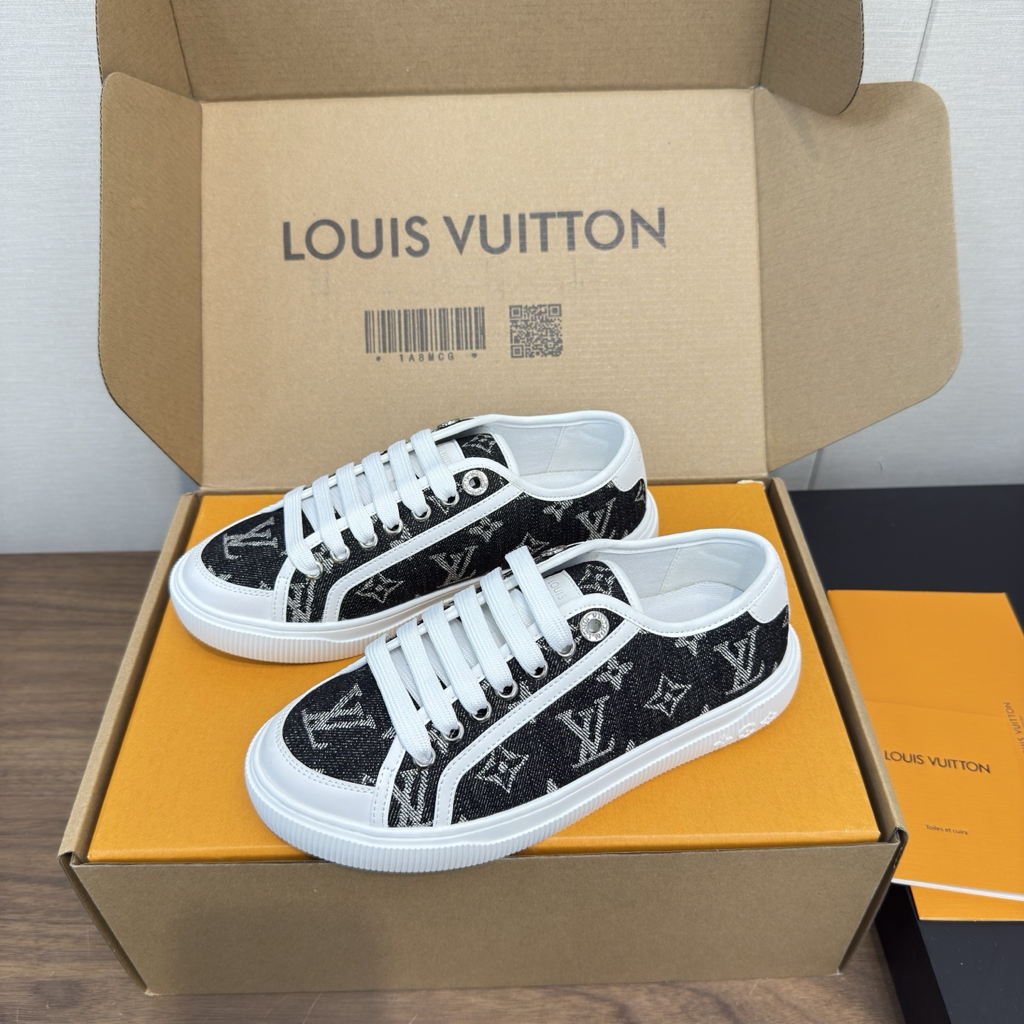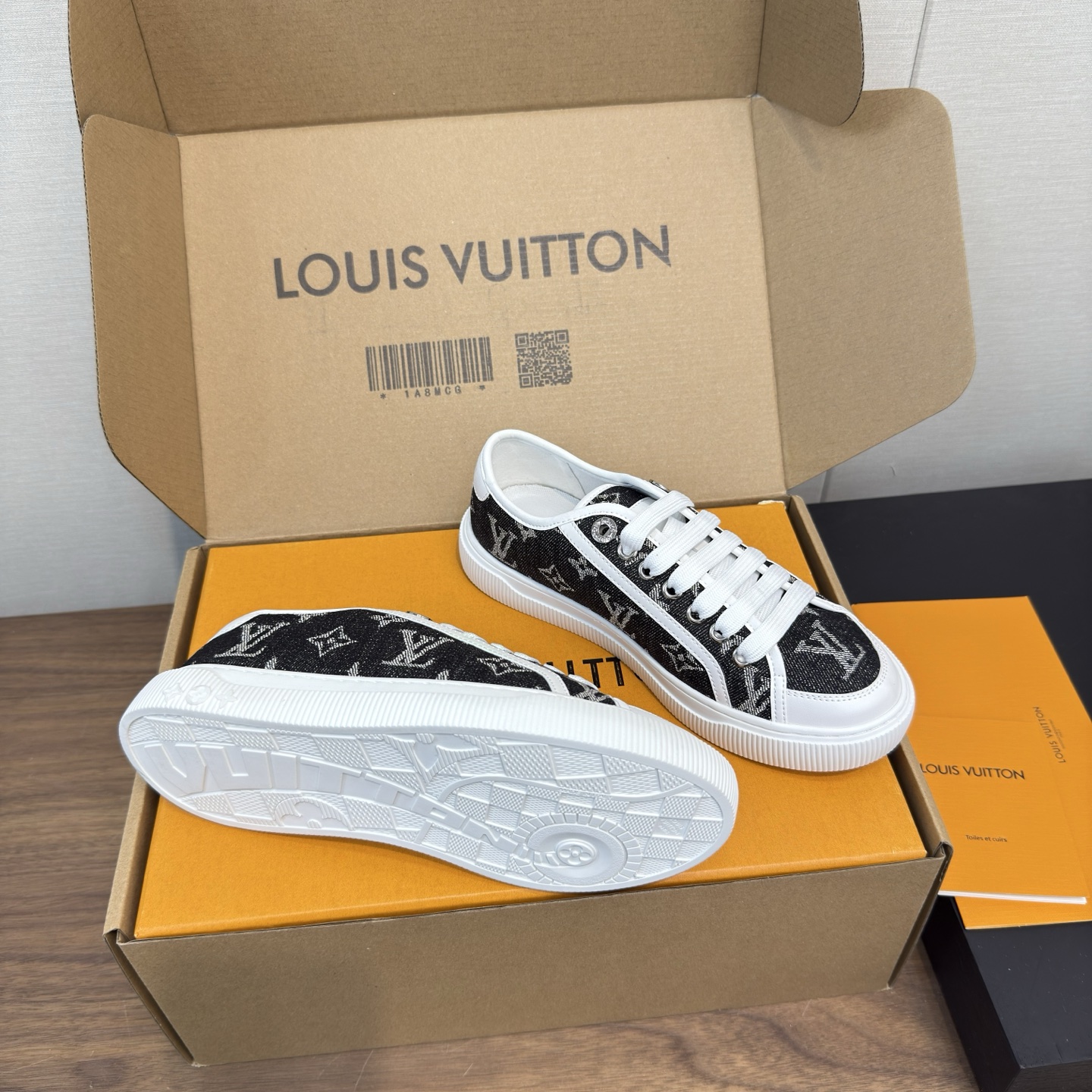 这款鞋子是AAAAA 1:1 质量 (非常棒). 使用了和原版一模一样的材料. 商标部分也保持了和路易威登/Louis Vuitton一样. 图片拍摄是实物鞋子拍摄, 您所收到的实物保证和我们图片一模一样.