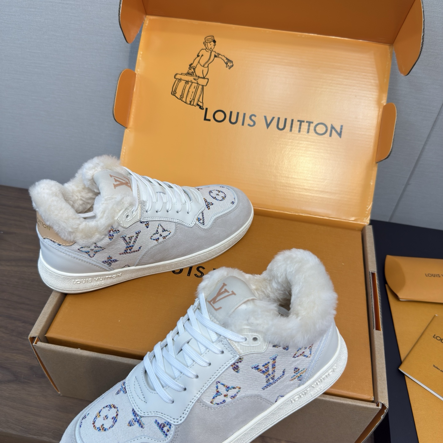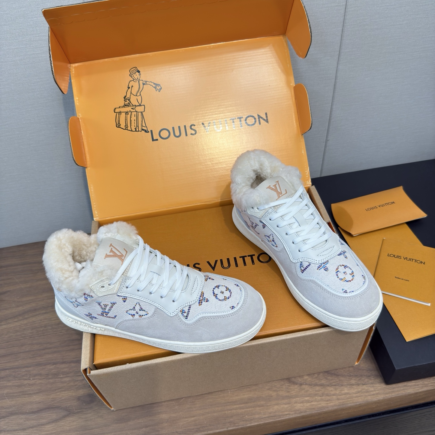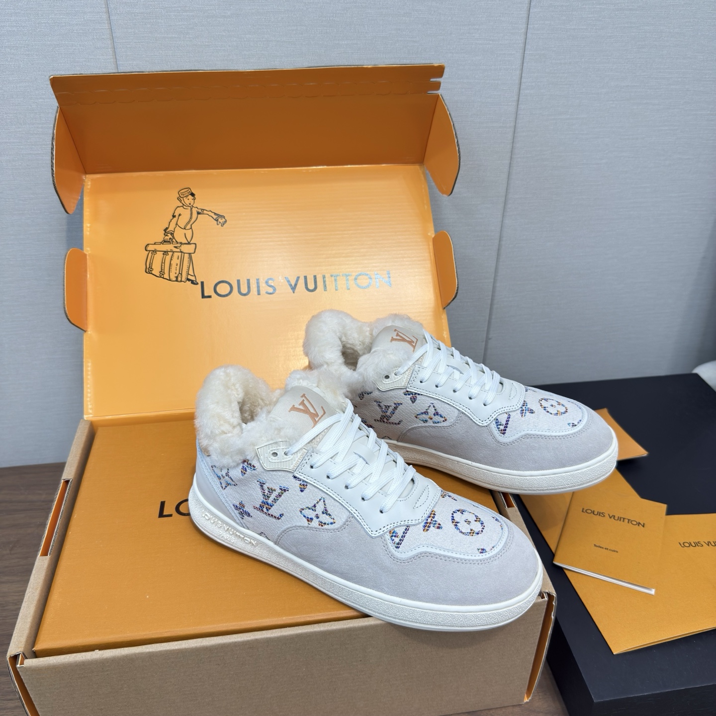 这款鞋子是AAAAA 1:1 质量 (非常棒). 使用了和原版一模一样的材料. 商标部分也保持了和路易威登/Louis Vuitton一样. 图片拍摄是实物鞋子拍摄, 您所收到的实物保证和我们图片一模一样.