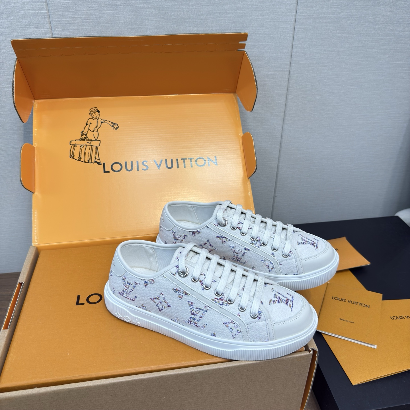 这款鞋子是AAAAA 1:1 质量 (非常棒). 使用了和原版一模一样的材料. 商标部分也保持了和路易威登/Louis Vuitton一样. 图片拍摄是实物鞋子拍摄, 您所收到的实物保证和我们图片一模一样.