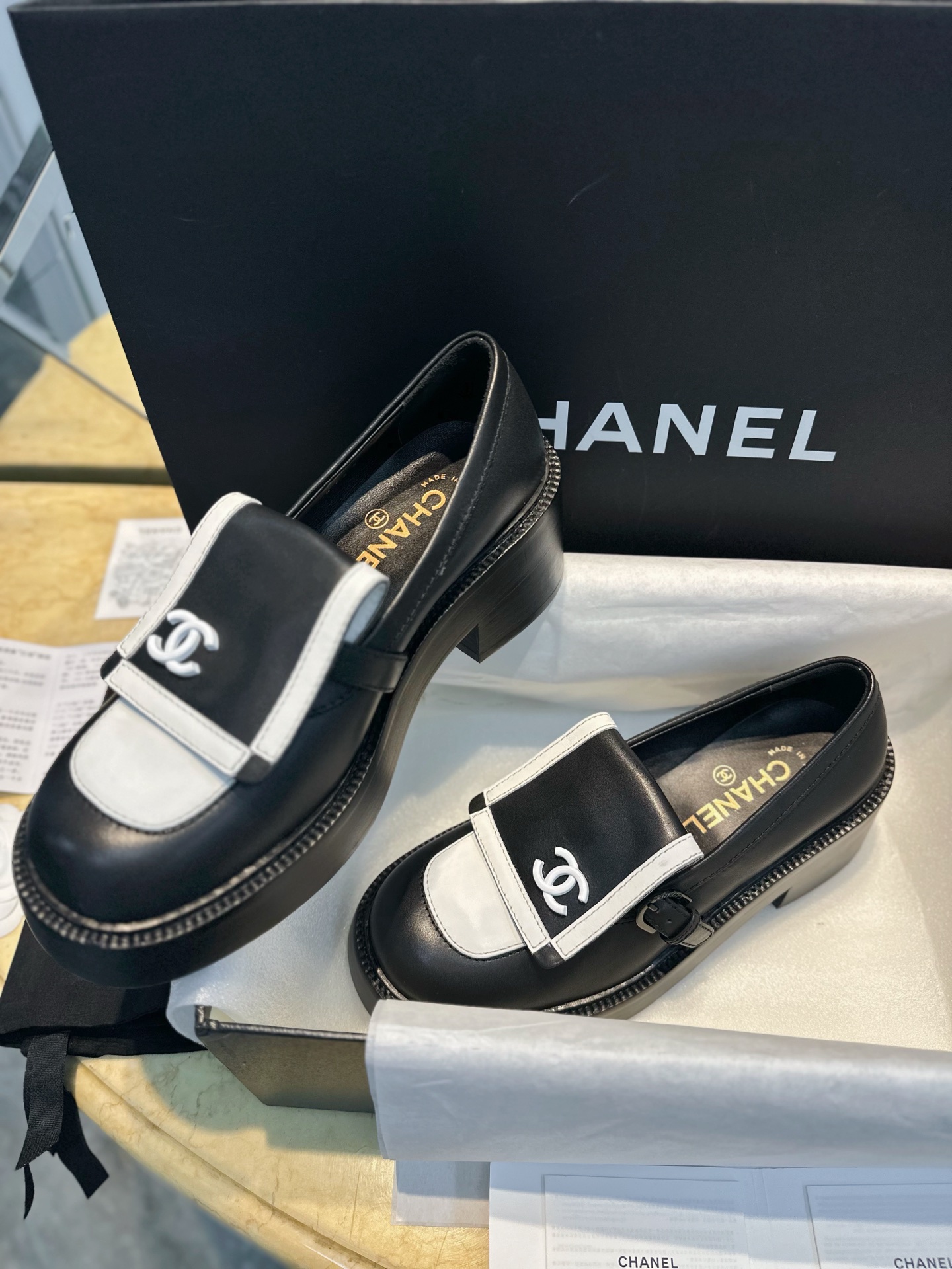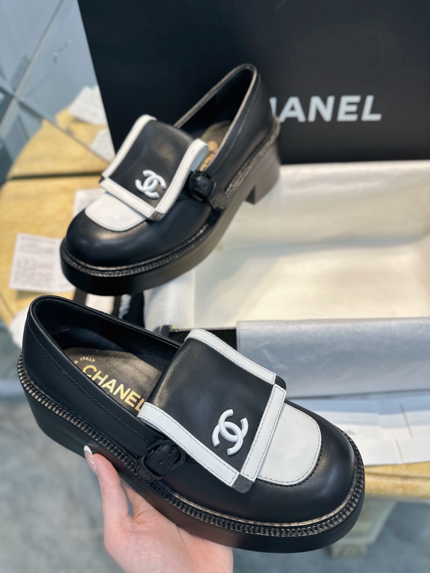 这款鞋子是AAAAA 1:1 质量 (非常棒). 使用了和原版一模一样的材料. 商标部分也保持了和香奈儿/Chanel一样. 图片拍摄是实物鞋子拍摄, 您所收到的实物保证和我们图片一模一样.