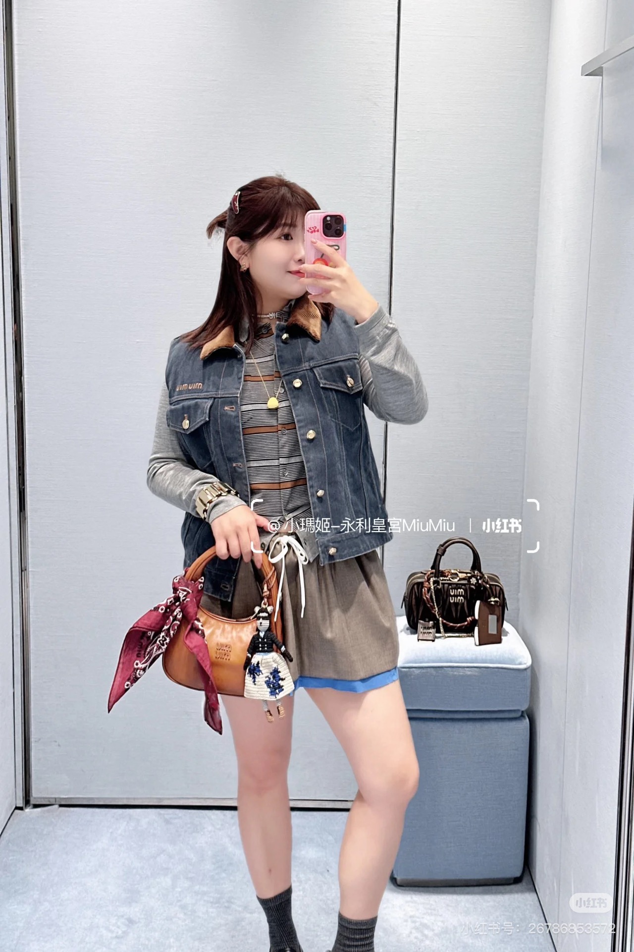 这款衣服是AAAAA 1:1 质量 (非常棒). 使用了和原版一模一样的材料. 商标部分也保持了和缪缪/Miu Miu一样. 图片拍摄是实物衣服拍摄, 您所收到的实物保证和我们图片一模一样.