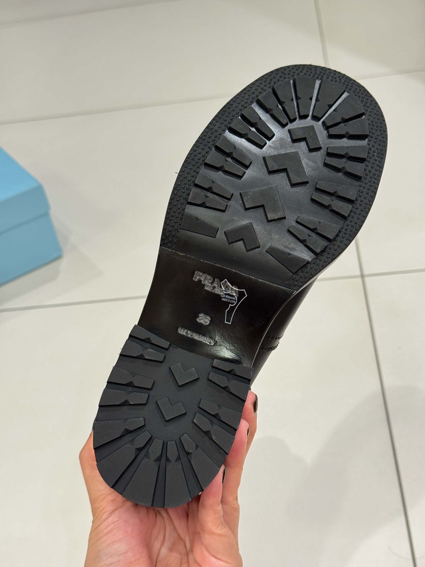 这款鞋子是AAAAA 1:1 质量 (非常棒). 使用了和原版一模一样的材料. 商标部分也保持了和普拉达/Prada一样. 图片拍摄是实物鞋子拍摄, 您所收到的实物保证和我们图片一模一样.