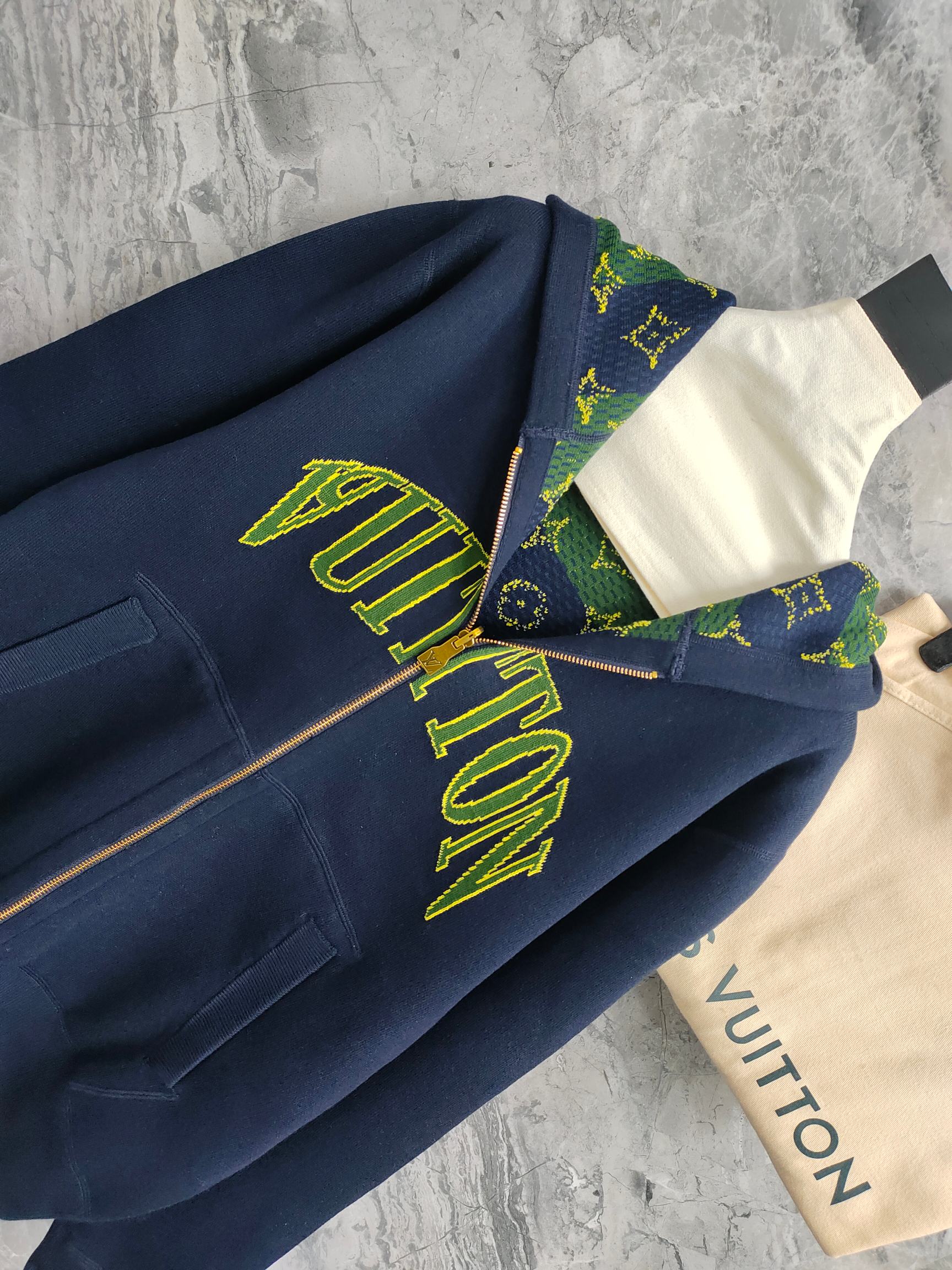 这款衣服是AAAAA 1:1 质量 (非常棒). 使用了和原版一模一样的材料. 商标部分也保持了和路易威登/Louis Vuitton一样. 图片拍摄是实物衣服拍摄, 您所收到的实物保证和我们图片一模一样.