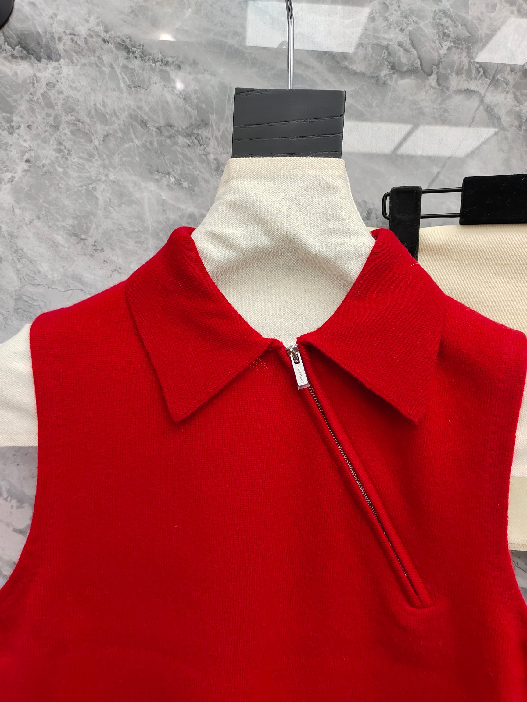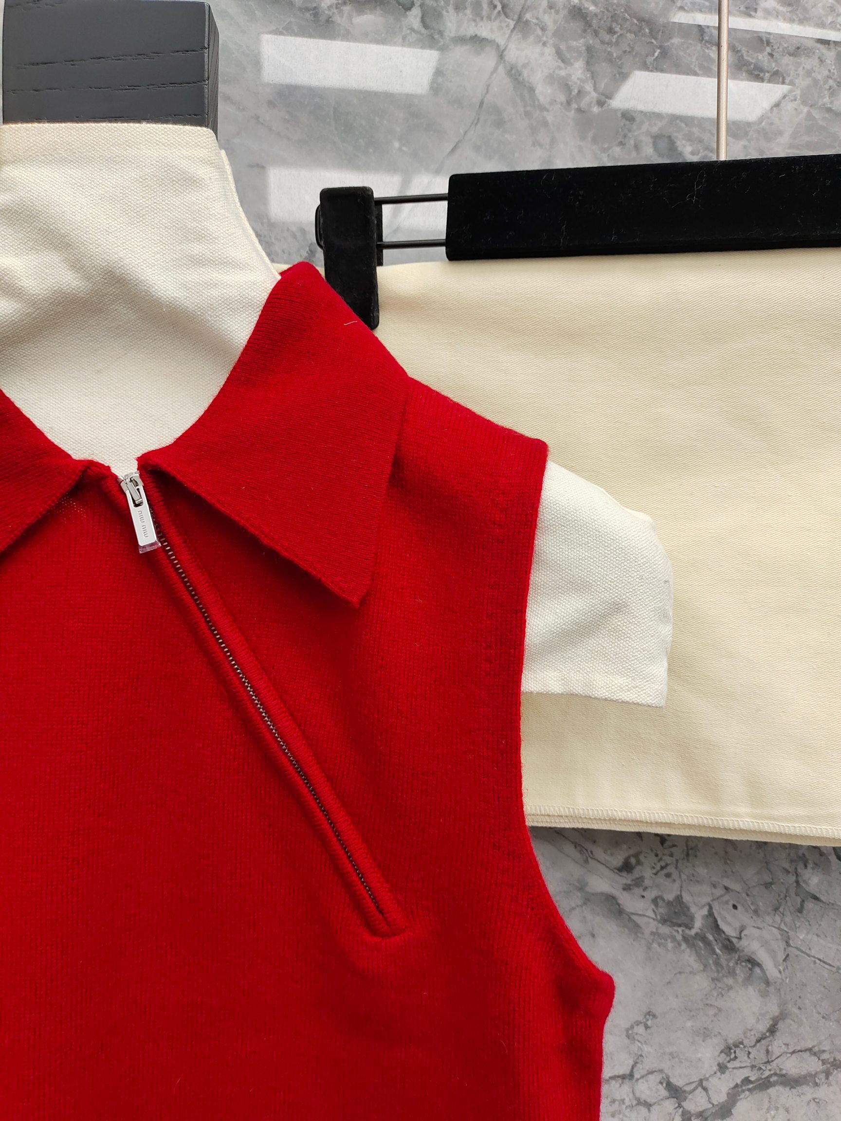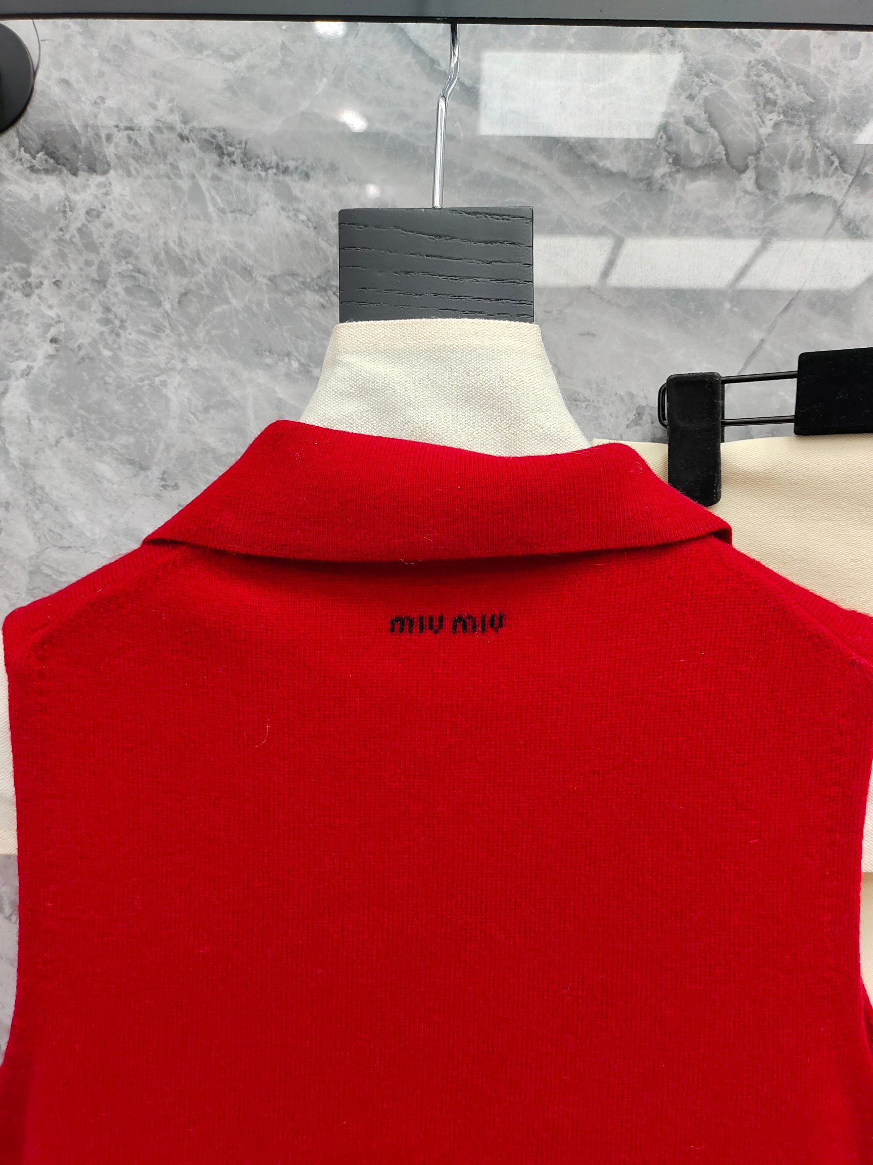 这款衣服是AAAAA 1:1 质量 (非常棒). 使用了和原版一模一样的材料. 商标部分也保持了和缪缪/Miu Miu一样. 图片拍摄是实物衣服拍摄, 您所收到的实物保证和我们图片一模一样.