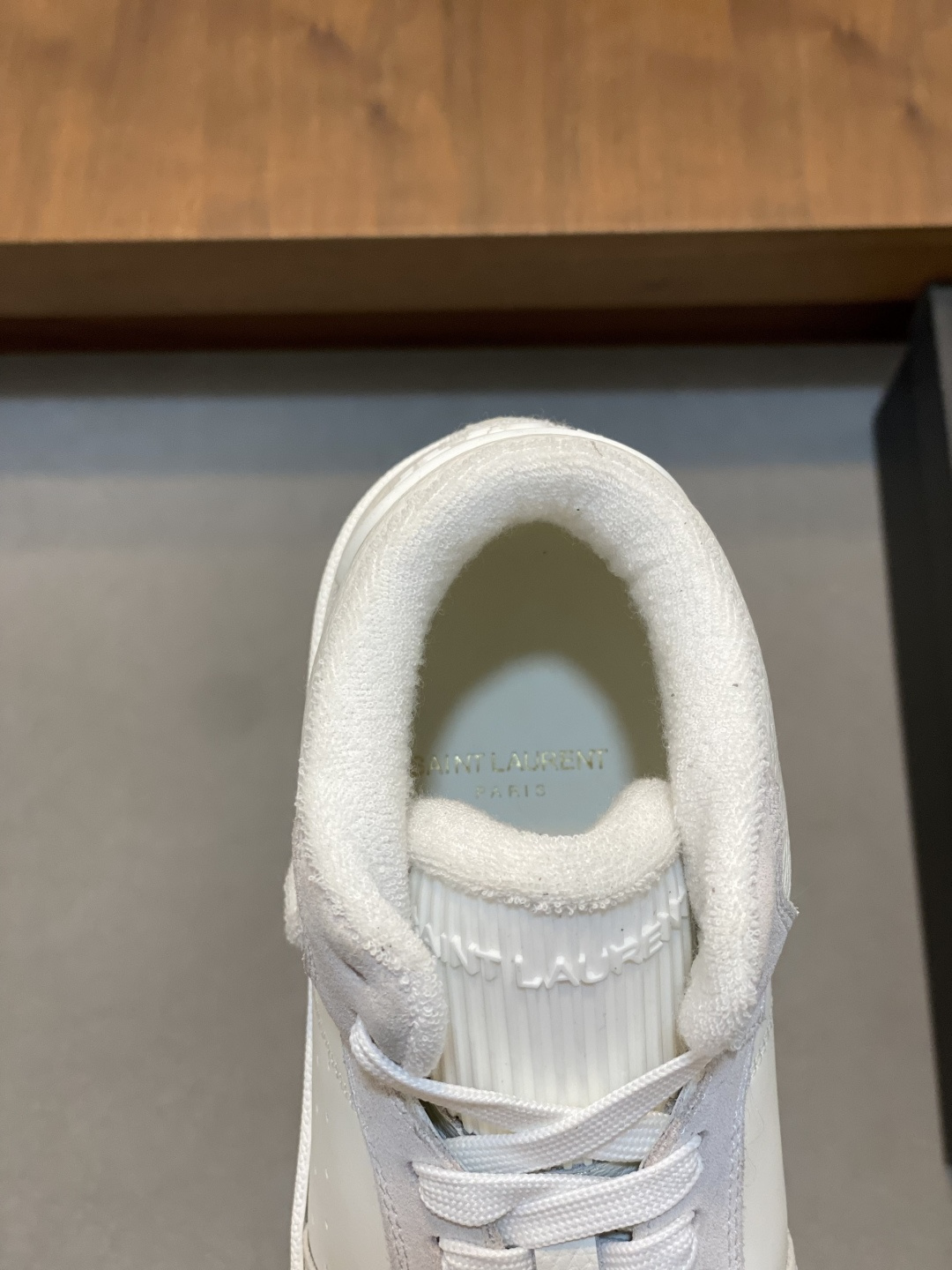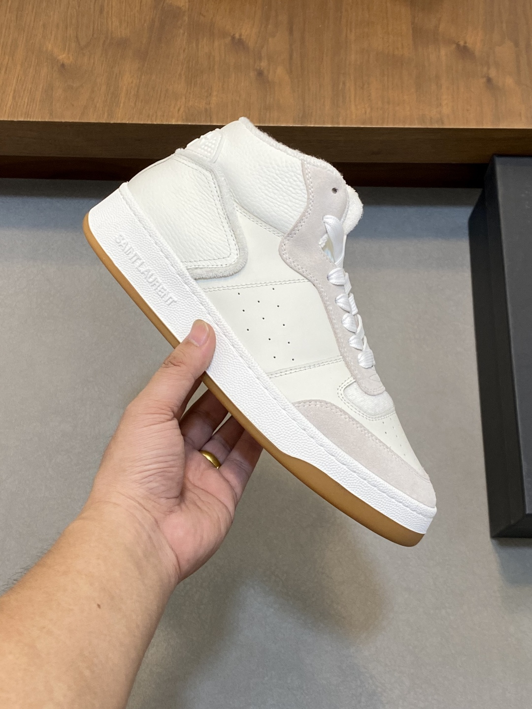 这款鞋子是AAAAA 1:1 质量 (非常棒). 使用了和原版一模一样的材料. 商标部分也保持了和圣罗兰/Saint Laurent一样. 图片拍摄是实物鞋子拍摄, 您所收到的实物保证和我们图片一模一样.