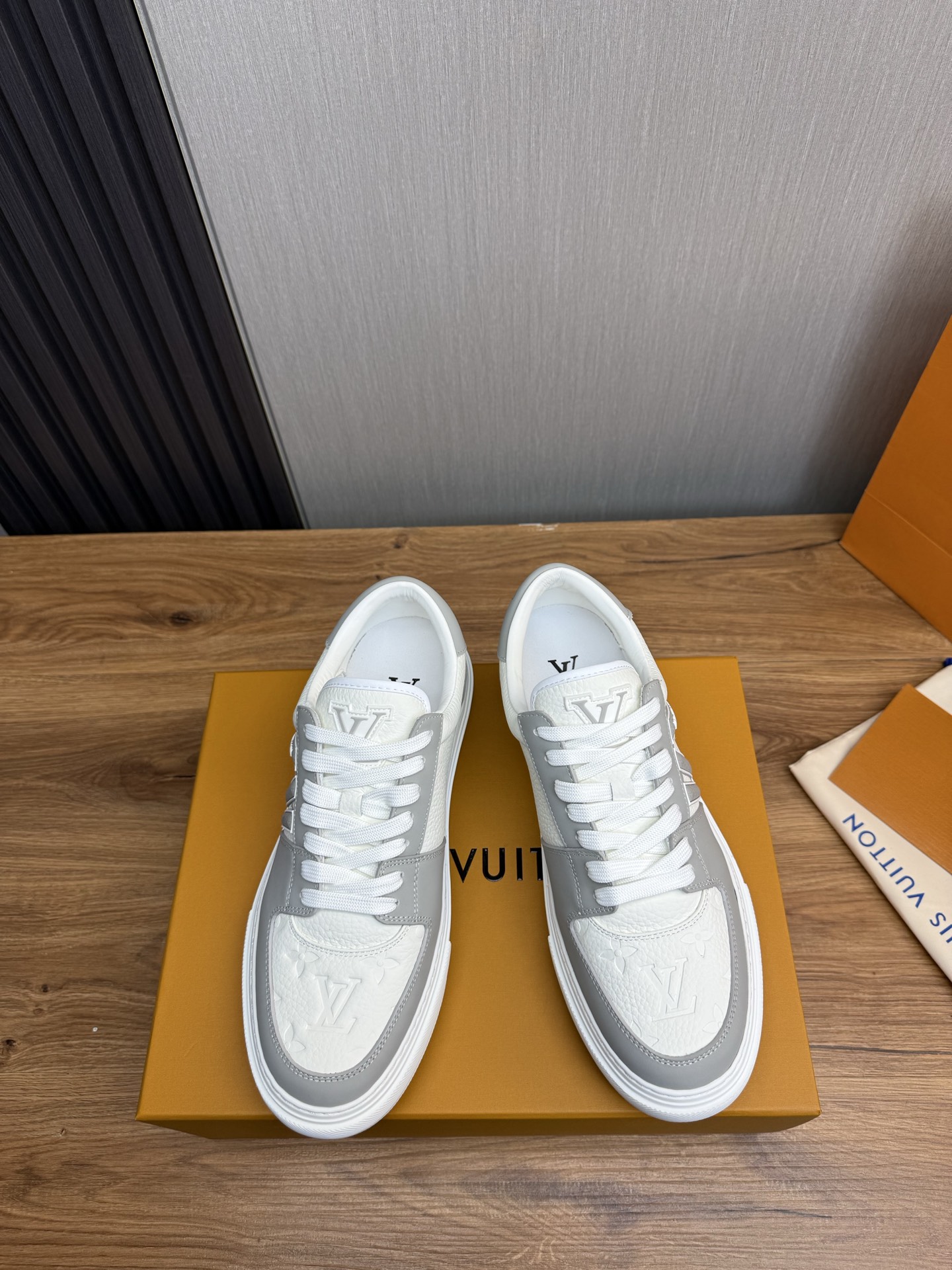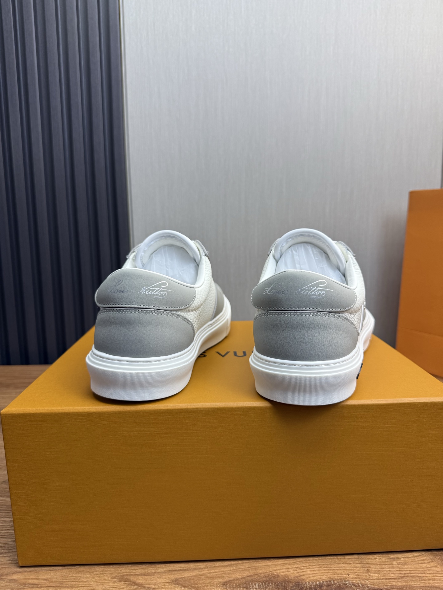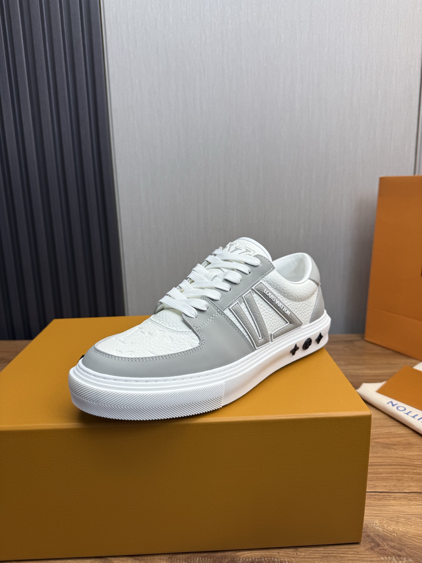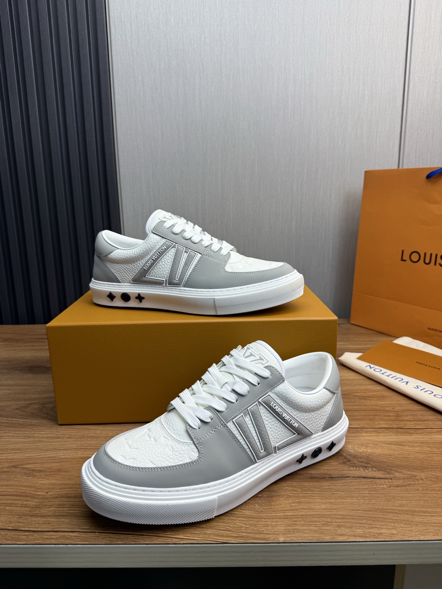 这款鞋子是AAAAA 1:1 质量 (非常棒). 使用了和原版一模一样的材料. 商标部分也保持了和路易威登/Louis Vuitton一样. 图片拍摄是实物鞋子拍摄, 您所收到的实物保证和我们图片一模一样.