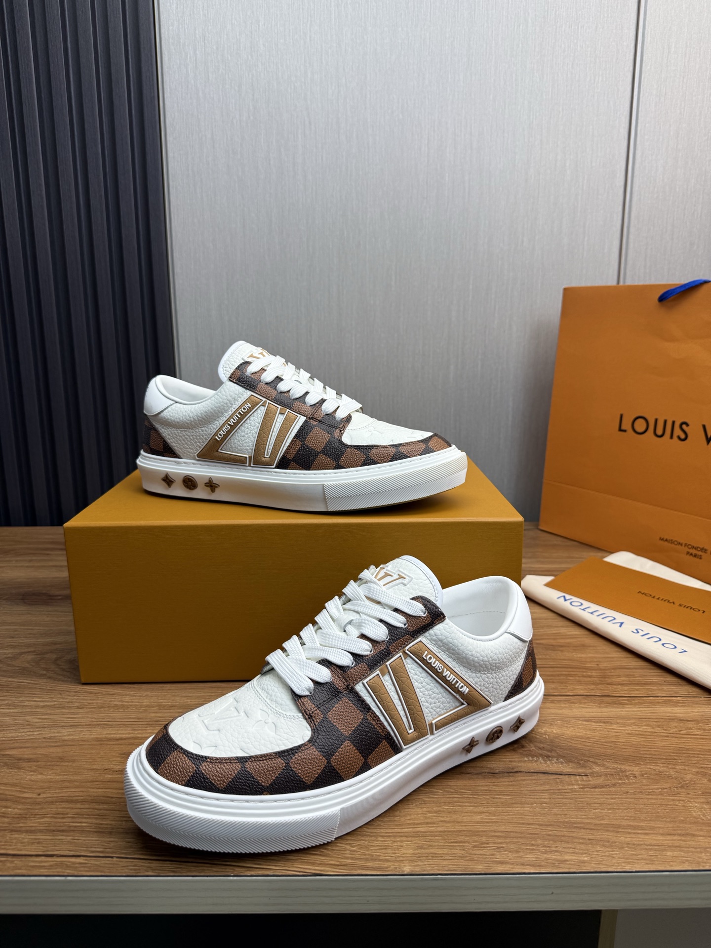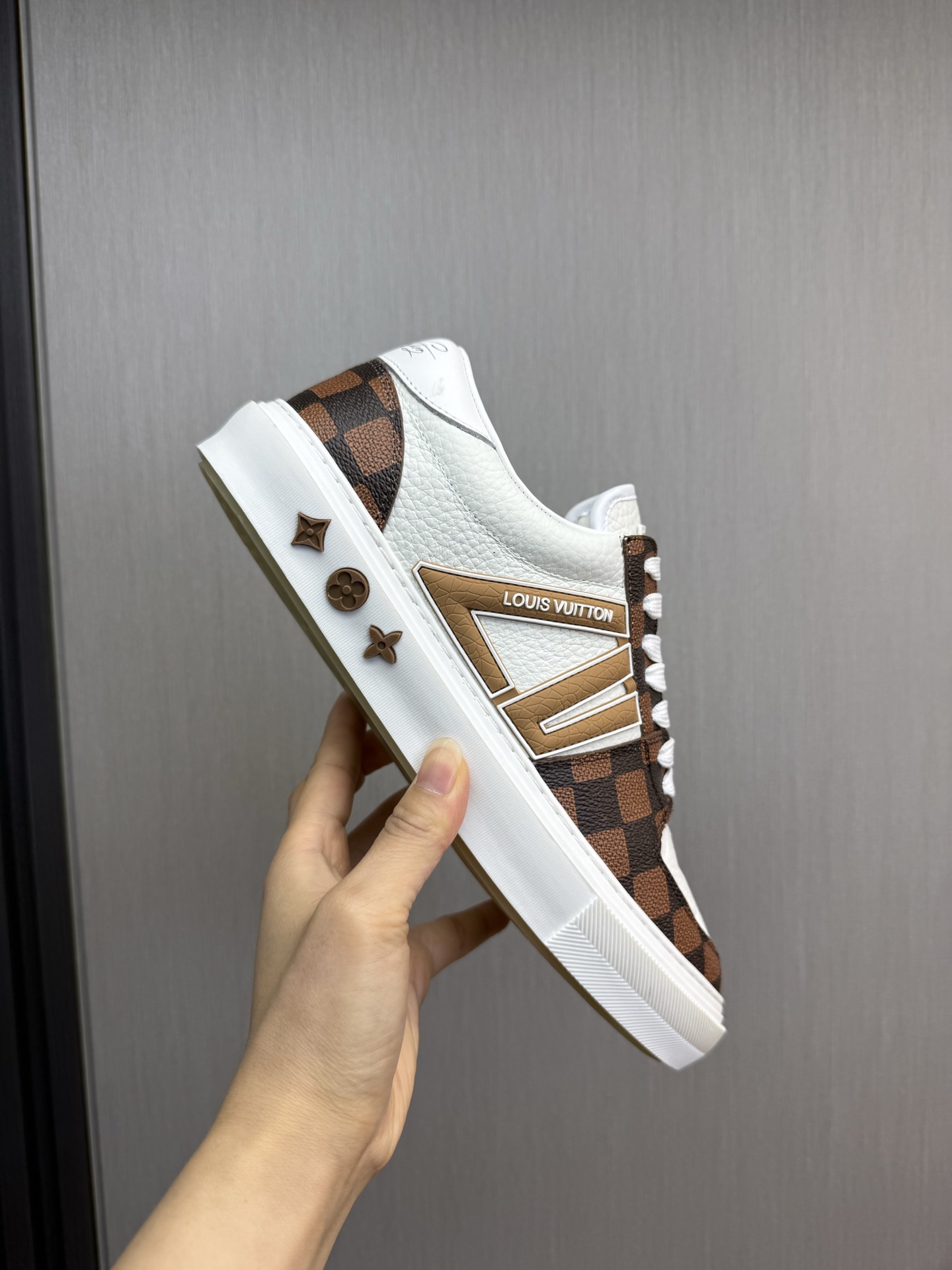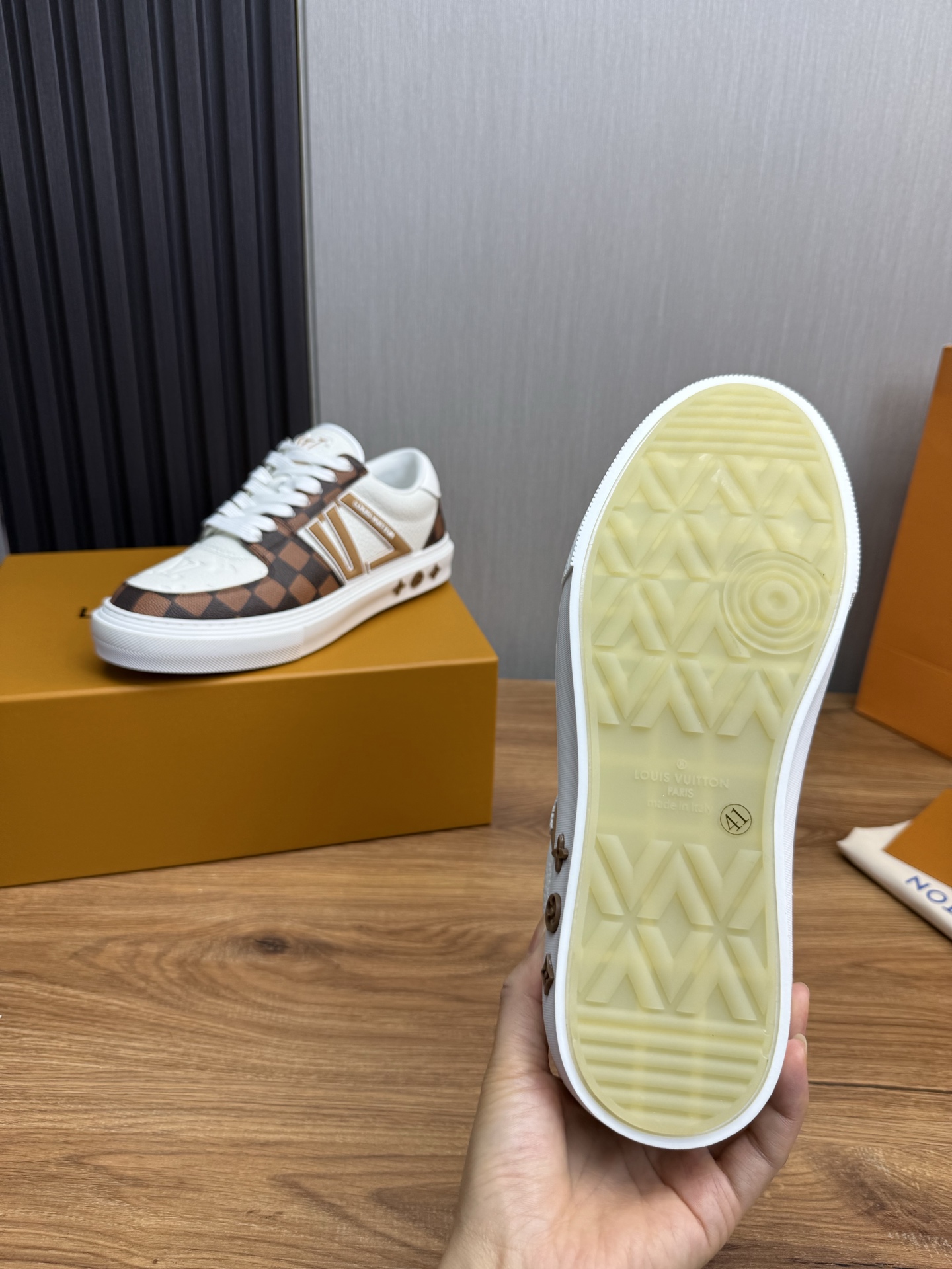 这款鞋子是AAAAA 1:1 质量 (非常棒). 使用了和原版一模一样的材料. 商标部分也保持了和路易威登/Louis Vuitton一样. 图片拍摄是实物鞋子拍摄, 您所收到的实物保证和我们图片一模一样.