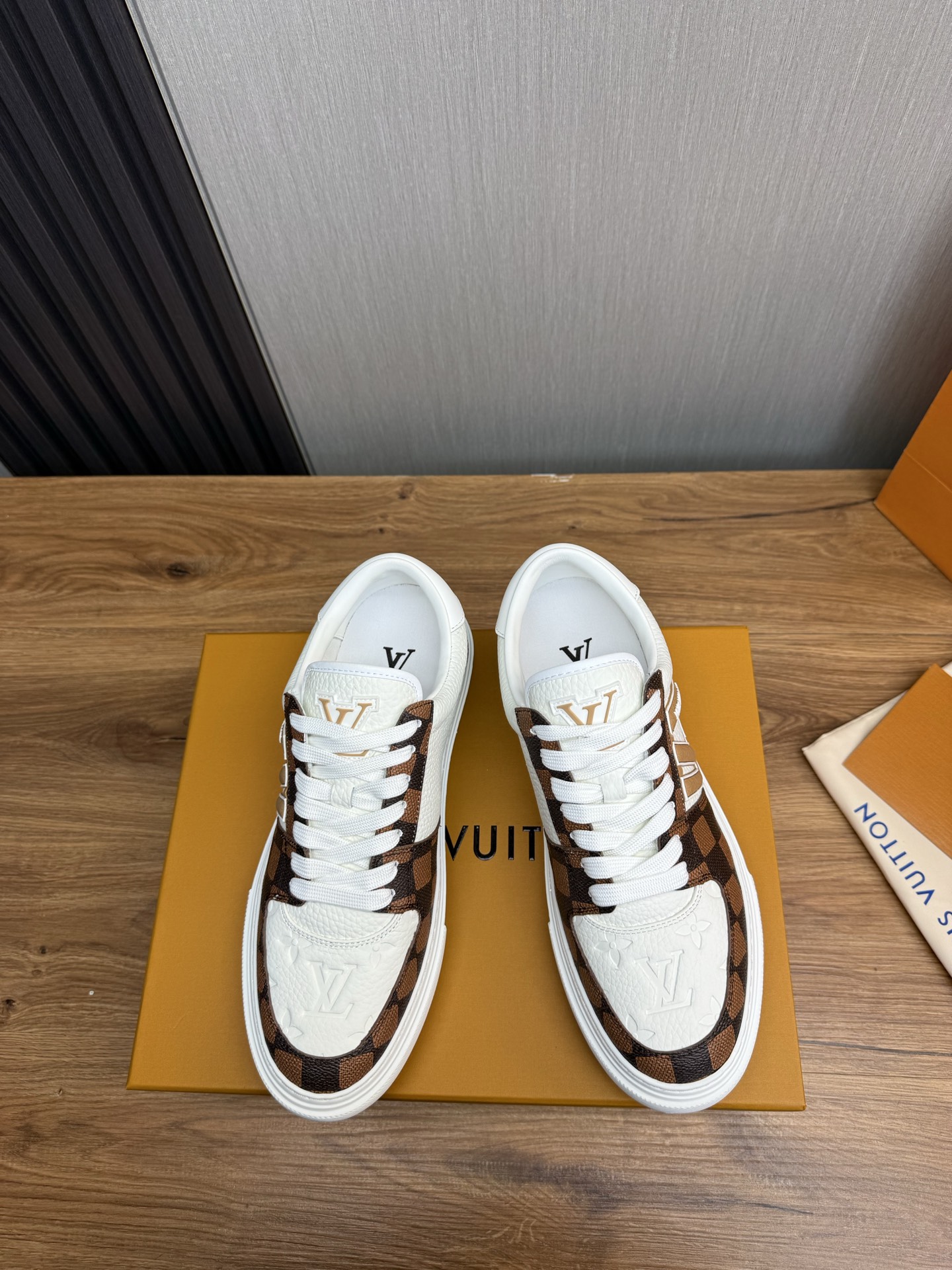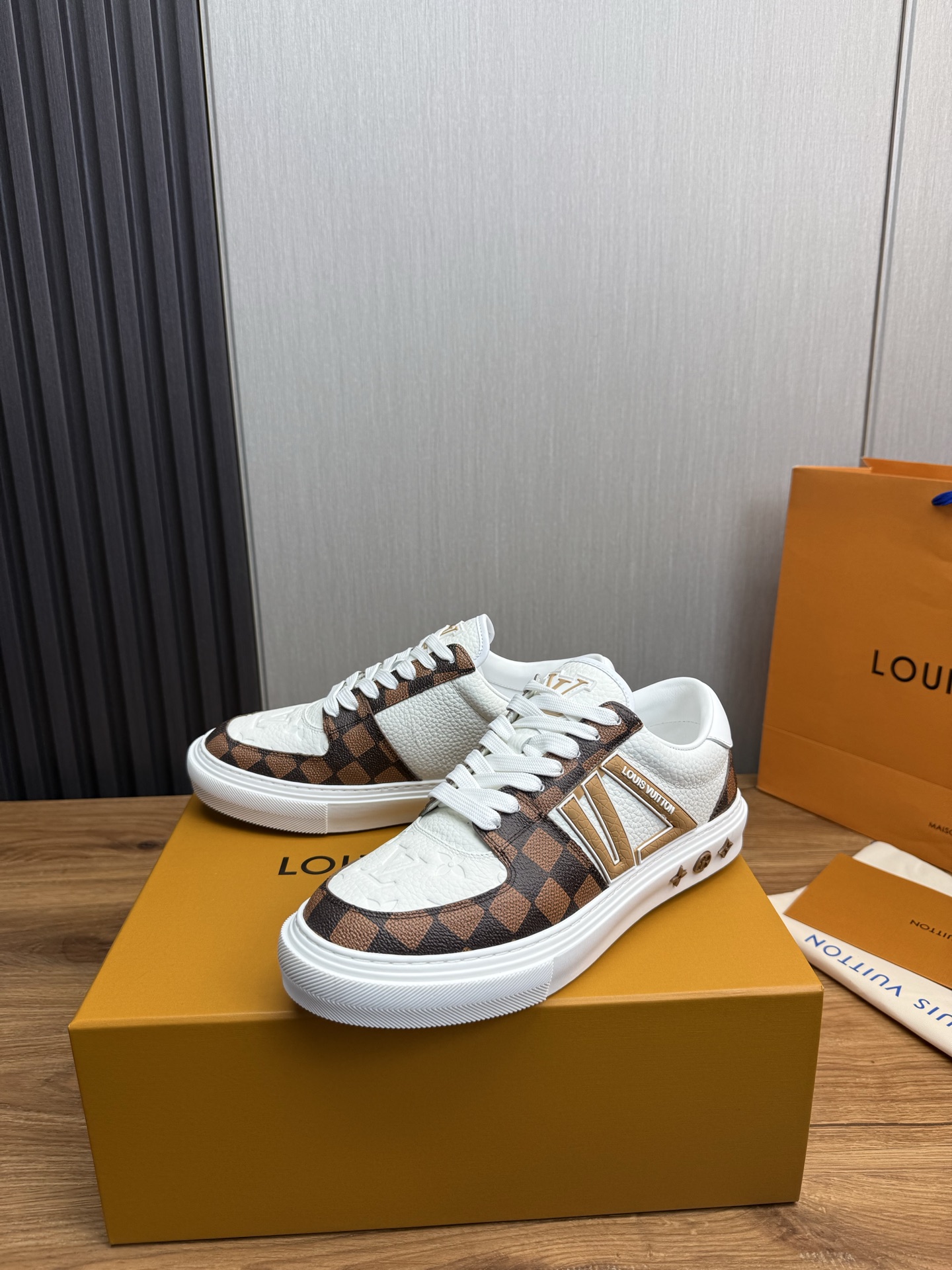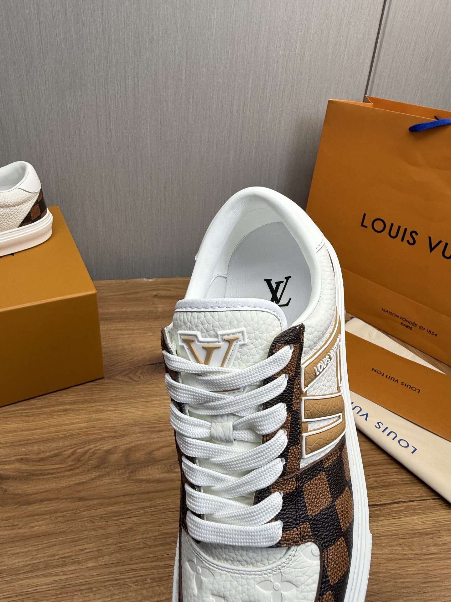 这款鞋子是AAAAA 1:1 质量 (非常棒). 使用了和原版一模一样的材料. 商标部分也保持了和路易威登/Louis Vuitton一样. 图片拍摄是实物鞋子拍摄, 您所收到的实物保证和我们图片一模一样.